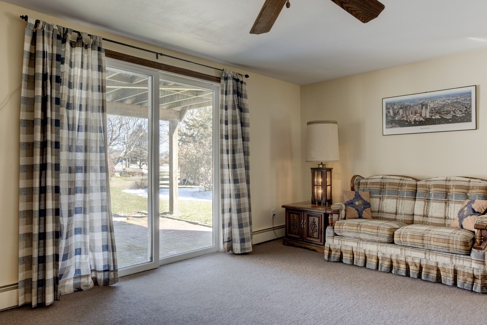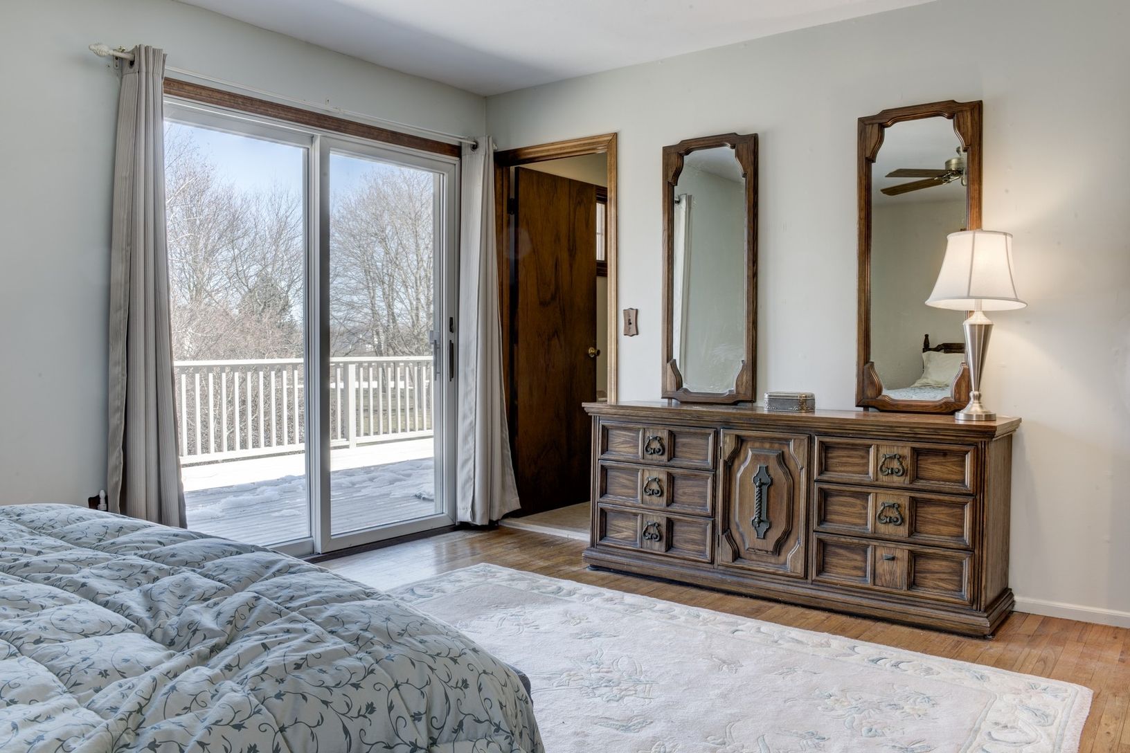Classic Mid-Century raised Ranch on ½ acre corner lot in Pebble Beach Estates. Beautiful deep lot that backs onto 22 acres of preserved, undeveloped farm land. Front facing community open space. Large, comfortable house with 5 bedrooms, 3 full baths, office, family room, wood floors throughout 2nd level. Lower level has walk-out separate exterior entrance to living quarters. Deeded community sound beach & tennis courts.