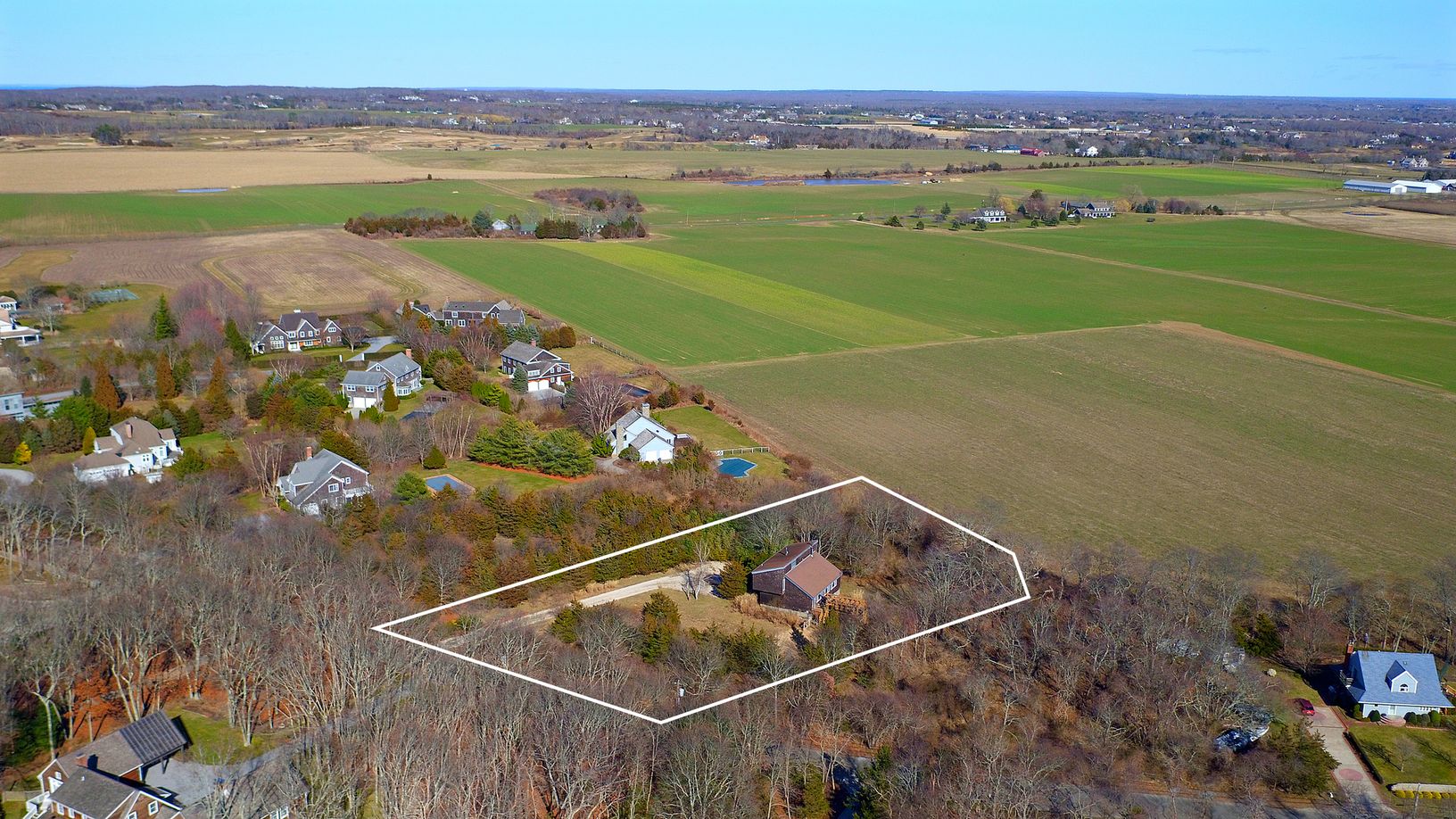 Noyac Path - abutting a 70 acre agricultural reserve with farms all around. Close to Bridgehampton and Watermill. Renovate this home or build new