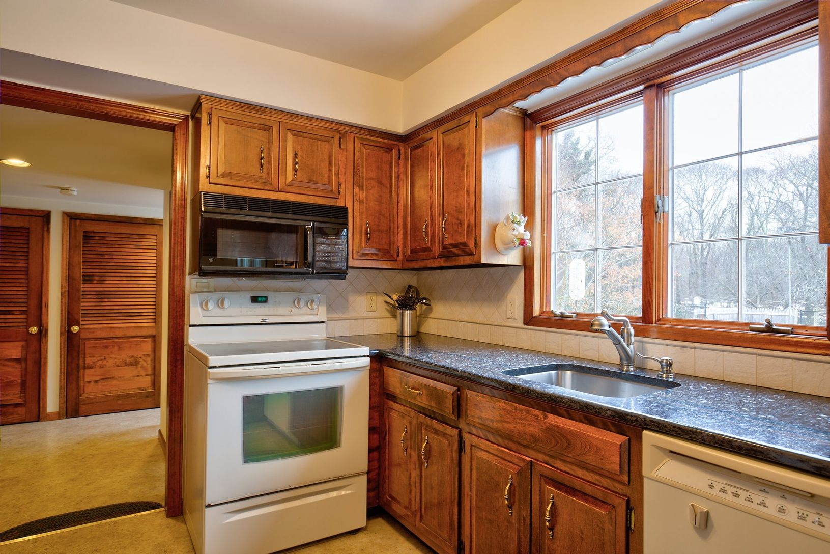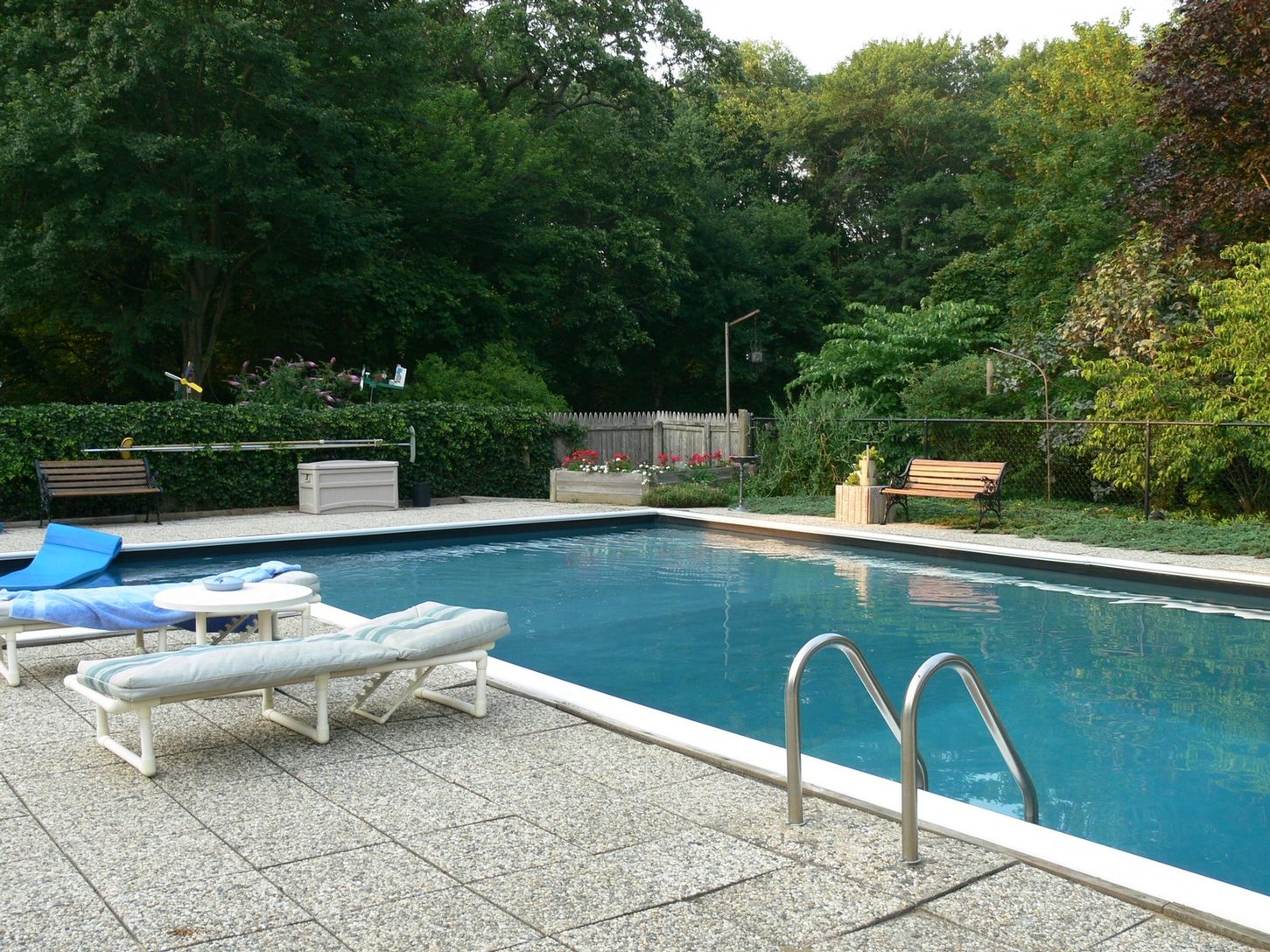 Large cape with in-ground pool situated on over 1.25 acres surrounded by mature privacy plantings and perennial gardens. Cozy living room includes a wood burning stove and connects to the dining room w/ sliding glass doors that open on to the large deck and pool area.