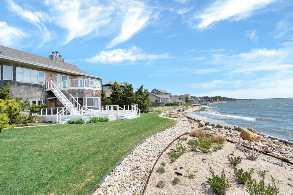 This elegant open-water, bay-front home will appeal to those with an appreciation of fine design. This is the place to kayak, paddle board, moor your boat and afford your self easily of all the water sports so vastly enjoyed out in the Hamptons. The serene and spectacular views across the open Bay to the Ocean the are embraced by most every room. Edward F. Hudson, AIA, created a private setting with vaulted ceilings; dramatic entry, balcony