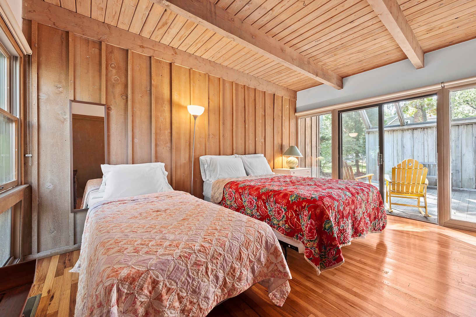 Alluring 3 bedroom 2 bathroom contemporary home located in the historic district of Springs. This is ideal for someone looking to make a house their home. With special adds on such as a fireplace and plenty of room for a pool with outdoor shower, the possibilities for this property are truly endless. Hardwood Floors and tall windows allow for ample light to penetrate through the trees in this wonderful neighborhood. Main Bedroom and Bathroom l