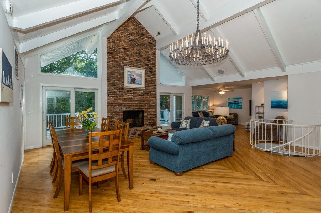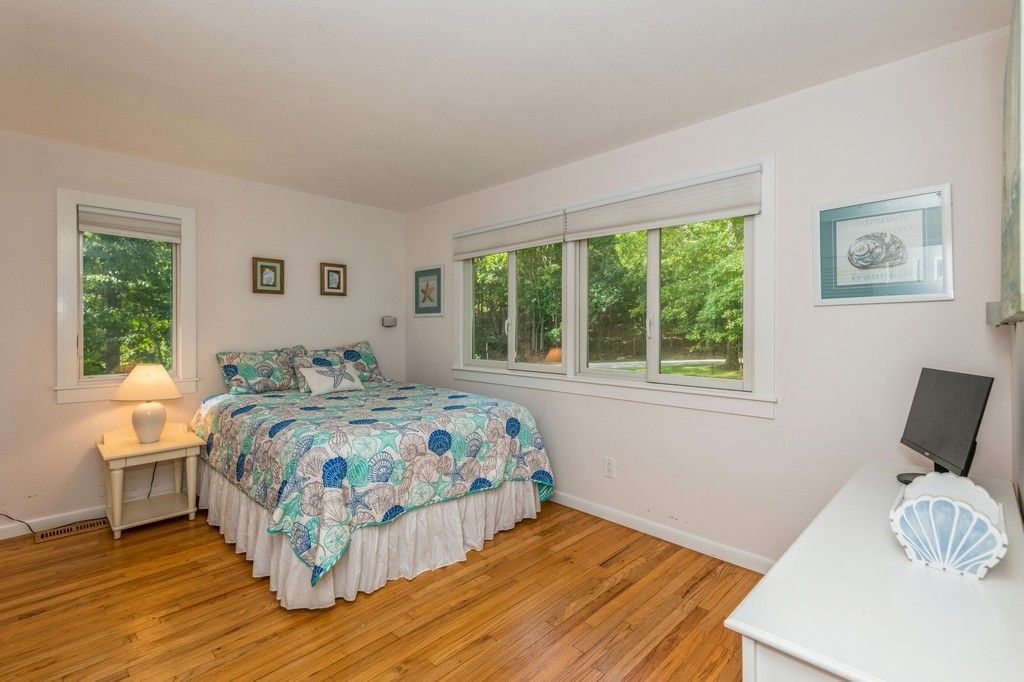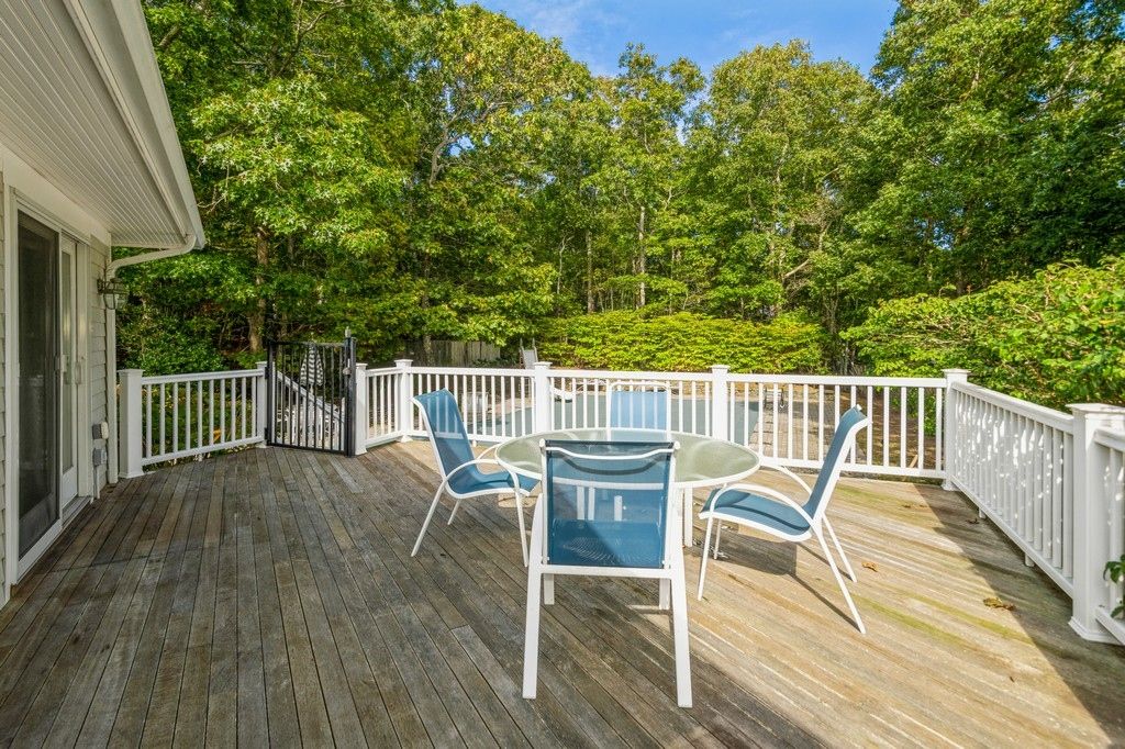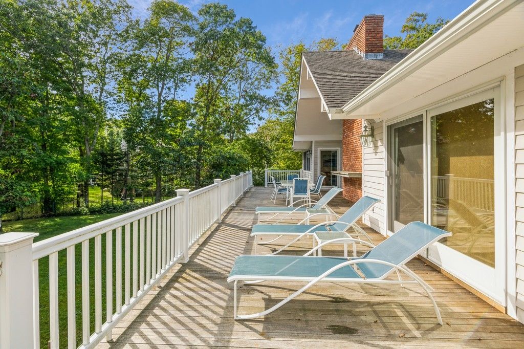 Rental Registration #: 23-1,313 This Contemporary home is beautifully renovated from top to bottom sitting pretty in Hither Woods, not too far from ocean beach. This house is light filled with open concept. The living room is huge with cathedral ceilings and fireplace, three bedrooms (two en-suite), three and a half baths total, gourmet kitchen, and a wrap around mahogany deck. Two separate lawn areas as well as a 20x40 heated pool. In addit
