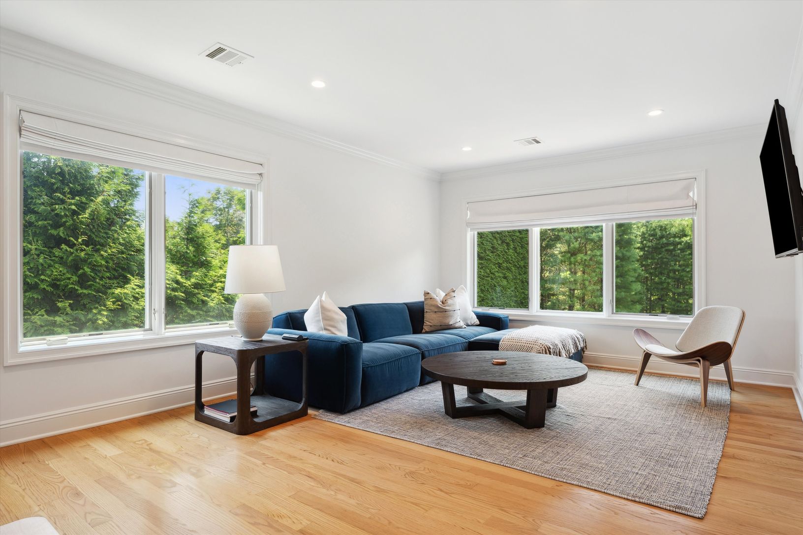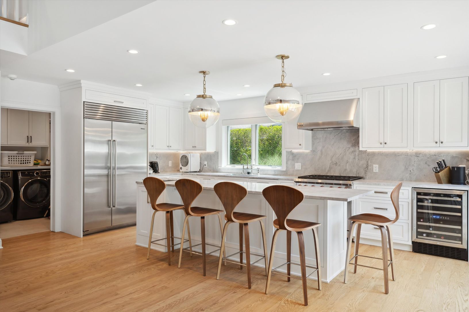 Located on a quiet street in the heart of Wainscott, this impressive four-bedroom, three-bathroom home is set on approximately 0.59 acres. Upon entering, you're welcomed by a dramatic double-height ceiling that carries through the expansive great room, creating a light-filled and inviting atmosphere. The home features a brand-new chef's kitchen equipped with top-of-the-line appliances, a finished lower level, and a generously sized mudroom tha