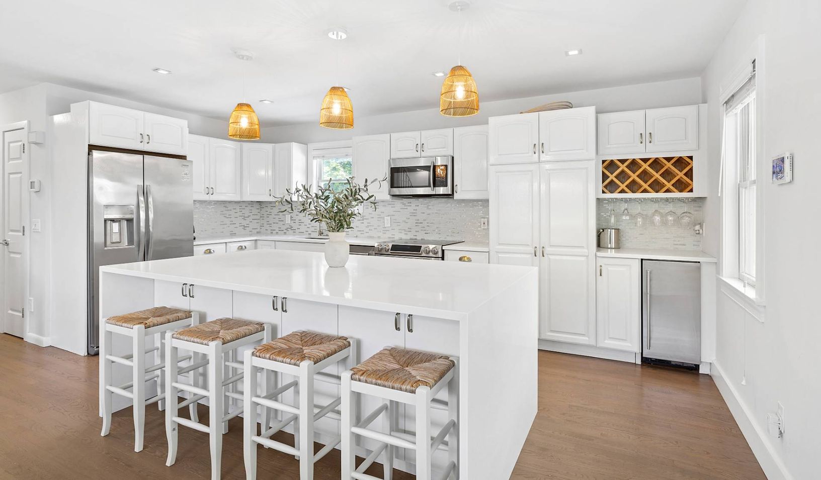 Welcome to 31 Highland Road, a charming Cape Cod-style home nestled in the heart of Southampton, New York. This meticulously maintained residence offers a perfect blend of classic design and modern comforts. Inside, the home features four spacious bedrooms and two bathrooms across 2,000 square feet of living space. Upon entry, you are greeted by a bright and airy open living space and kitchen with beautiful hardwood floors. The kitchen is equi