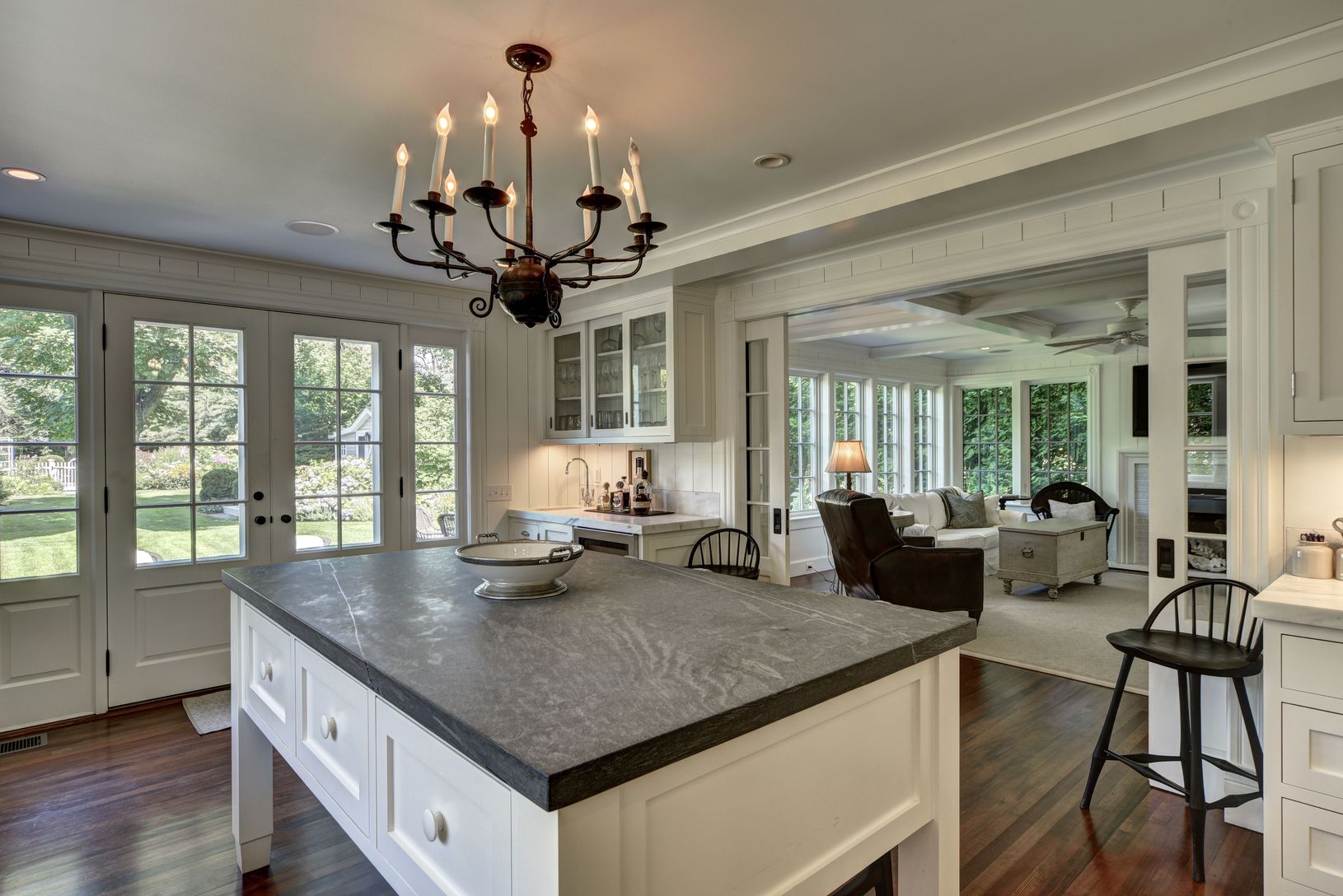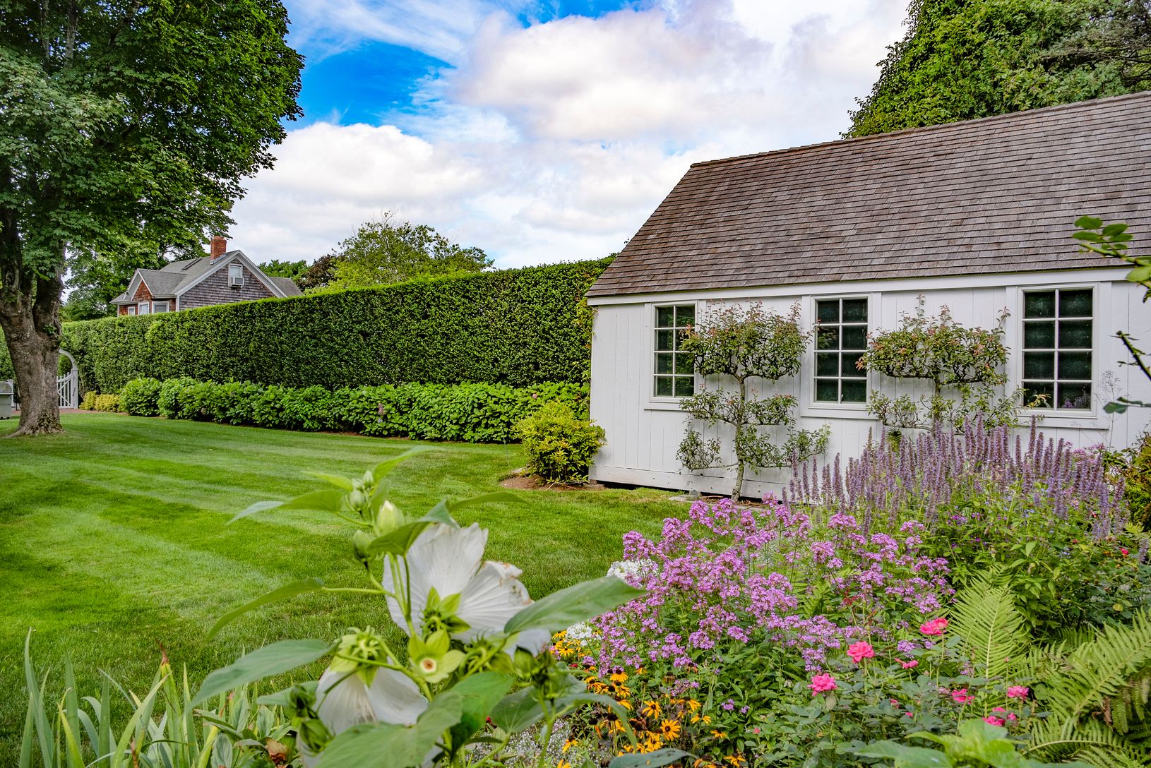 Sited in the highly sought-after Amagansett Lanes on a sprawling half acre +/-, one can find an impeccably renovated 4,000 +/- sq. ft. turn-of-the-century home that combines a wonderfully understated aesthetic with all the modern comforts that one could desire. Mature trees and beautiful plantings surround the four bedroom, three and one-half bath bath residence to create a Zen-like setting. Upon entering through the charming covered porch th