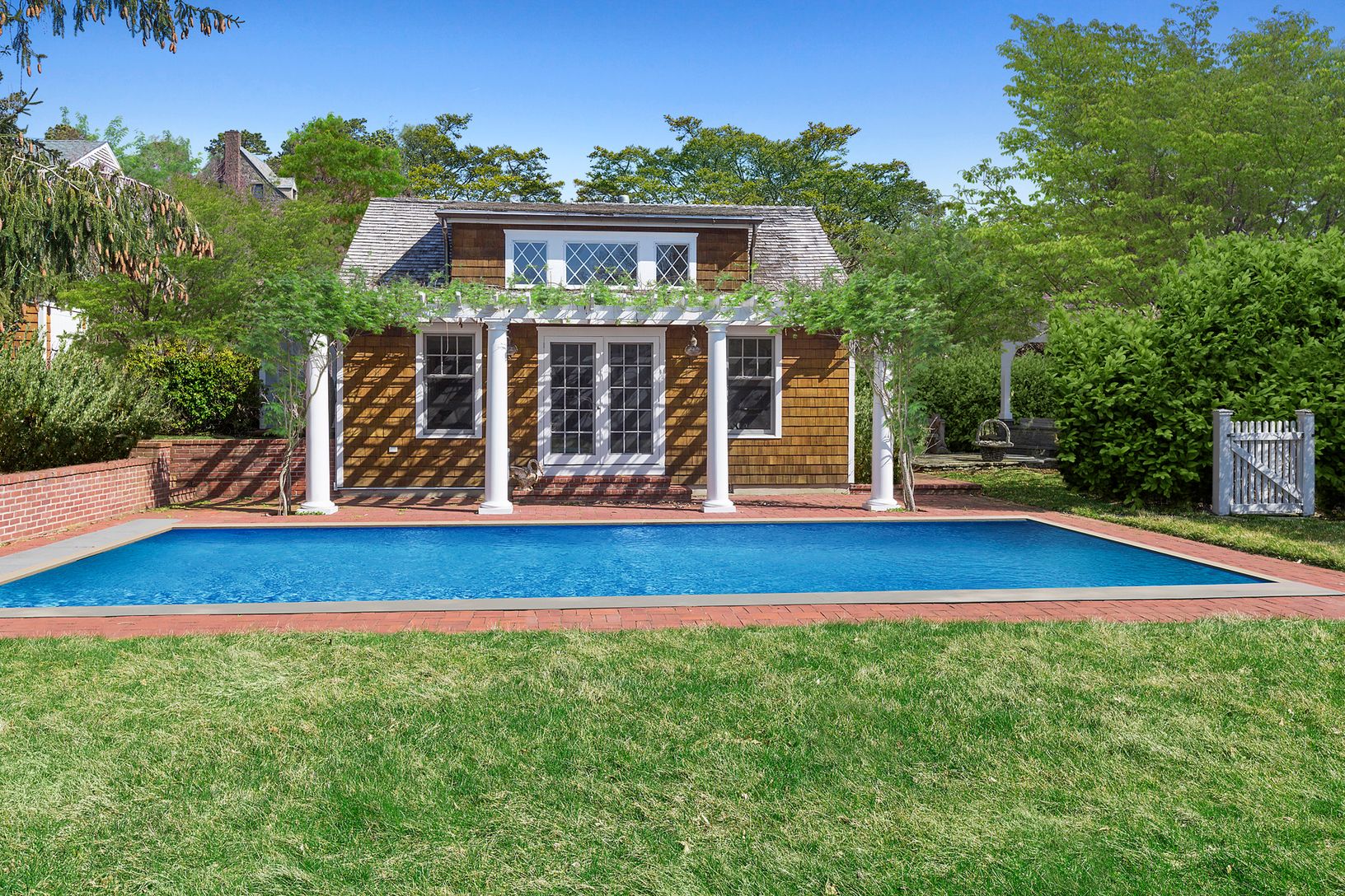 This Traditional Hamptons home with guest cottage offers many custom details that include antique leaded glass windows, oak flooring, and copper gutters and offers water views. 3,000 Sq. Ft. of beautiful living space includes open living area with 14 foot vaulted ceilings and gas fireplace, country kitchen with top of the line appliances and honed Batticino marble countertops, 4 bedrooms and 4 baths. The master bedroom suite includes a private