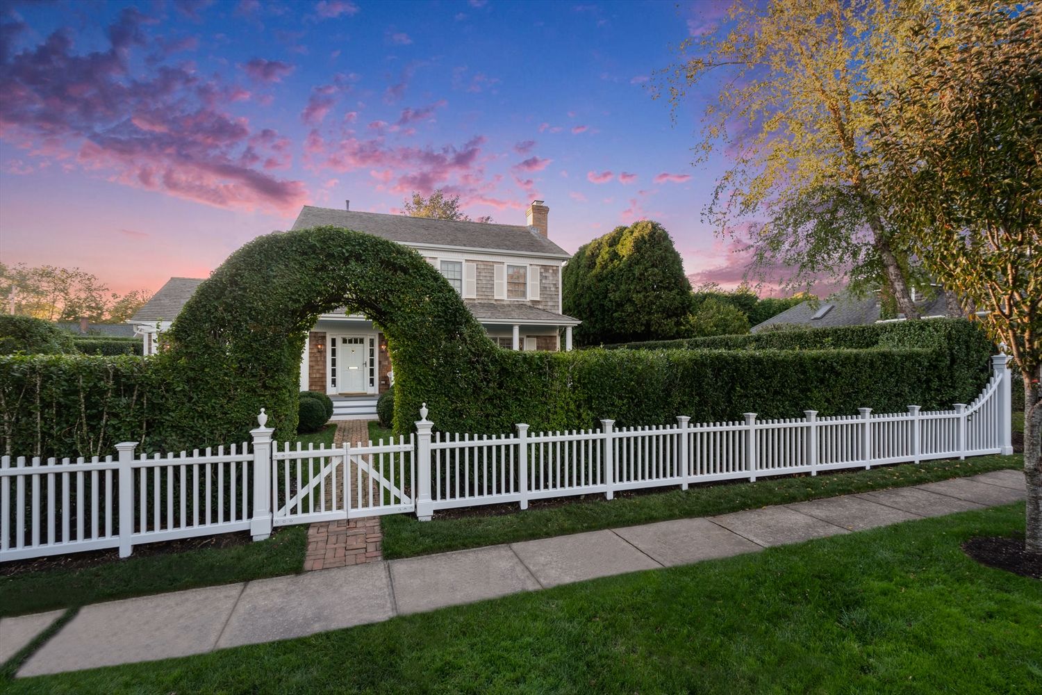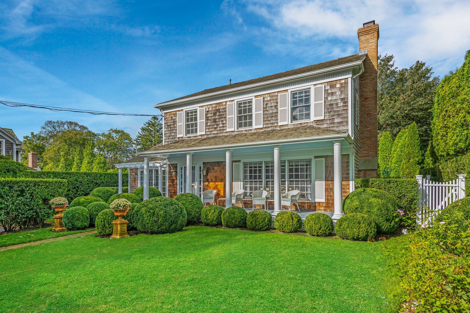 Elegant and tastefully updated classic cottage in the heart of East Hampton Village is new to the market. Unparalleled lush landscaping including mature privets, boxwoods, rose garden you can appreciate the moment you step through the gate with privet arbor. Entering through the gracious front porch into the sunny living room with fireplace, this home offers four bedrooms, three bathrooms, living room, kitchen, with both den and dining room le