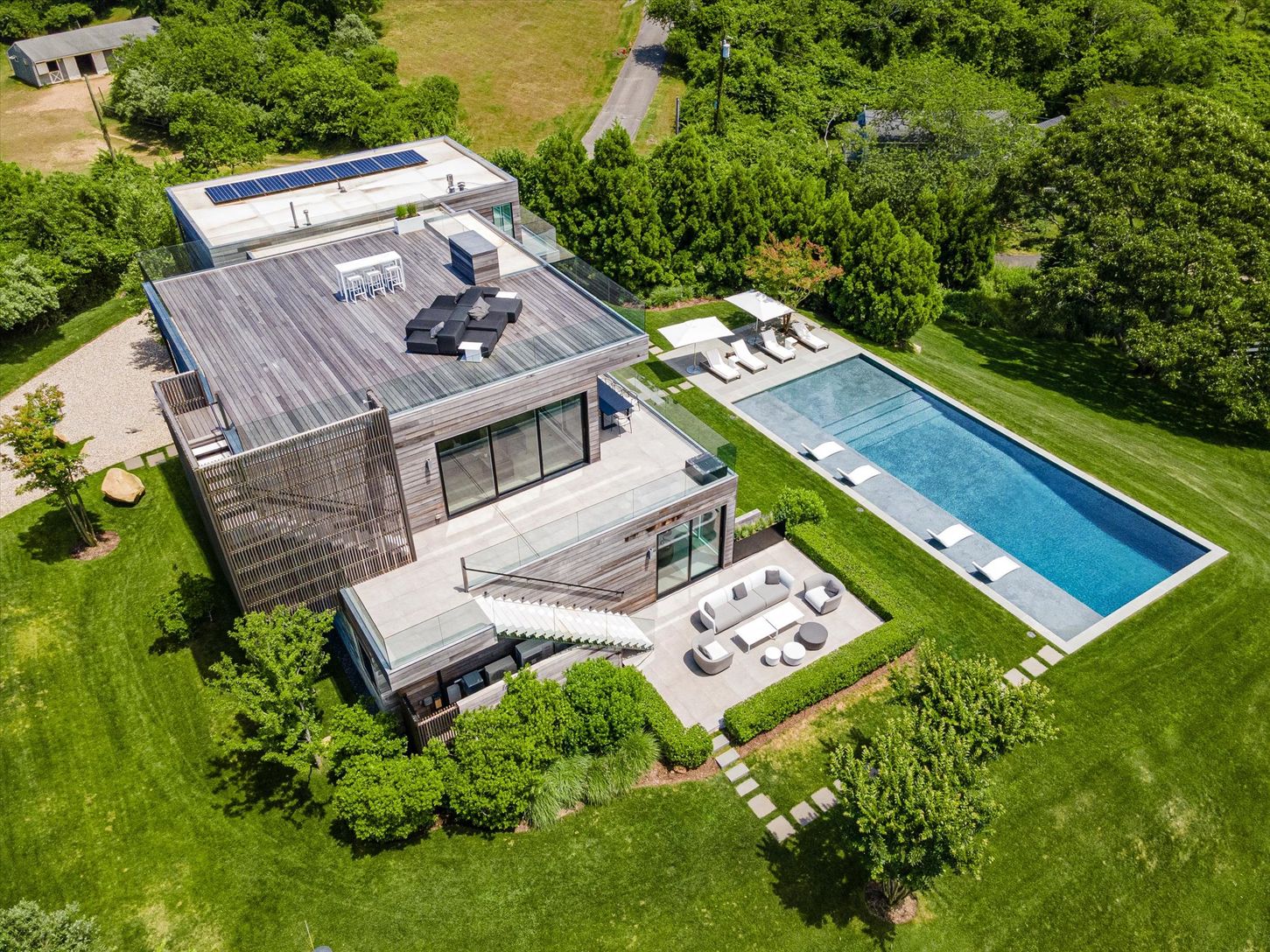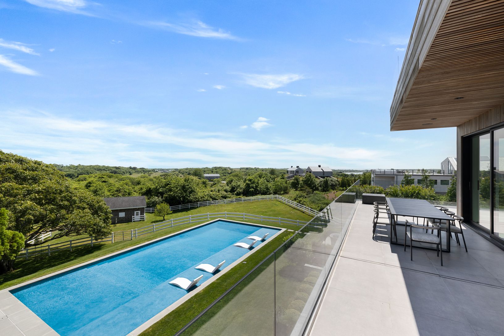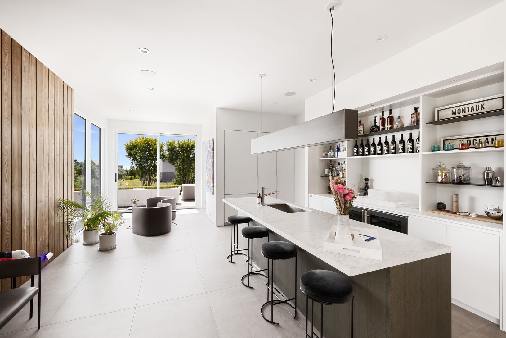This state of the art modern home, designed by the renowned West Chin Architects, is situated on 1.1 acres and offers 6 bedrooms, 5.2 baths and heated gunite pool with breathtaking views of Lake Montauk, the Bay and the Atlantic ocean. Upon entry to the main level, this light-filled and beautifully designed floor plan offers an expansive open-concept family room with additional bar/seating area, sliding glass walls, which seamlessly connects w