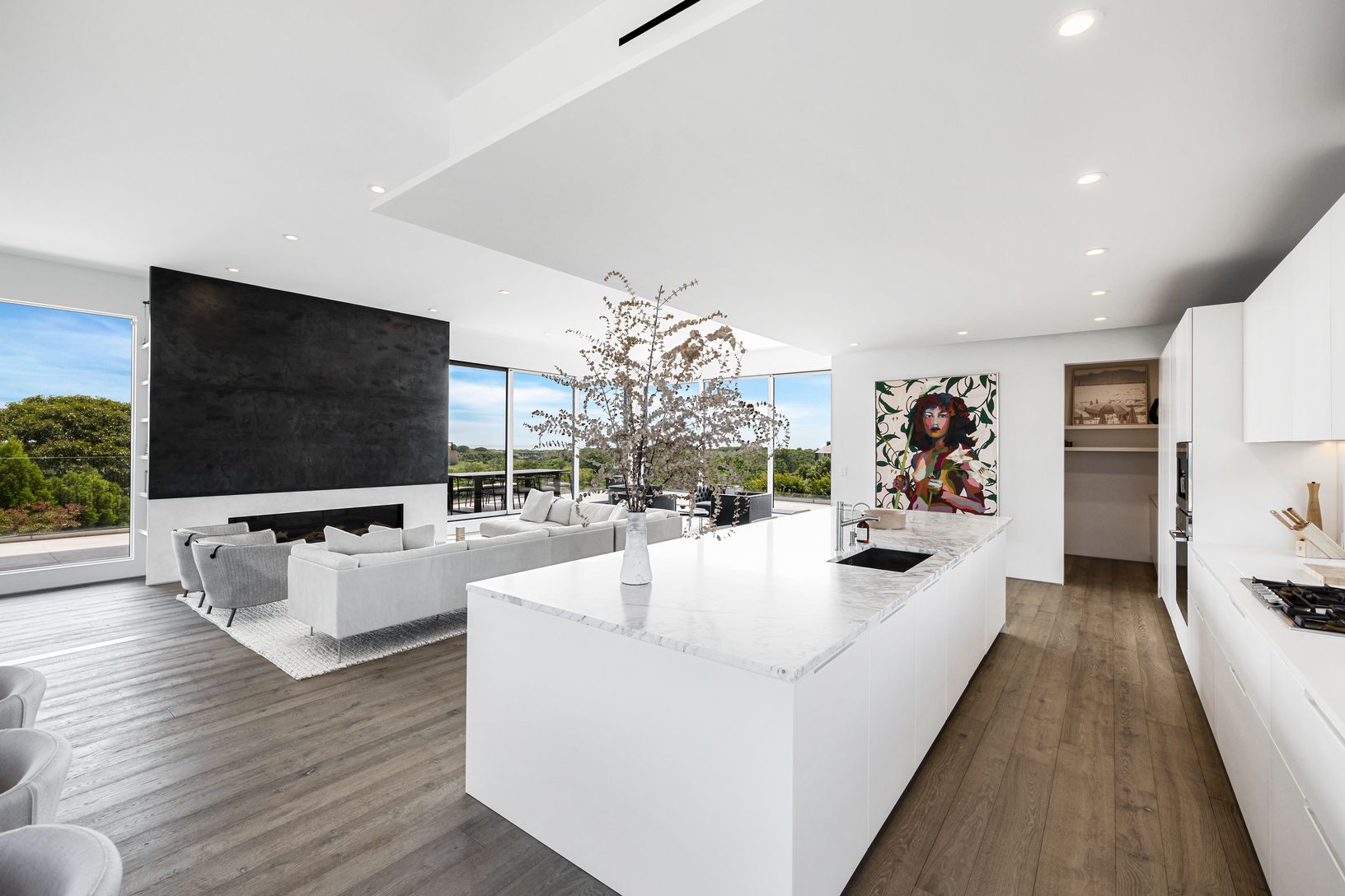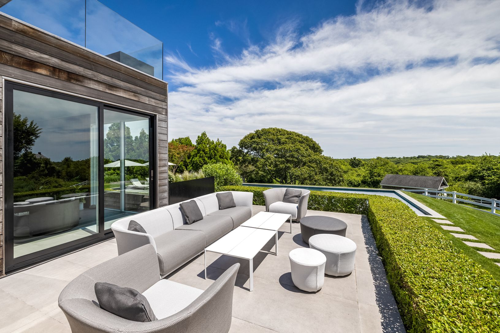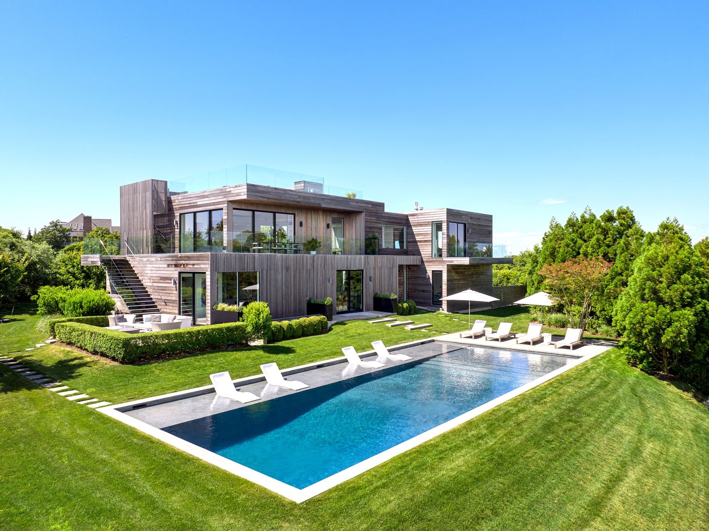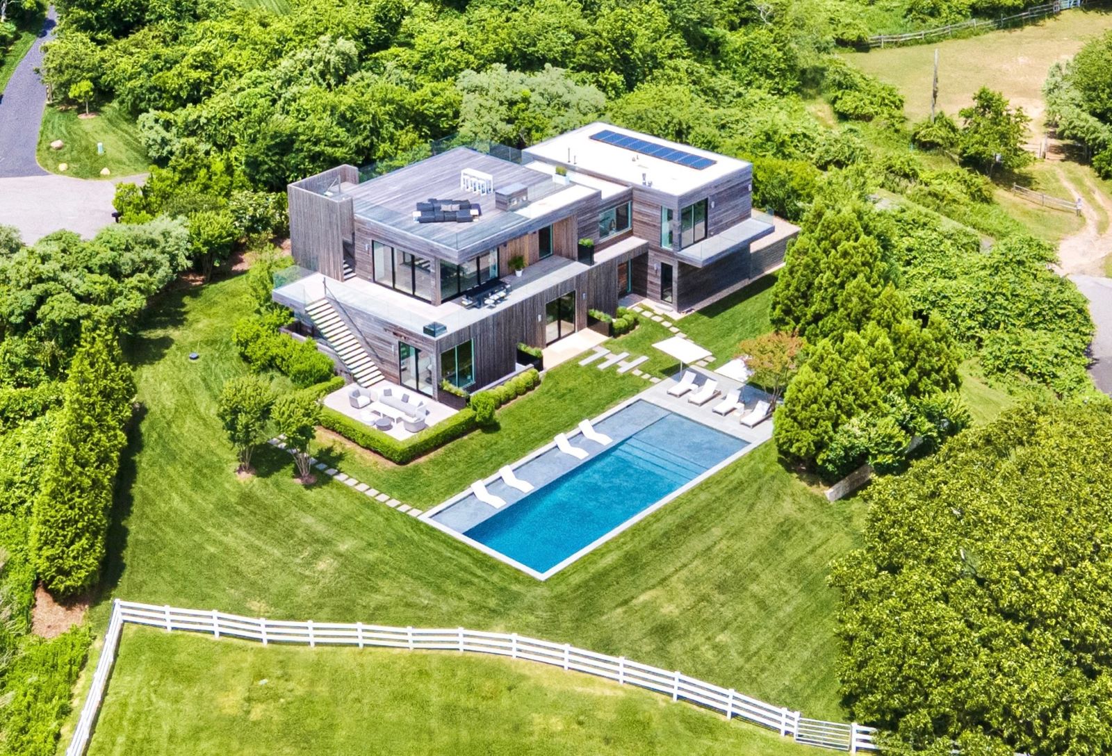 This state of the art modern home, designed by the renowned West Chin Architects, is situated on 1.1 acres and offers 6 bedrooms, 5.2 baths and heated gunite pool with breathtaking views of Lake Montauk, the Bay and the Atlantic ocean. Upon entry to the main level, this light-filled and beautifully designed floor plan offers an expansive open-concept family room with additional bar/seating area, sliding glass walls, which seamlessly connects w