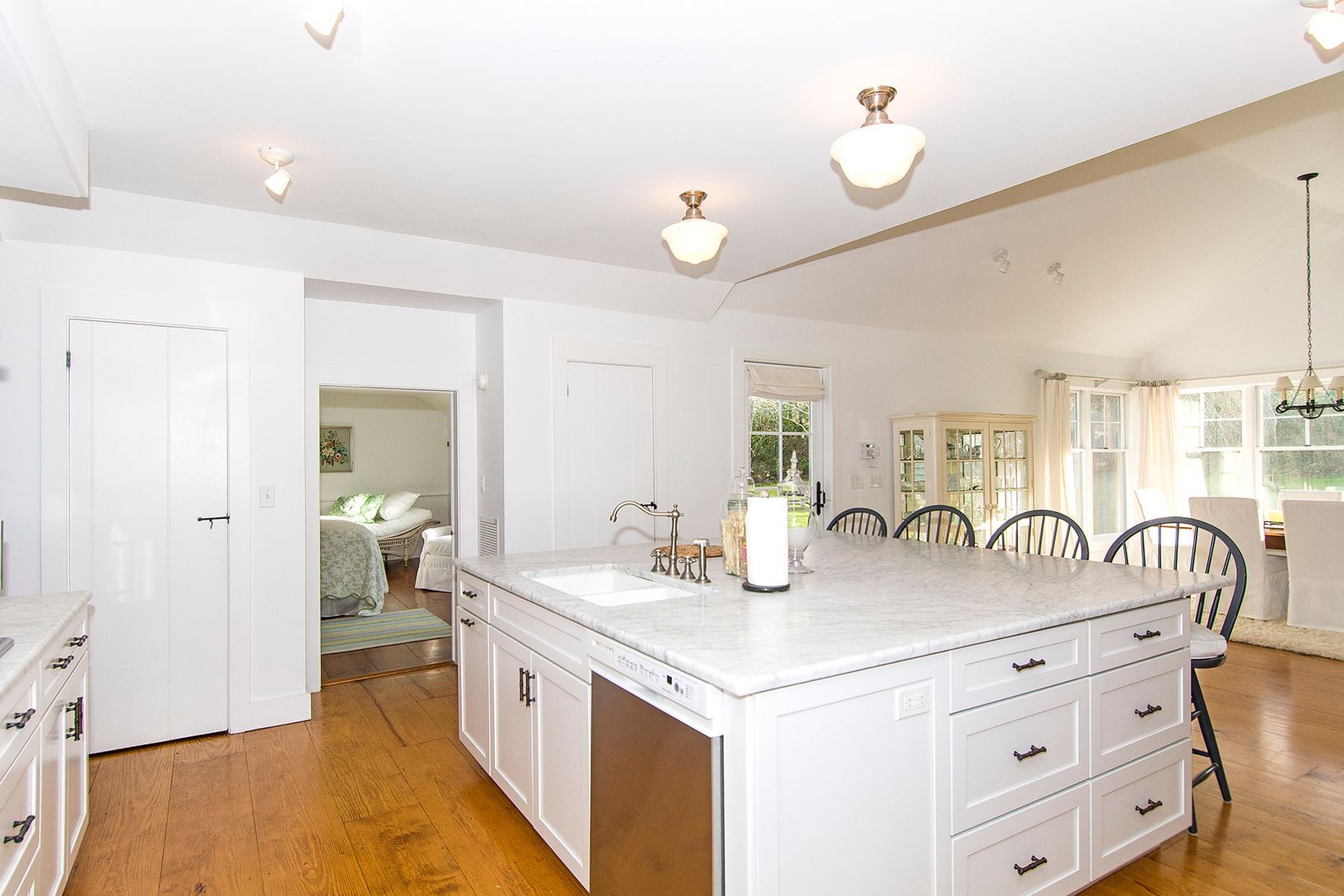 Nestled in the heart of Wainscott close to a local farm stand and ocean beaches, this beautifully renovated, sun filled historic home features four bedrooms, four baths, an original parlor/office which opens into a stunning new great room with open living, dining, and chef's kitchen, all adjoining the charming screened porch and patio and overlooking beautifully landscaped grounds and the 20x40 heated GUNITE pool. This very private, garden fi