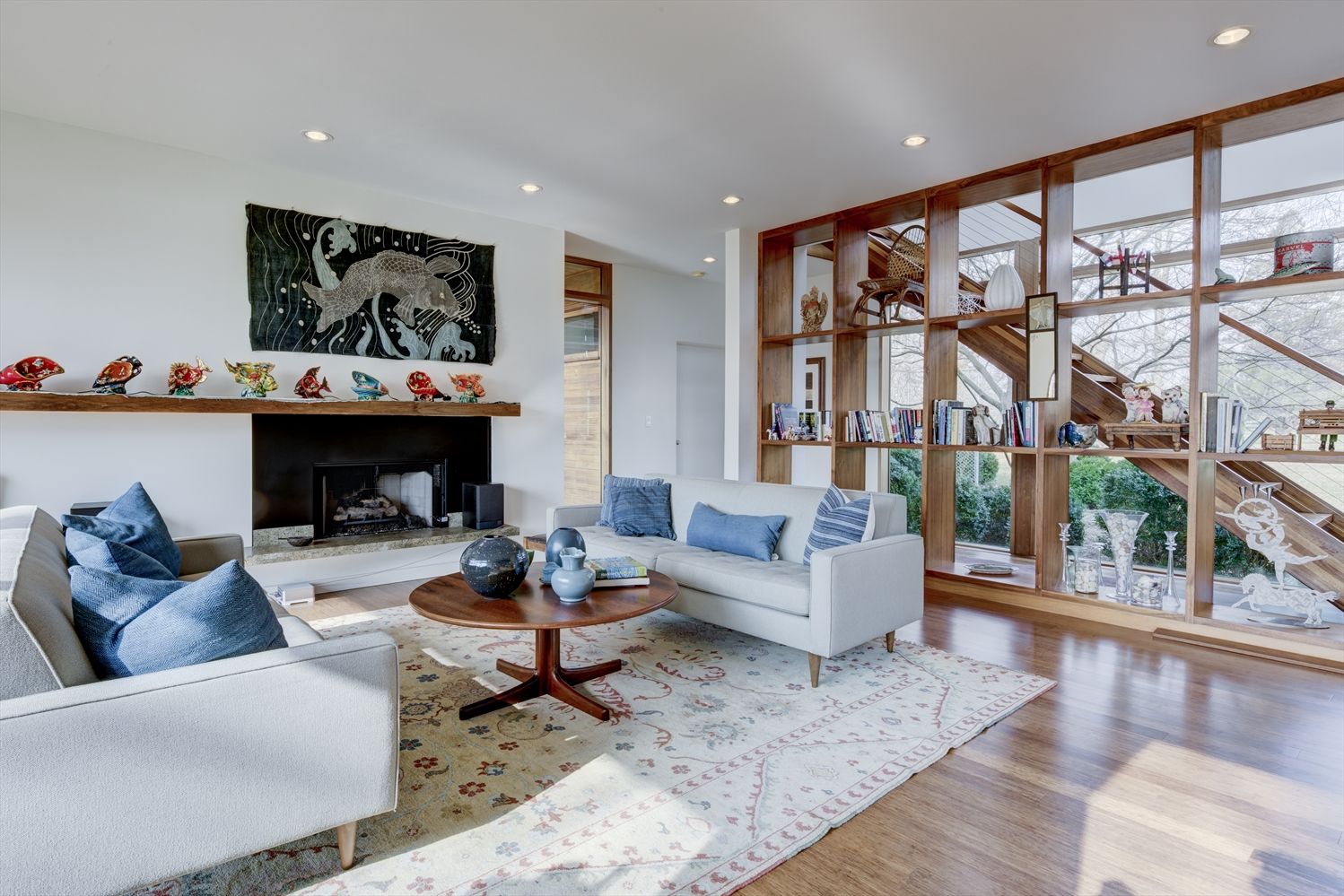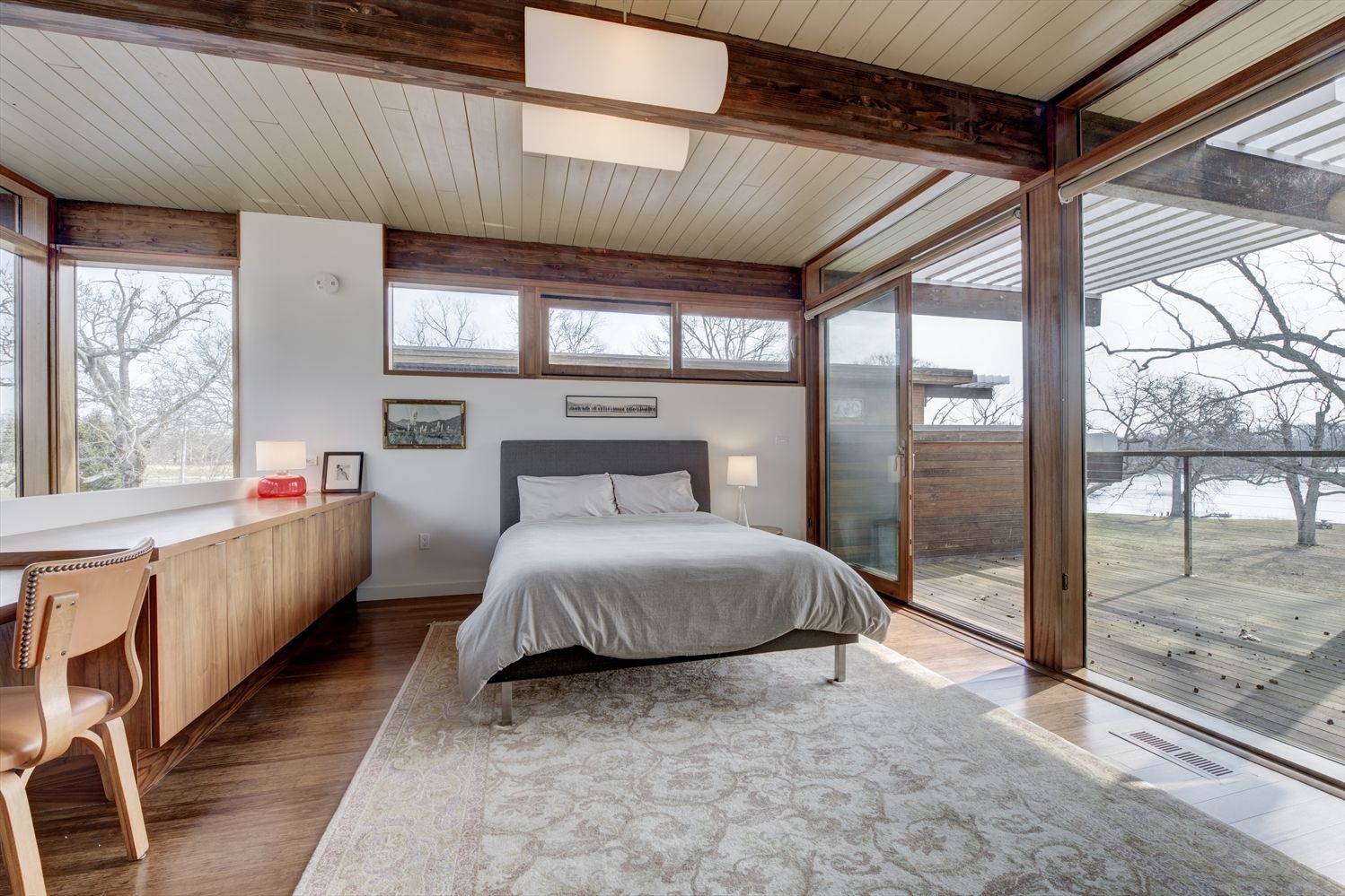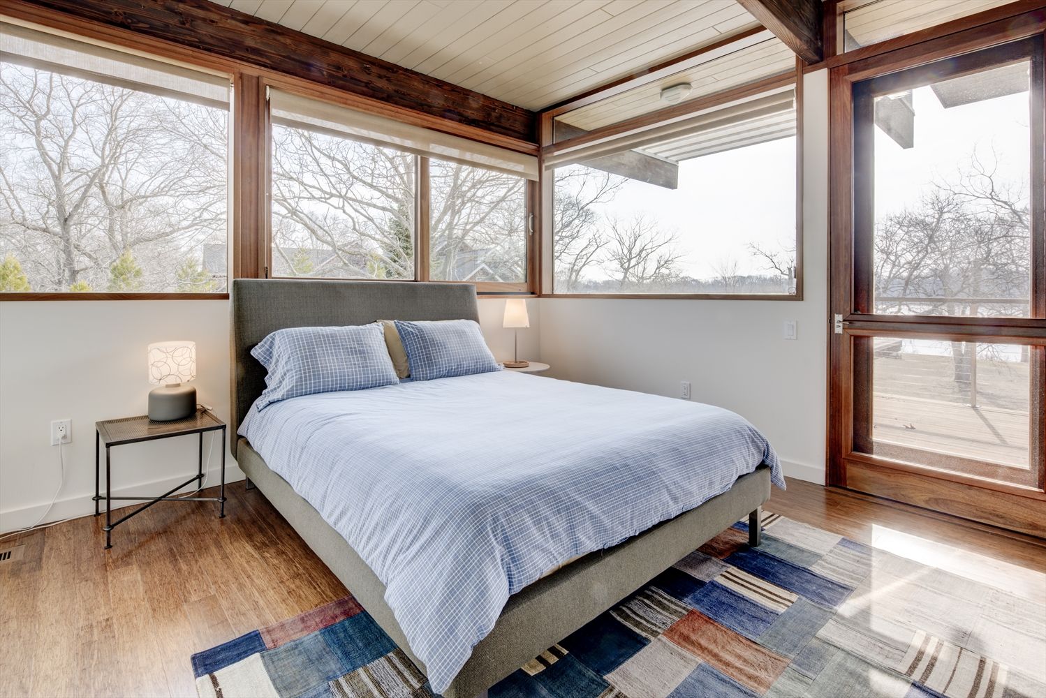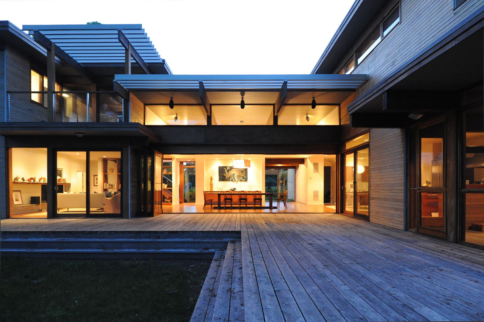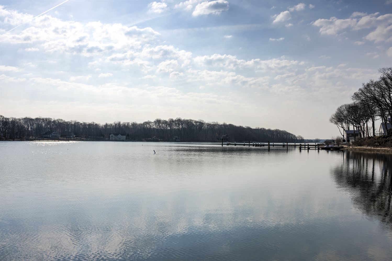 This architecturally significant modern design is being offered for the first time since it was commissioned. The home is located on over 2 acres of waterfront property in the lovely peninsular community of Westmoreland. The dramatic open plan space has walls of glass in the living room and six folding panel glass doors with a double height beamed ceiling in the dining room. The designer kitchen has a wonderful granite and butcher block isl