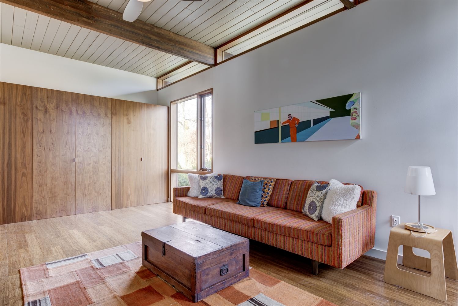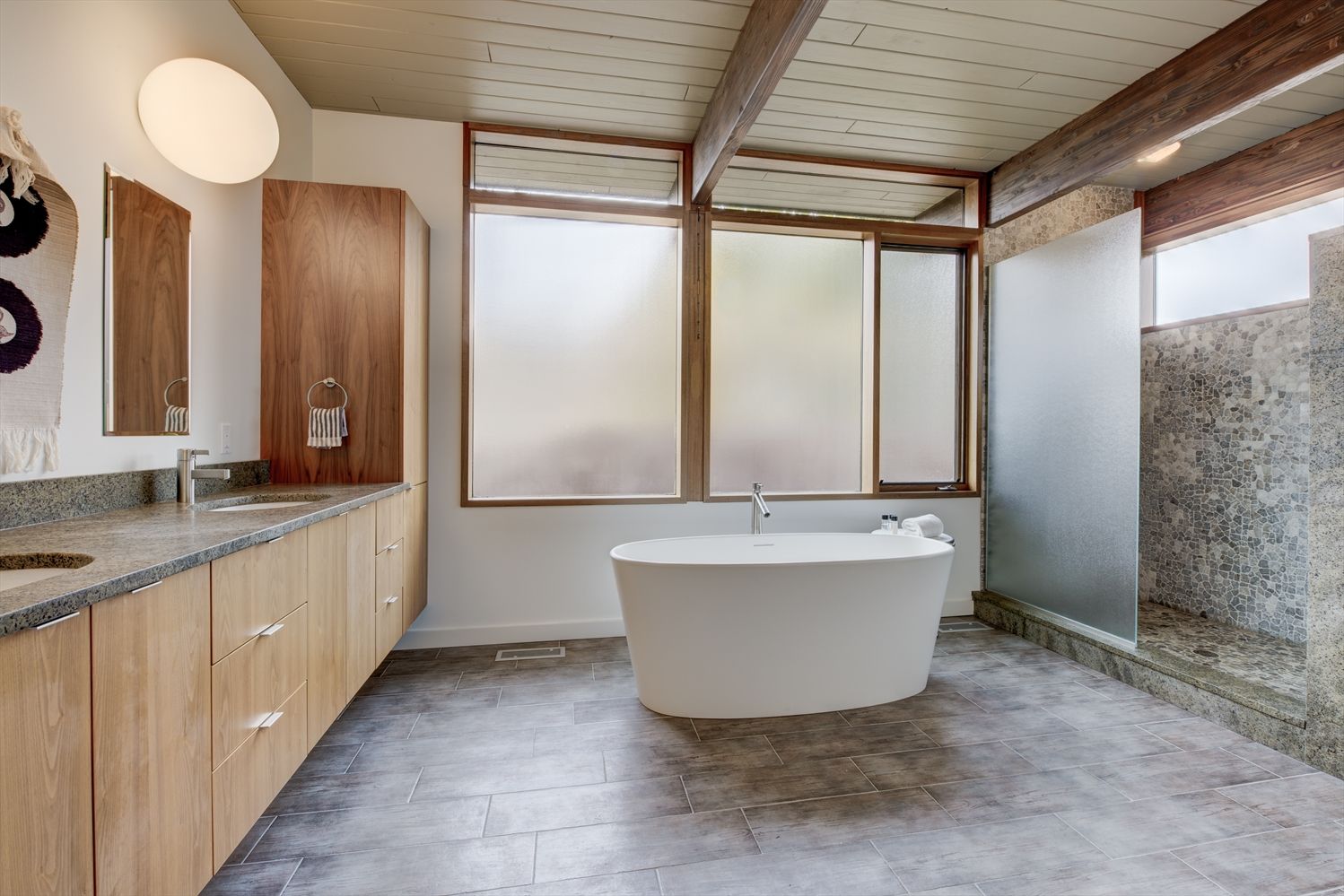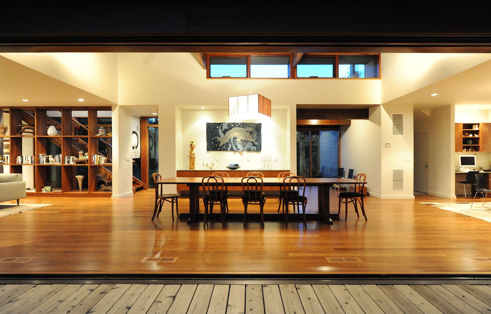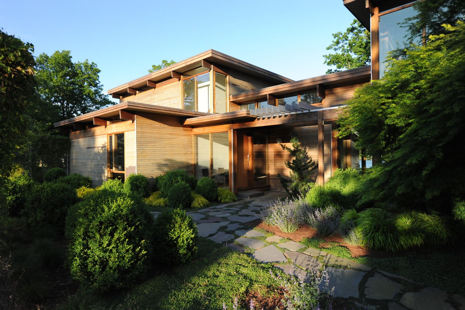 This architecturally significant modern design is being offered for the first time since it was commissioned. The home is located on over 2 acres of waterfront property in the lovely peninsular community of Westmoreland. The dramatic open plan space has walls of glass in the living room and six folding panel glass doors with a double height beamed ceiling in the dining room. The designer kitchen has a wonderful granite and butcher block isl