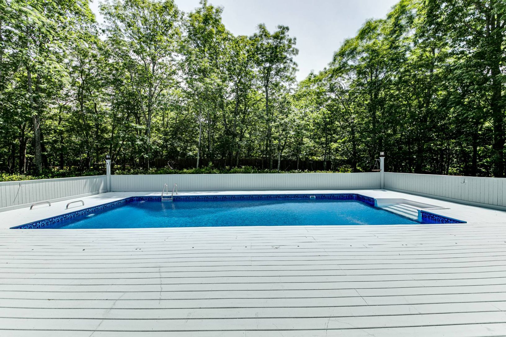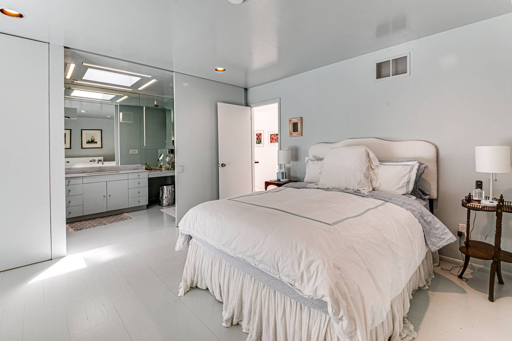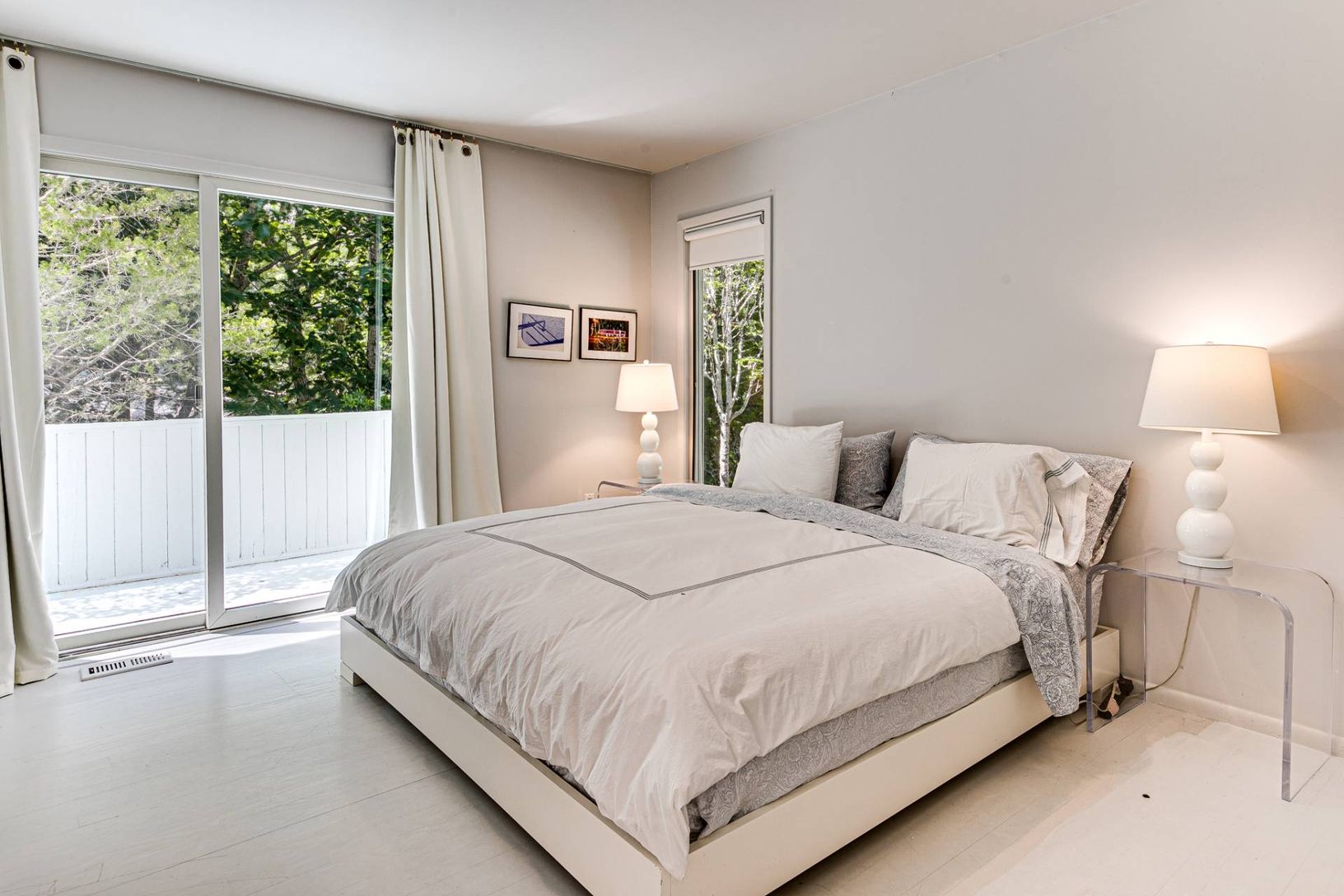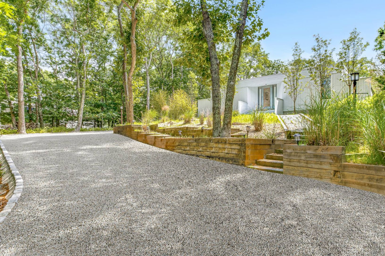 Located down a very quiet and private cul de sac, perched on the highest part of the property, lies this wonderful modern home on a full acre of land. Flooded with light, this home is a study in symmetry. Two bedrooms on either side, one with a "Jack and Jill," bathroom, a master bedroom, and bedroom with a half bath on the opposite side, separated by a center hallway leading to the living area. Each of the four bedrooms have sliding doors lea