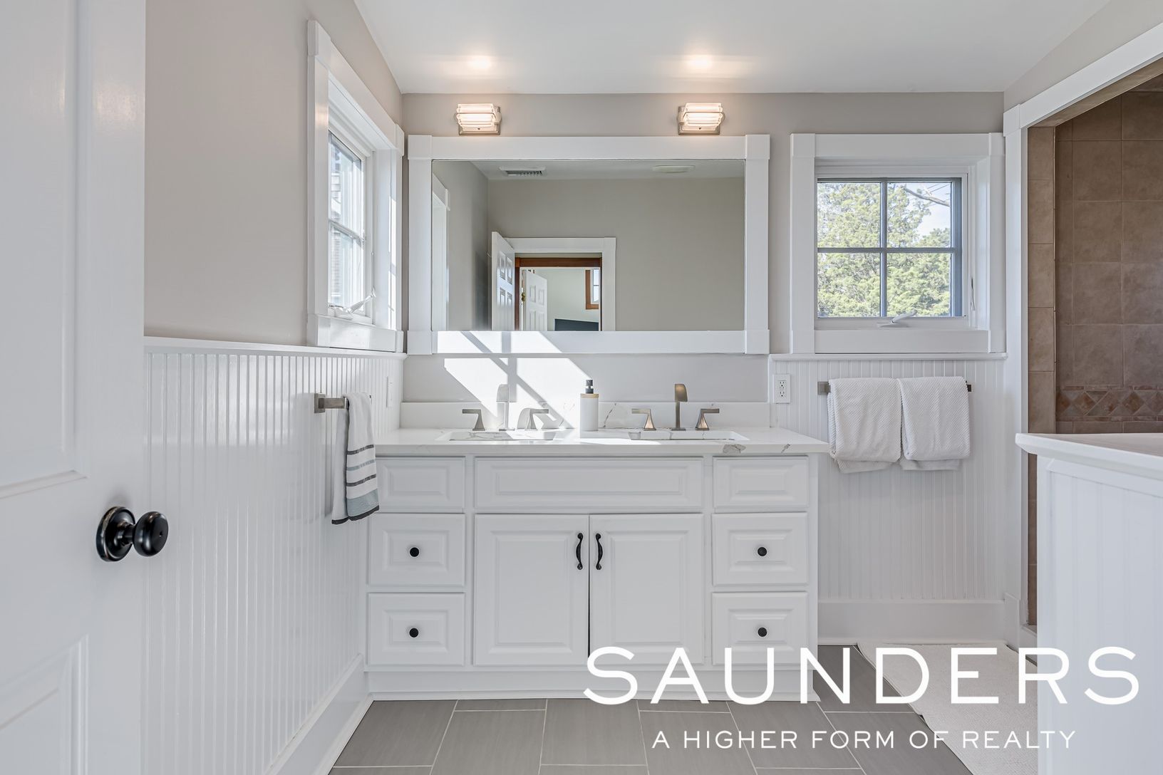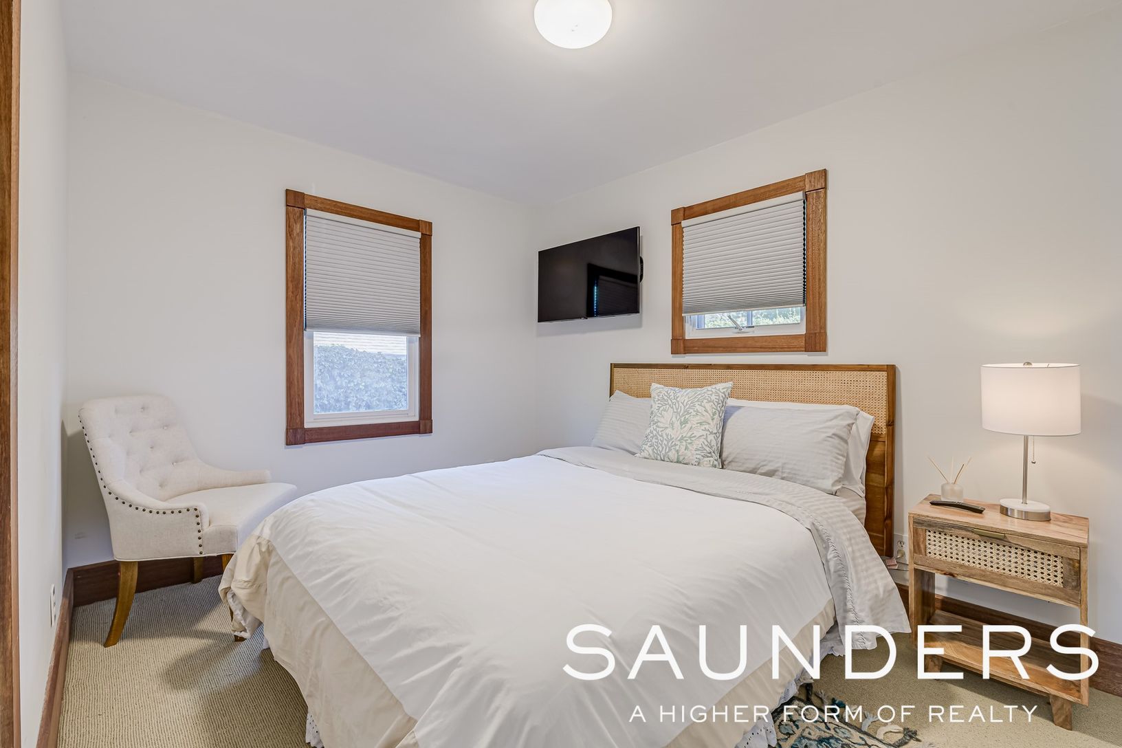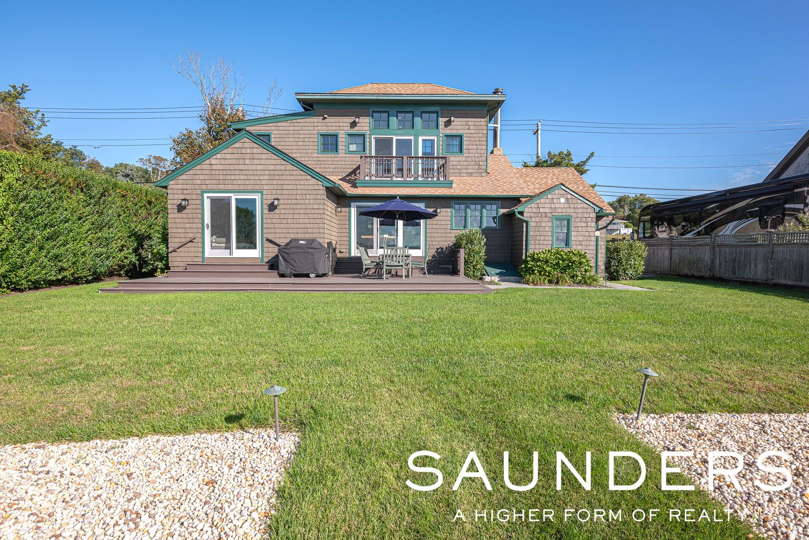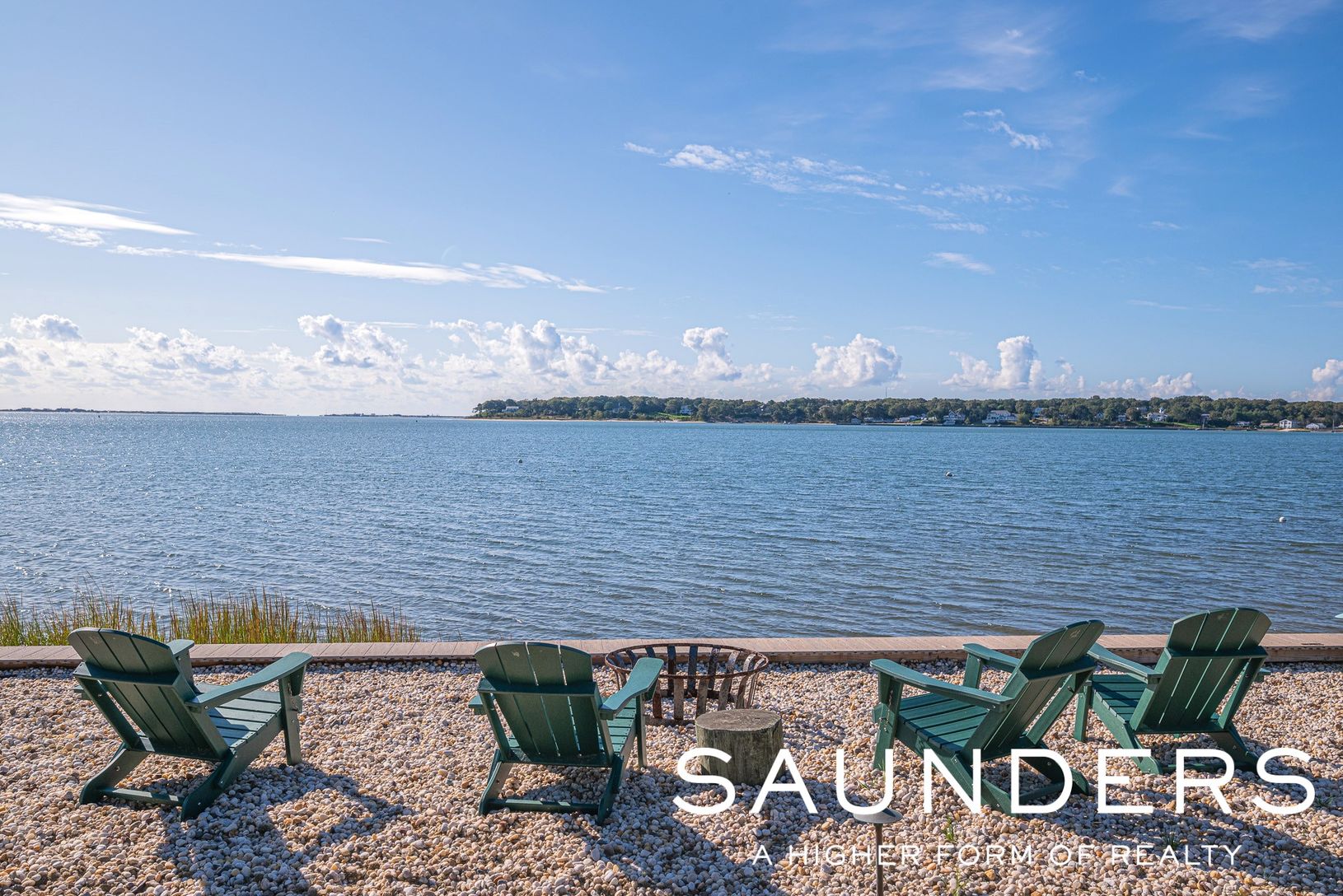 Available 2026 June US Open Month is $25,000, 2026 July $20,000, 2026 August $30,000 - Call to confirm rates/availability. Come Enjoy the amazing view on Shinnecock Bay in this 3-Bedroom, 2-Bath Hamptons Home! Beautifully Renovated and Professionally Landscaped, this retreat offers an open floor plan with kitchen, dining, living room and stylish furnishings and decor. The 2nd Floor Master Bedroom has a vaulted ceiling with walls of windows of