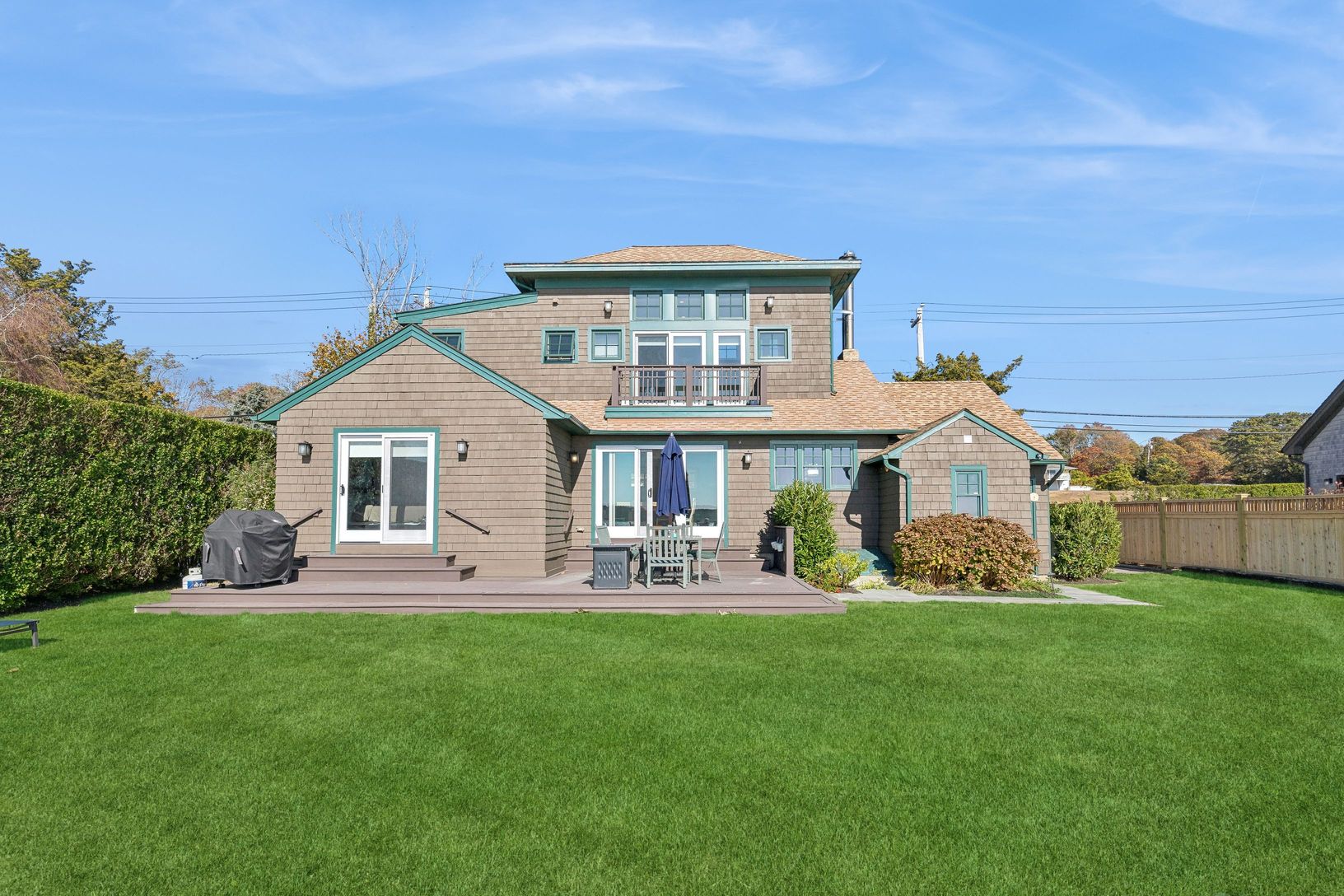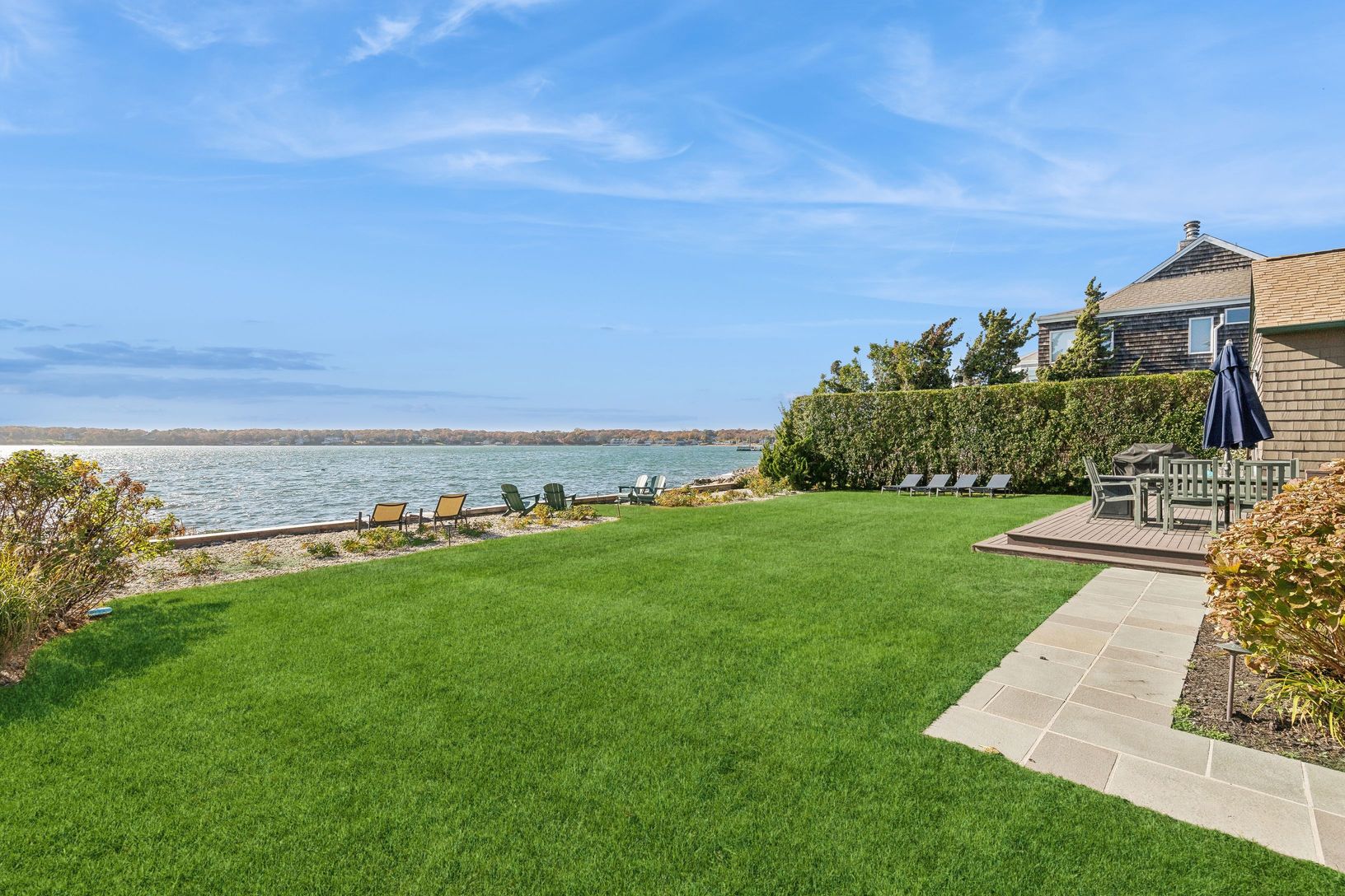 Come enjoy the amazing view on Shinnecock Bay in this 3-Bedroom, 3-Bath Hamptons Home! Beautifully Renovated and Professionally Landscaped, this retreat offers an open floor plan with kitchen, dining, living room and stylish furnishings and decor. The 2nd Floor Primary Bedroom has a vaulted ceiling with walls of windows offering stunning waterfront views and a large luxurious bathroom. The first floor has 2 guest bedrooms, one en suite which a