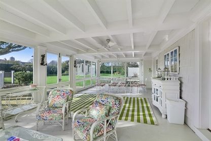 Located on one of the most desirable streets in Southampton, this nine-bedroom, seven-bath Beach House has a well-designed floor plan for entertaining. There is direct ocean beach access just in front of the lush green lawn and perfuming flower gardens--a real tranquil spot! The home is sunny and airy and there are many delightful balconies as well to enjoy the sounds of the ocean. The first floor has a foyer leading into living room with pian