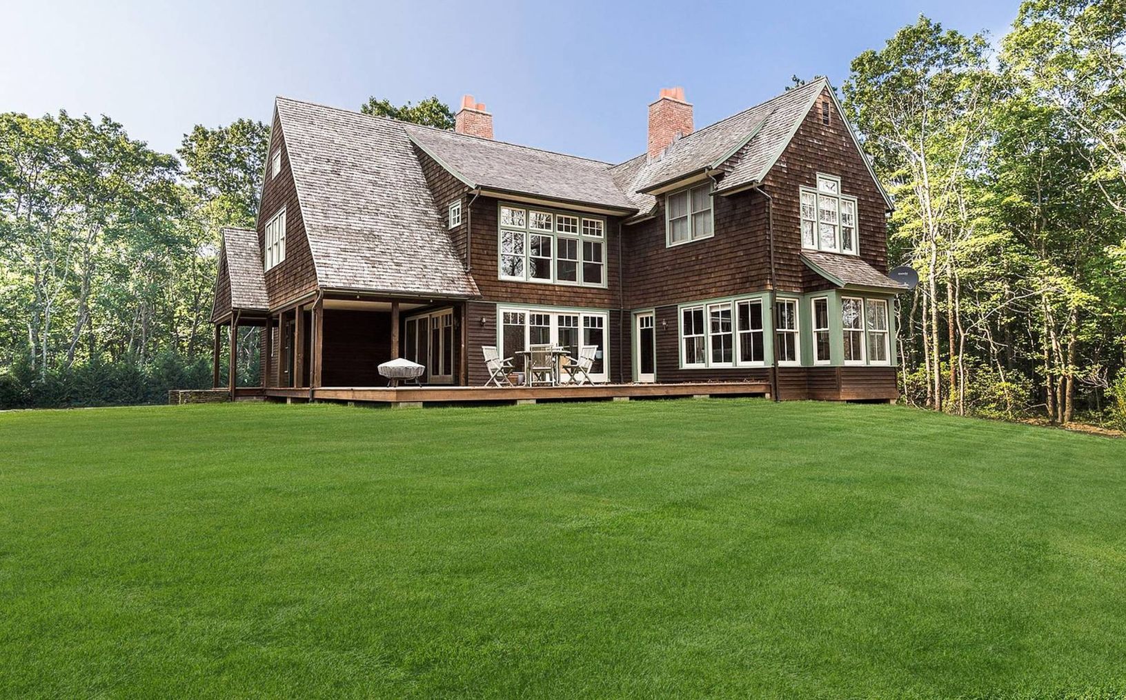 Surrounded by nature on 9.5 acres, this classic Hamptons home offers 3,000+/- sq. ft. of living space with four bedrooms and three baths. Amenities include three working fireplaces, one in the master, a bonus room/loft, expansive decking and porches, and an attached two-car garage. There is ample room for expansion, a pool, and tennis.