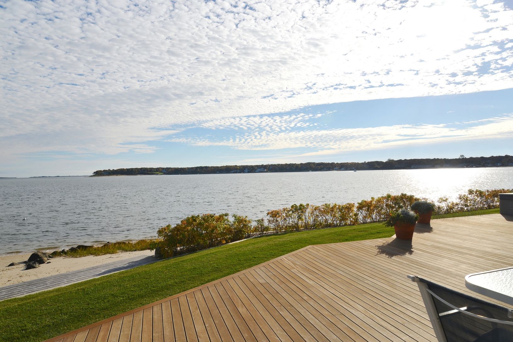 Beautiful and newly renovated, this incredible house is perfectly sited directly on Shinnecock Bay. Bathed in sunlight, this elegantly detailed house offers stunning views from nearly every room. Top-of-the line kitchen with all-new stainless steel appliances; double-height living room with fireplace; Brazilian cherry wood floors; master suite with sitting room and sauna. Perfect for summer recreation and relaxation, with a large waterside sun