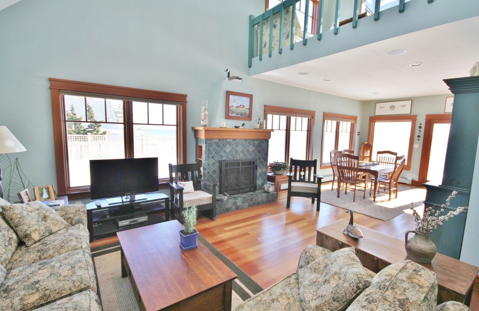 Charming bayfront Craftsman cottage with spectacular views. Renovated in 2006 this meticulously maintained waterfront home offers an open floor plan featuring a living room with a fireplace and a dining area with dramatic views and glass doors to the large waterside deck. The large deck has a separate awning covered dining area and a hot tub. There are 3 bedrooms and 2 baths including a spacious master with a sitting room and bath. The brillia