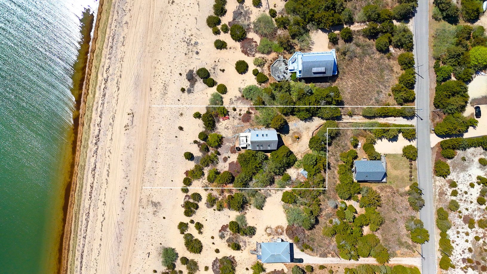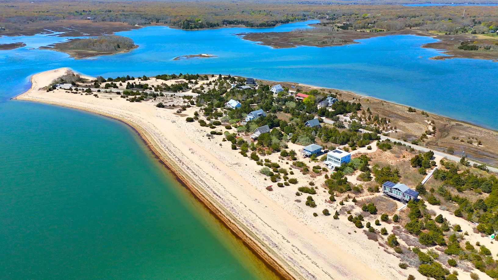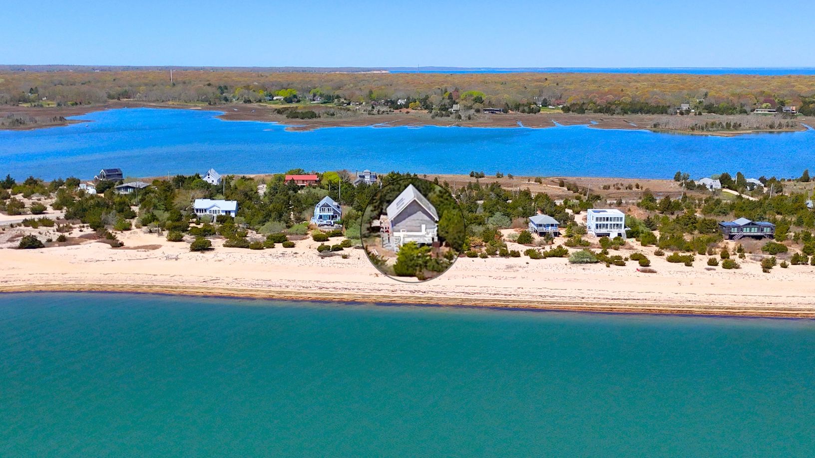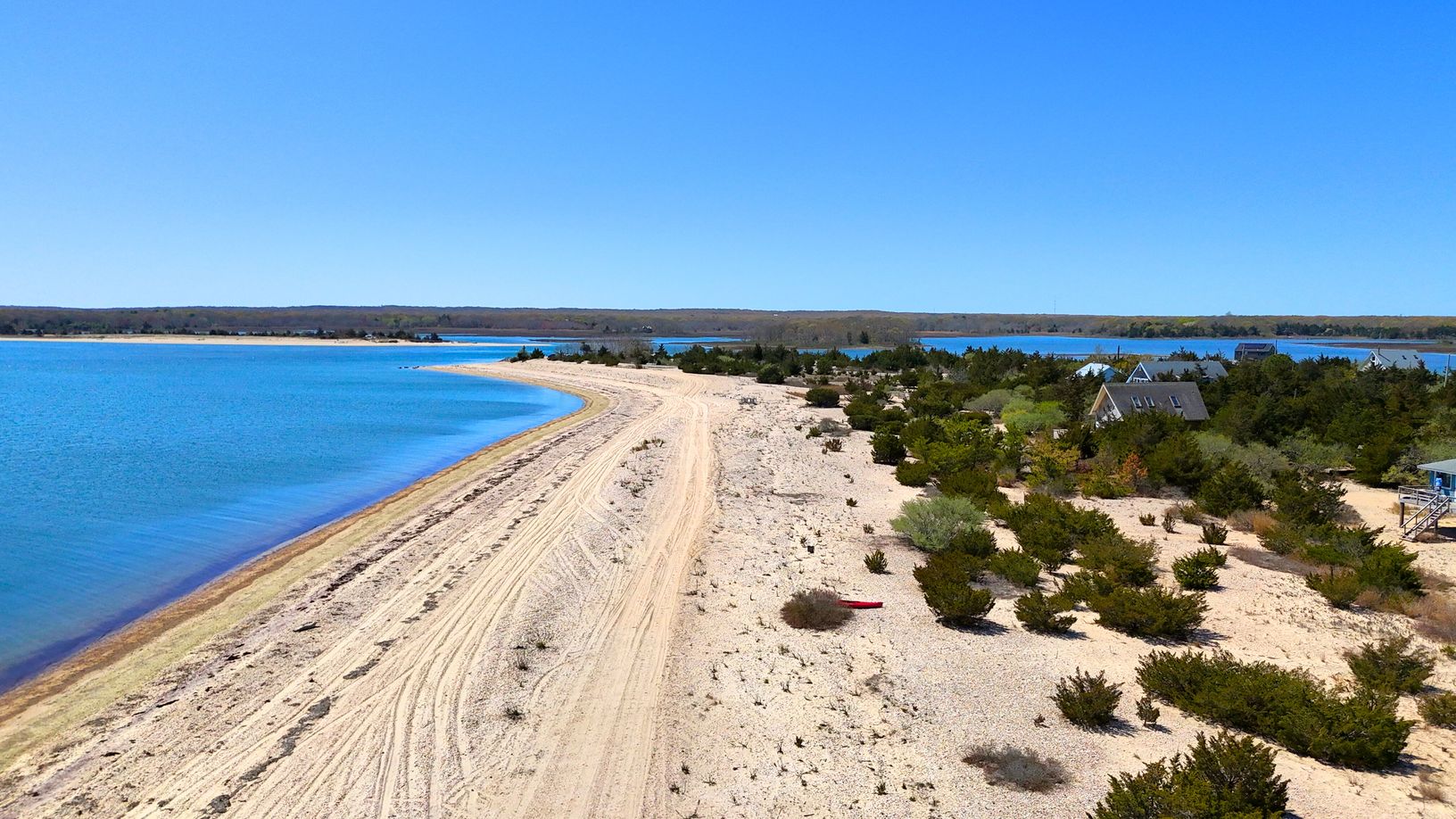 With over 100 feet of beachfront, this property overlooks Gardiners and Cartwright Island with calm and clean waters. Swimming, kayaking, paddle boarding, fishing, biking; list goes on. The raised FEMA-compliant structure offers panoramic views and provides 360 degrees views. Plans are approved to finish the existing three bedroom two bathroom A-frame with dormers on both sides; or take this opportunity to expand the space and let your imagina