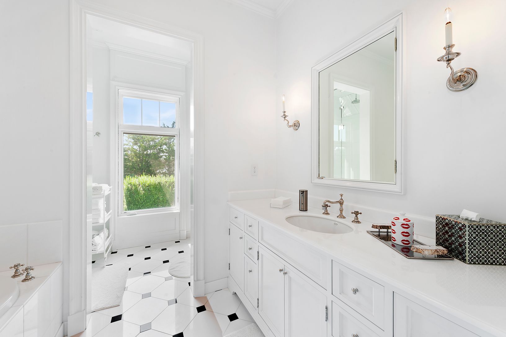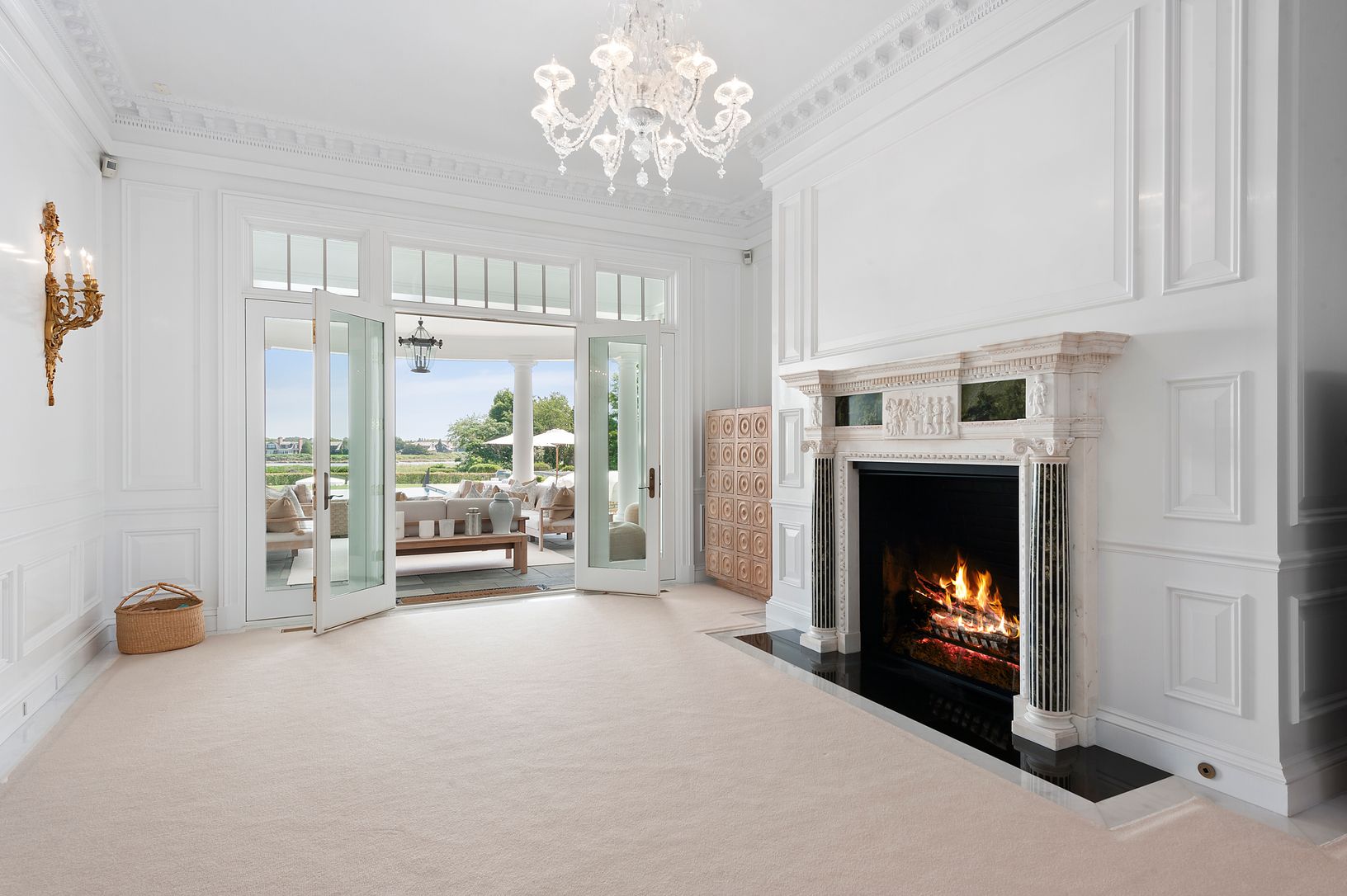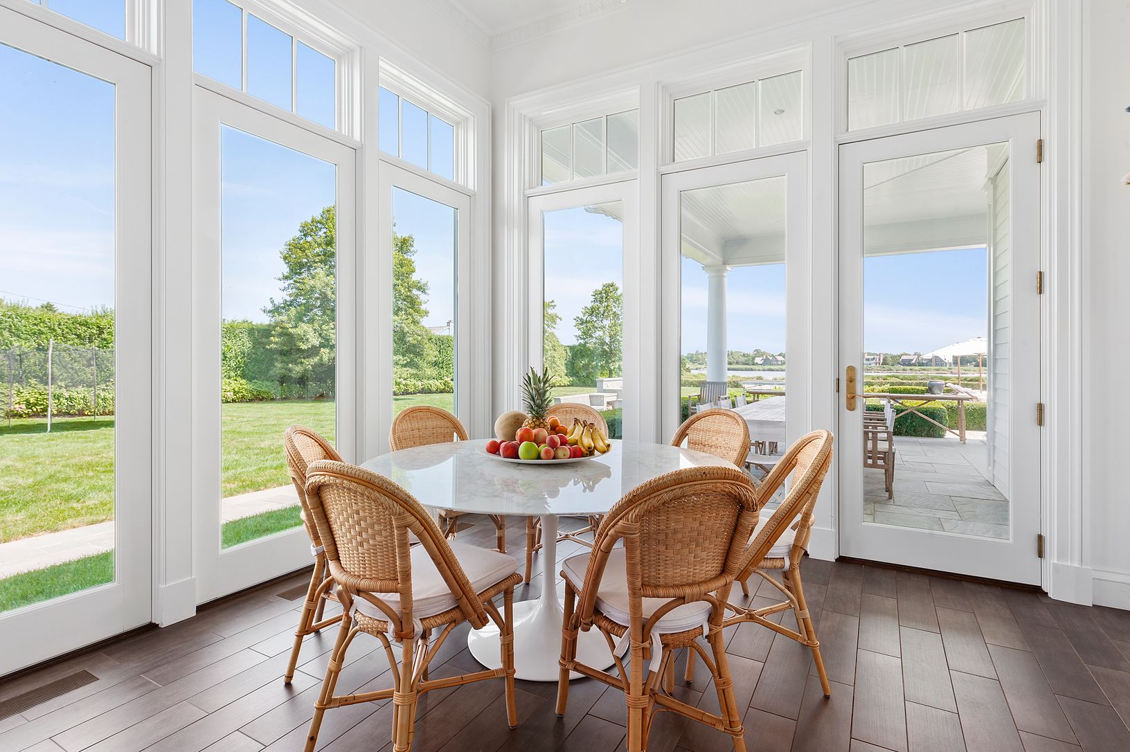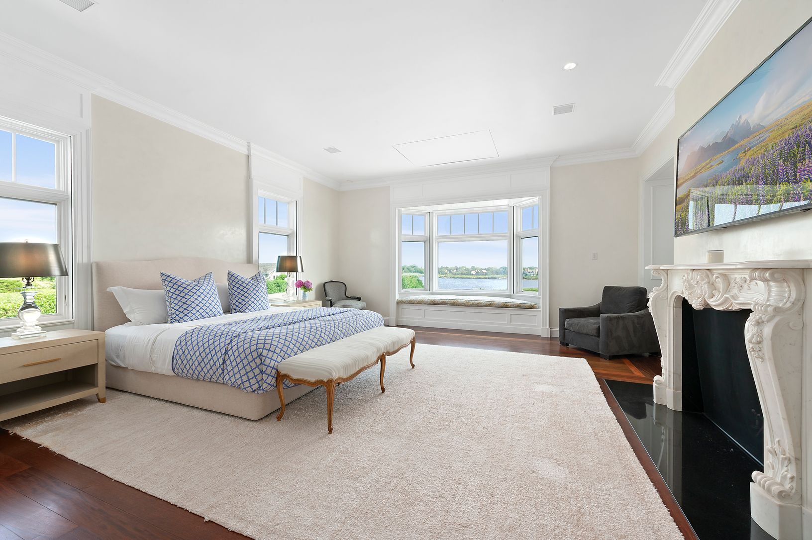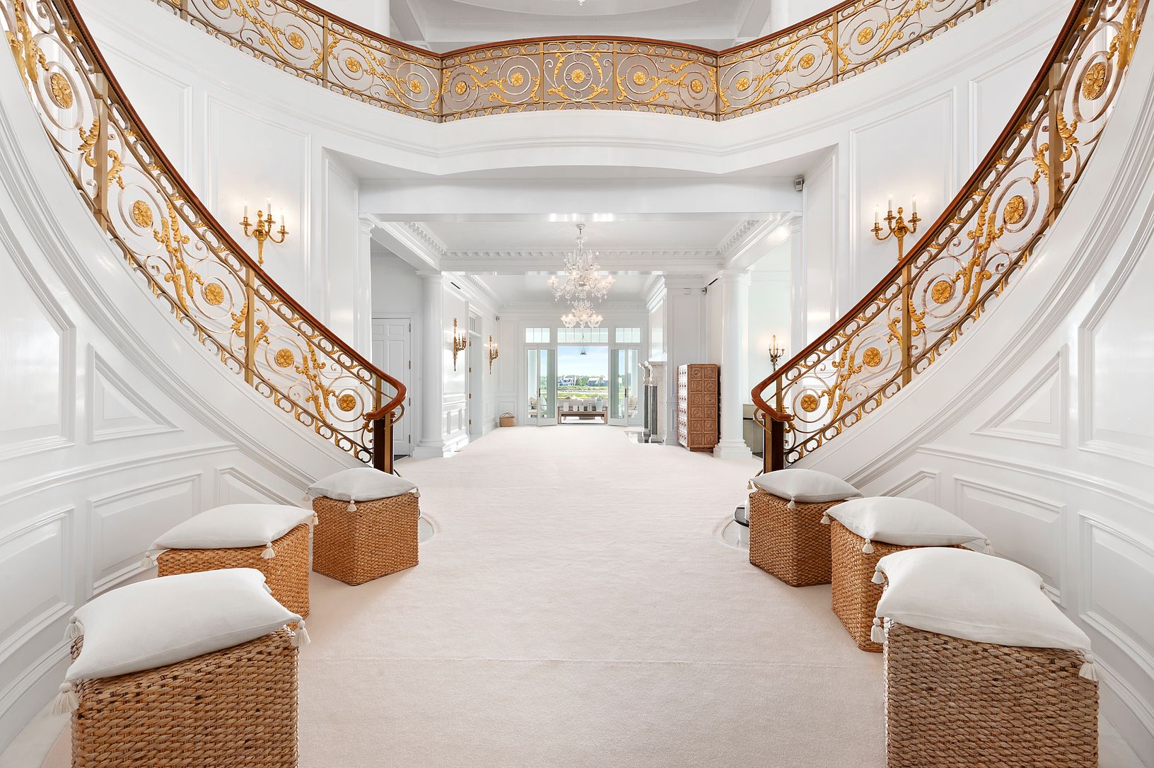 The pinnacle in luxury, this one-of-a-kind world class waterfront estate boasts over 4 acres and 300 plus feet of water frontage on Mecox Bay, complete with a private dock. The custom-made 8-bedroom, 10.5-bath masterpiece blends Old World elegance and grandeur with the latest amenities. Interior highlights include the grand rotunda with a cast bronze double-sided staircase and a 19th century stained-glass skylight, professionally designed kitc