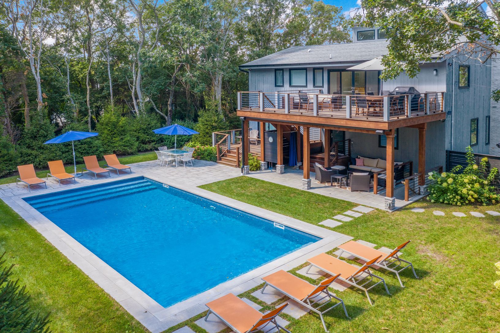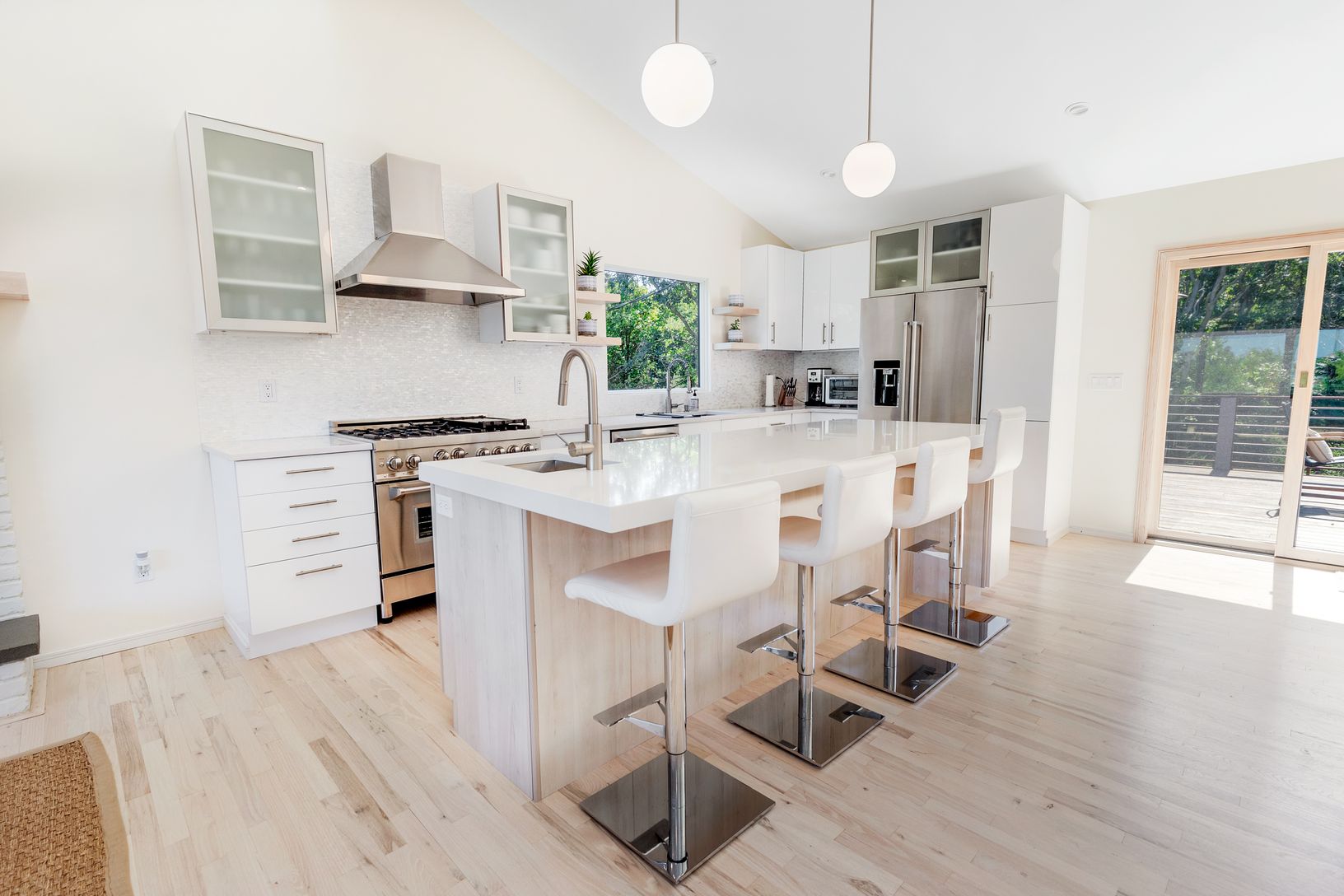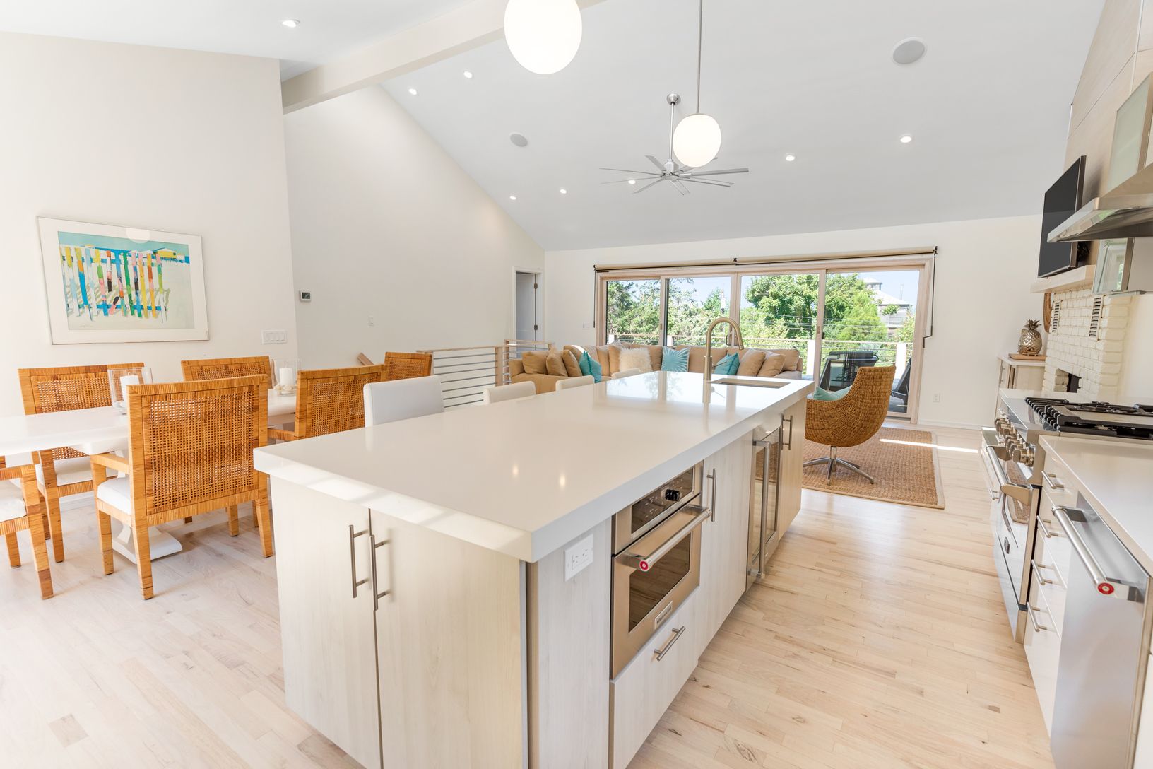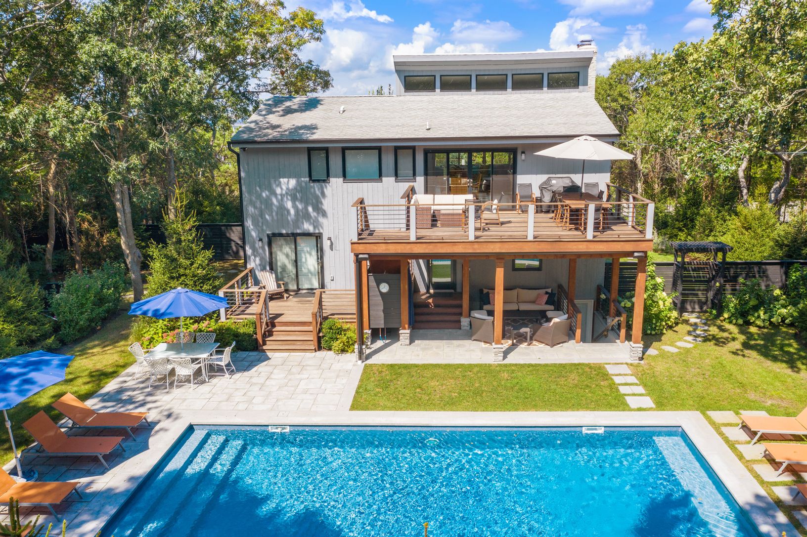 New 3000 sf three level modern has it all! The totally expanded and renovated home on highly desired Kings Point Road features a spacious open plan upper level including a fabulous vista lookout from the expansive front deck facing Gardiner's Bay. Upper level features include open living, dining, and kitchen space with cathedral ceilings and amazing light throughout with large sliding glass doors opening to dining and lounge decks on both side