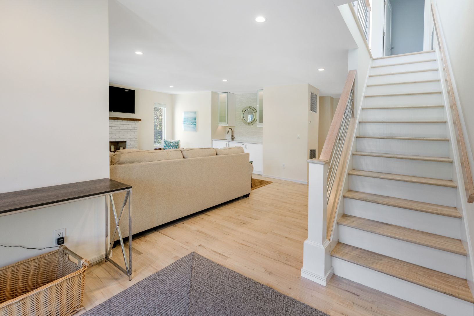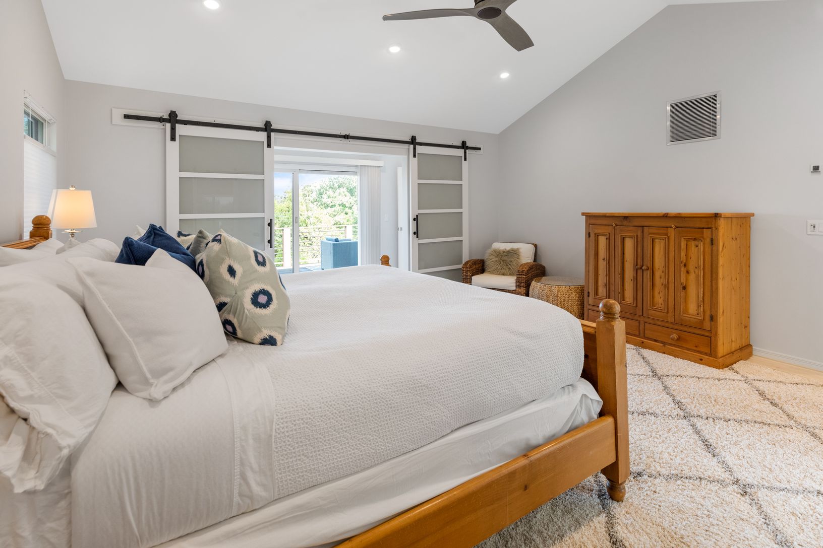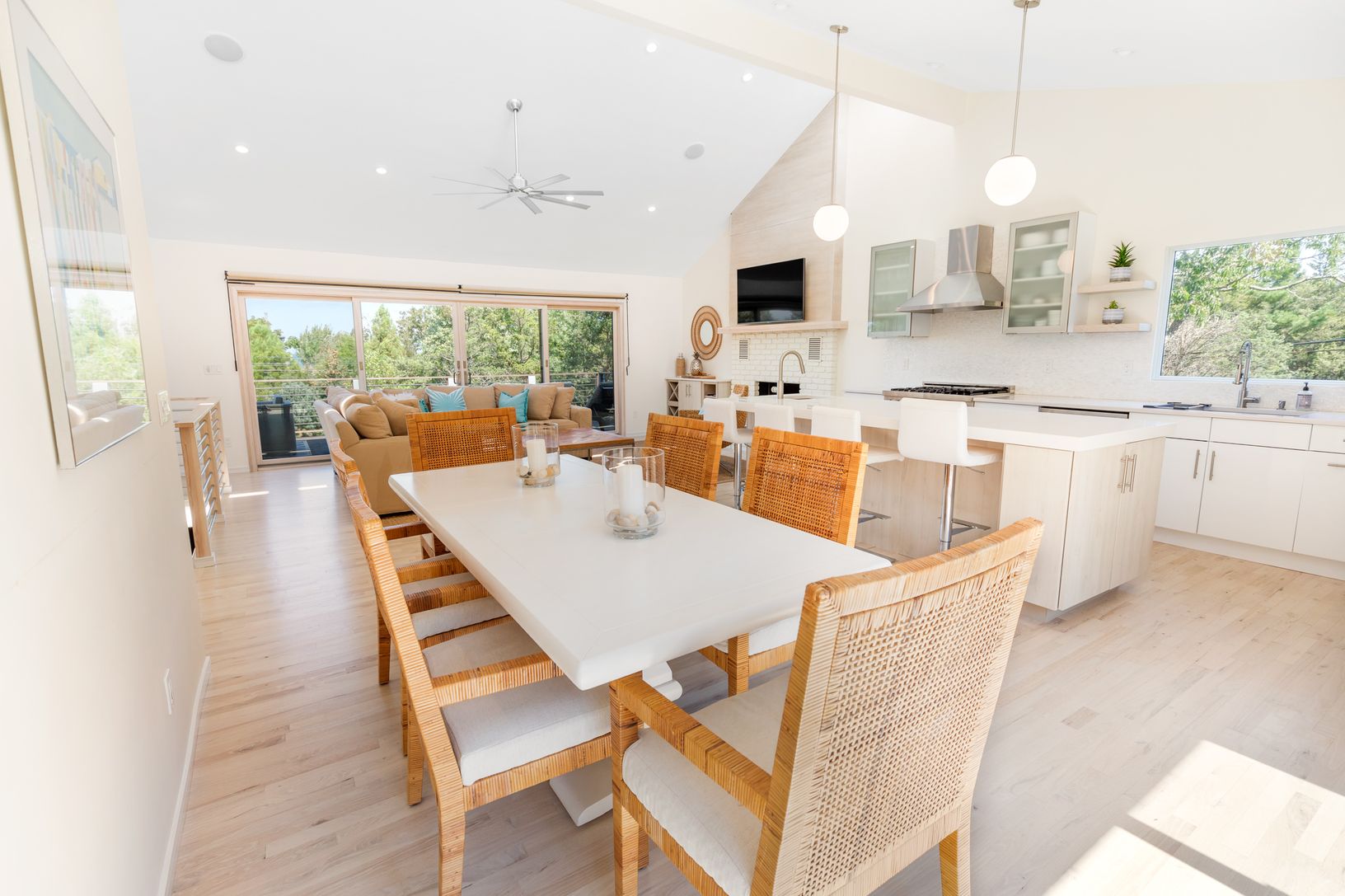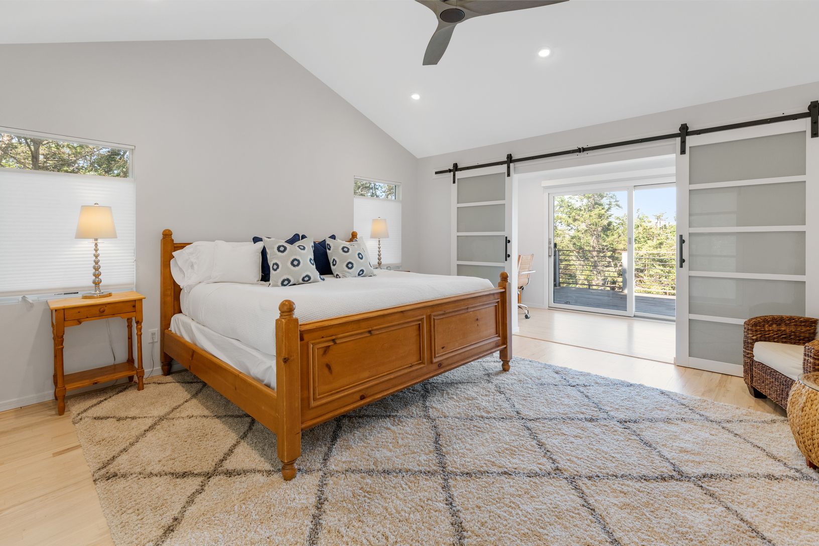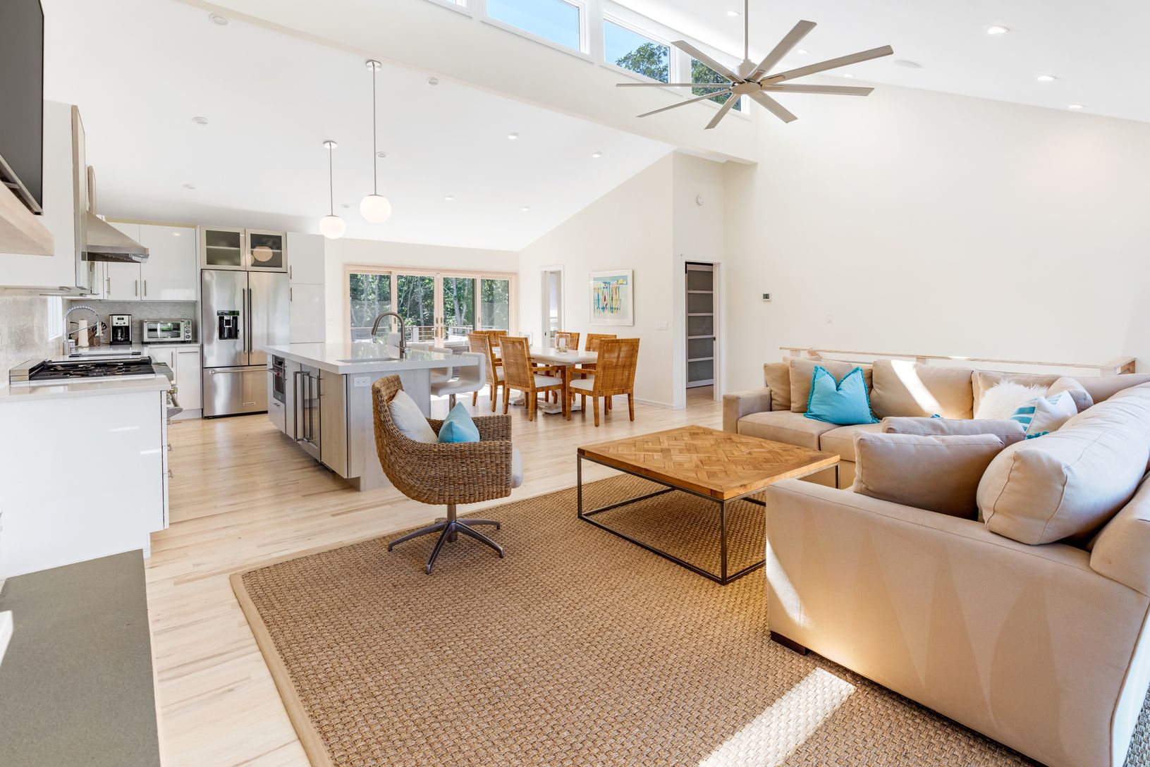 New 3000 sf three level modern has it all! The totally expanded and renovated home on highly desired Kings Point Road features a spacious open plan upper level including a fabulous vista lookout from the expansive front deck facing Gardiner's Bay. Upper level features include open living, dining, and kitchen space with cathedral ceilings and amazing light throughout with large sliding glass doors opening to dining and lounge decks on both side