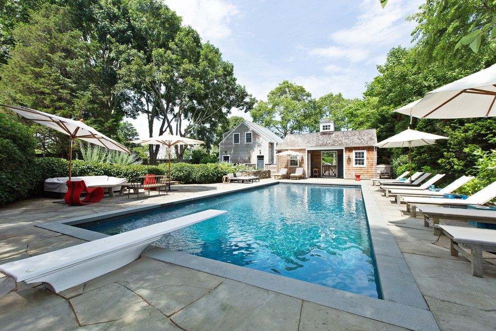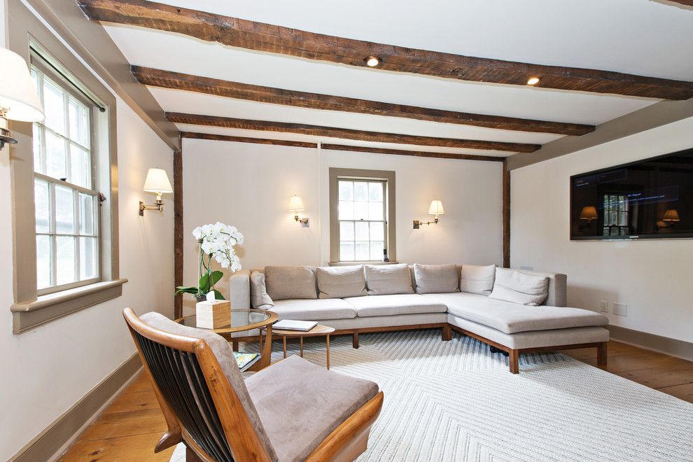 Hamptons Historic Published Chic compound with 5 bedrooms and 6 bathrooms with multiple living areas and eat-in kitchen renovated for modern living. Beautifully furnished with comfort and style, the main house sits on acre plus park like grounds with gardens and surrounding hedging for privacy. Separate pool house with full bath and entertainment lounge above two car garage with studio space, which is all new, next to heated gunite pool and