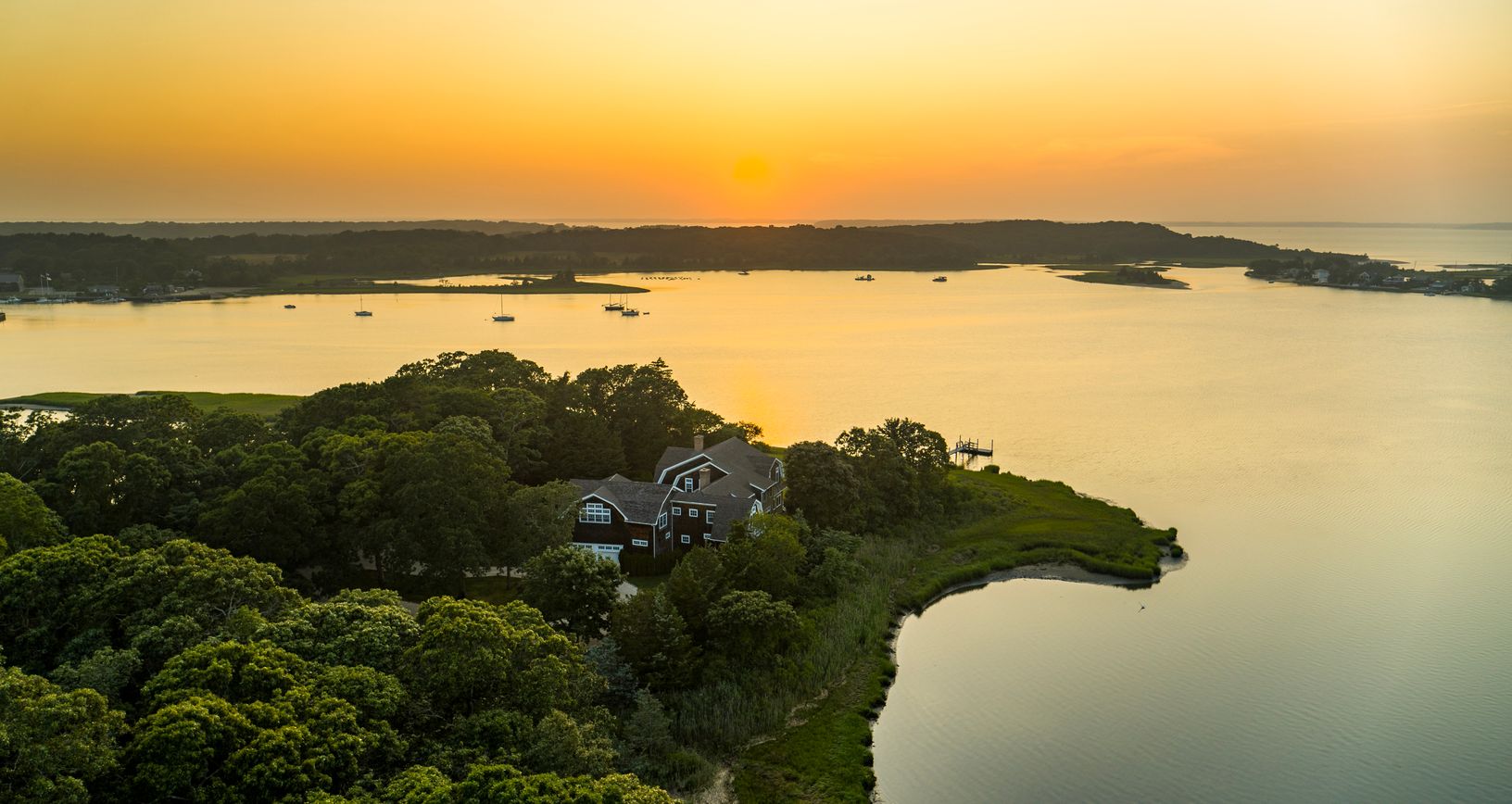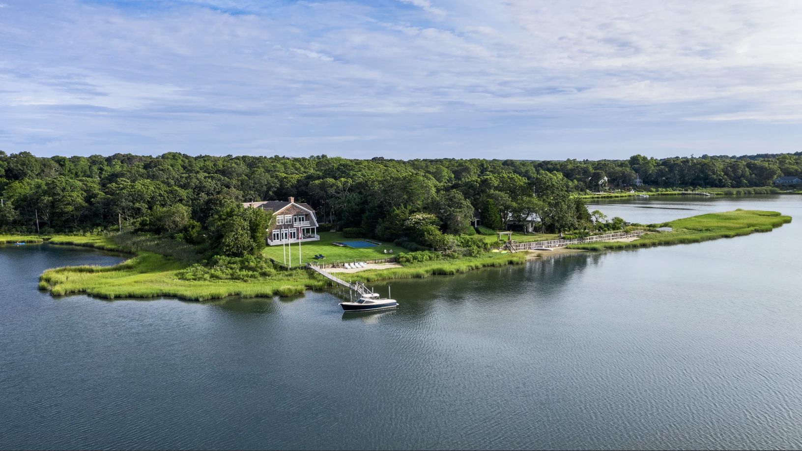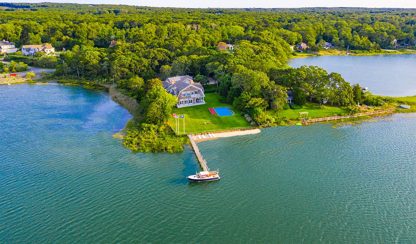 Come see this beautiful waterfront Southampton estate on almost 2 acres overlooking the calm, protected harbor and Peconic Bay, boasting an 85' private dock for 3 boats, a heated 20' x 40' gunite waterside pool, a private white sand beach, and glorious sunsets. The house stands majestically tall with 5 bedroom suites and 6.5 bathrooms spanning 6,140 sq. ft. of pristine interior space saturated with natural light expands to 8,900sq. ft. with de