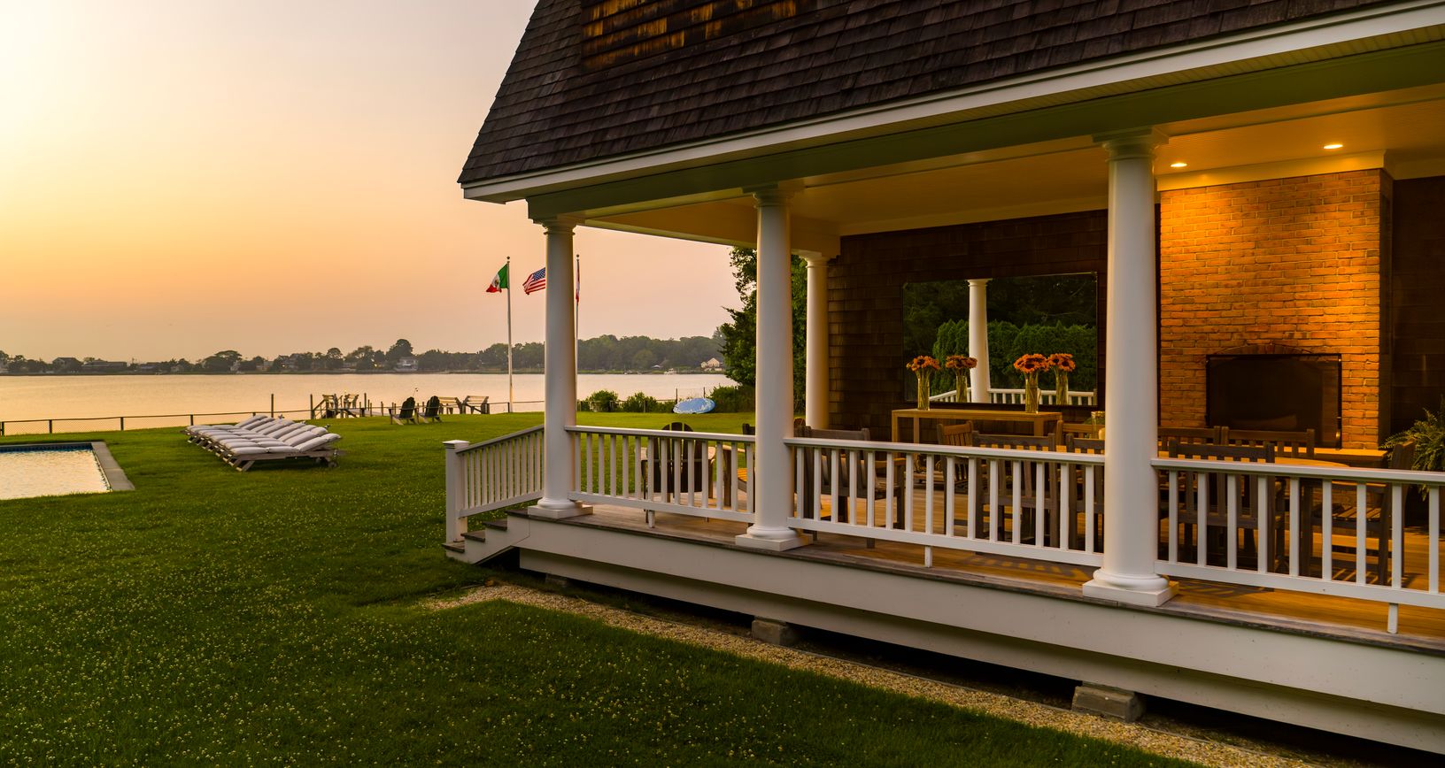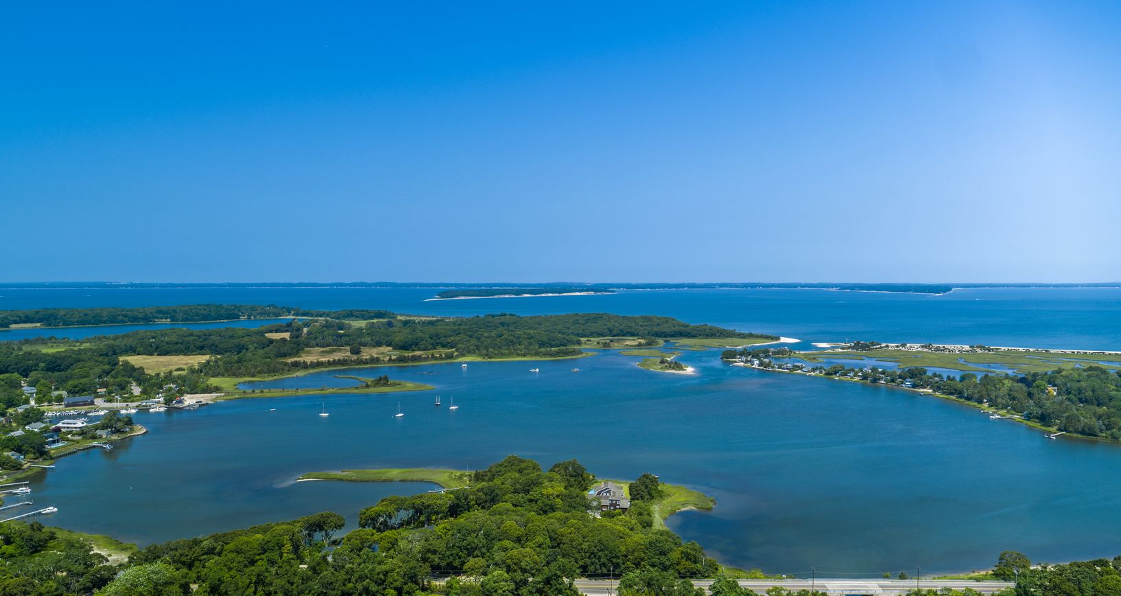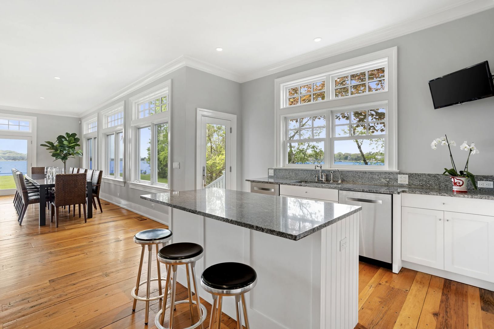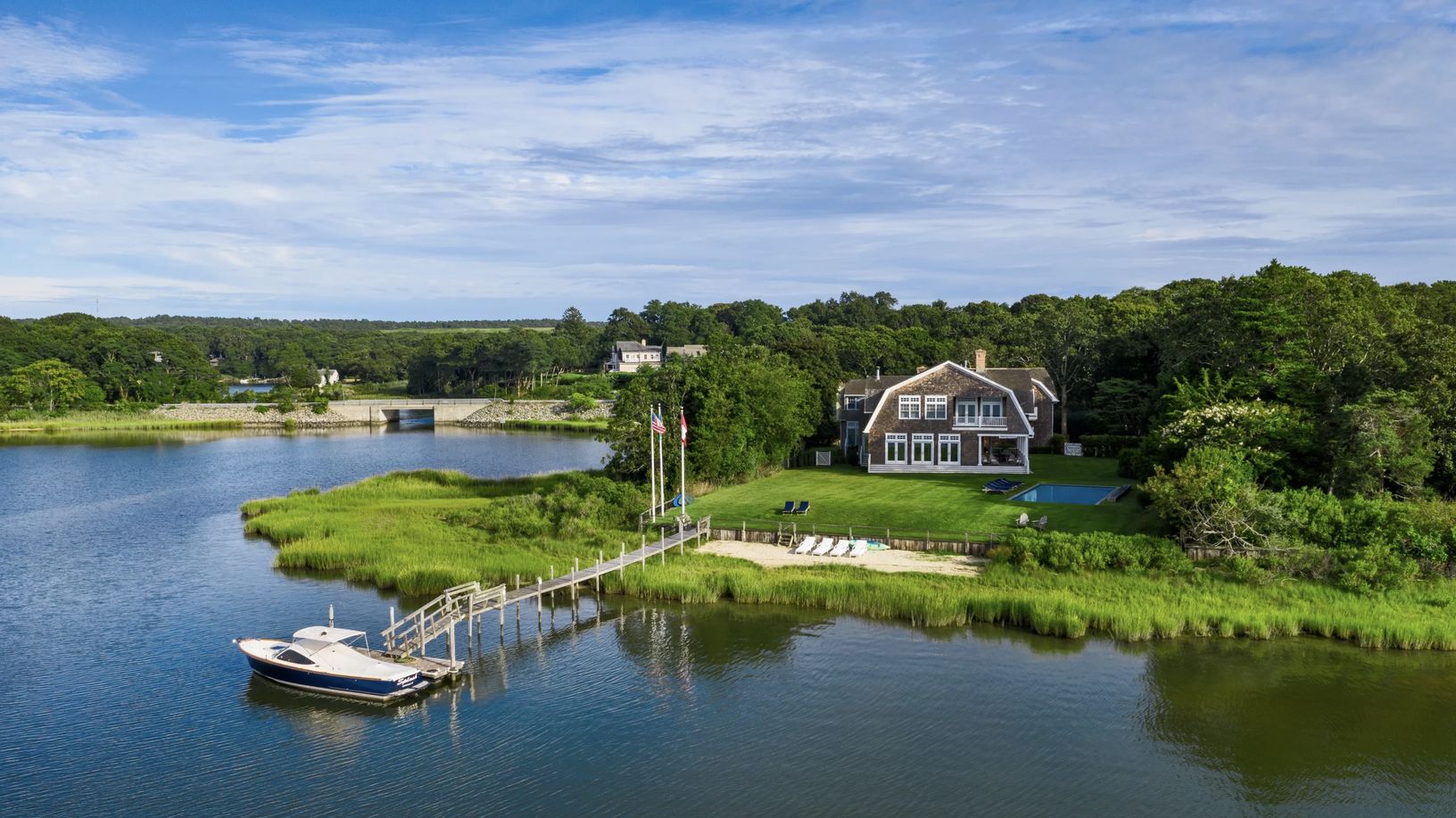 Come see this beautiful waterfront Southampton estate on almost 2 acres overlooking the calm, protected harbor and Peconic Bay, boasting an 85' private dock for 3 boats, a heated 20' x 40' gunite waterside pool, a private white sand beach, and glorious sunsets. The house stands majestically tall with 5 bedroom suites and 6.5 bathrooms spanning 6,140 sq. ft. of pristine interior space saturated with natural light expands to 8,900sq. ft. with de