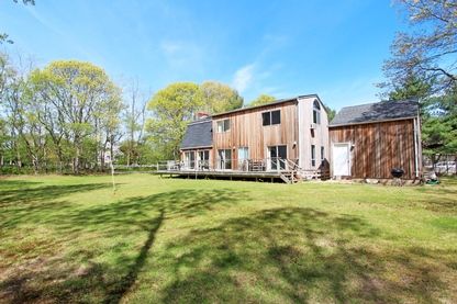 Minutes from Bridgehampton town and ocean beaches, this 3-bedroom contemporary barn is available for an August rental.