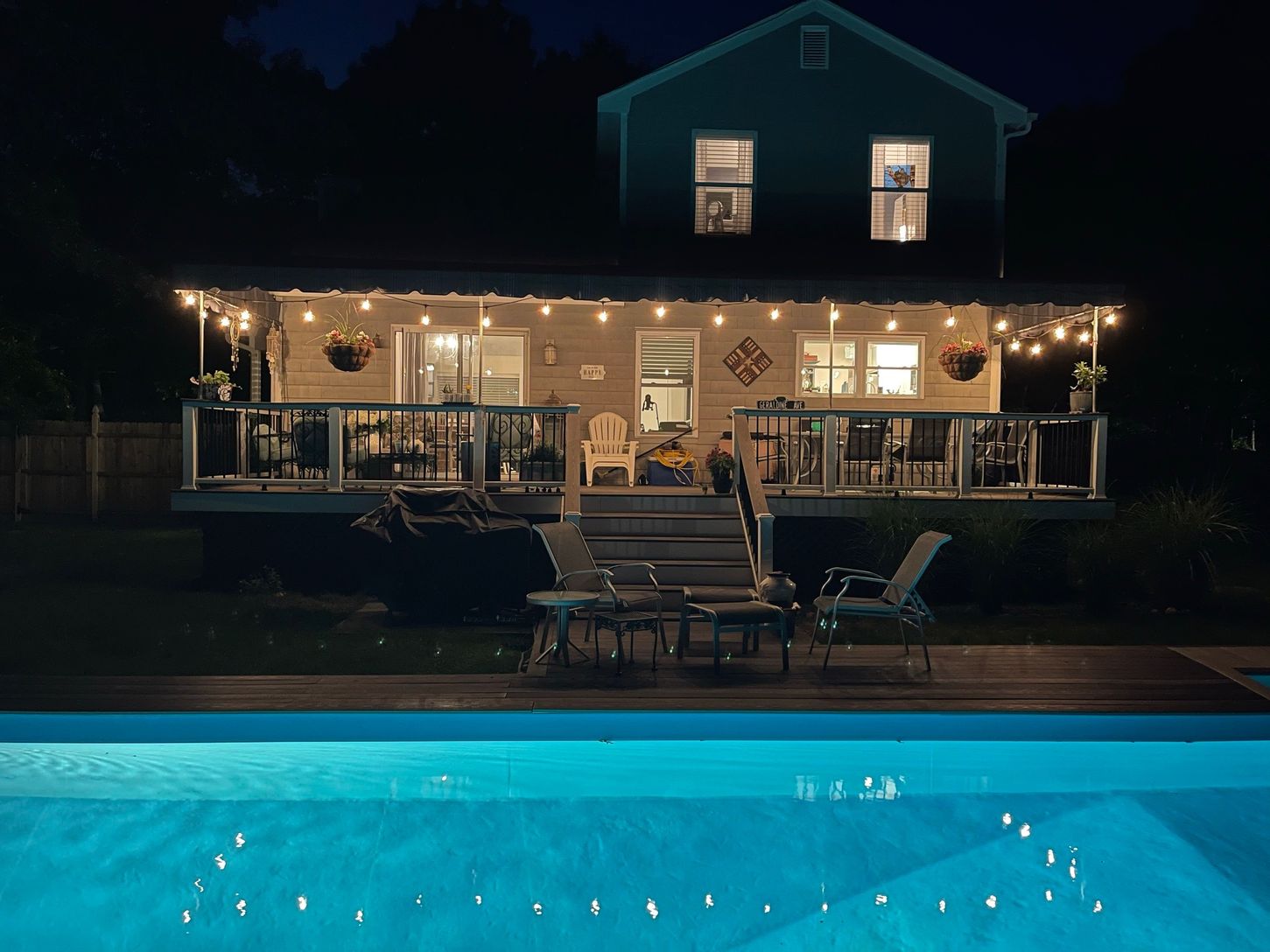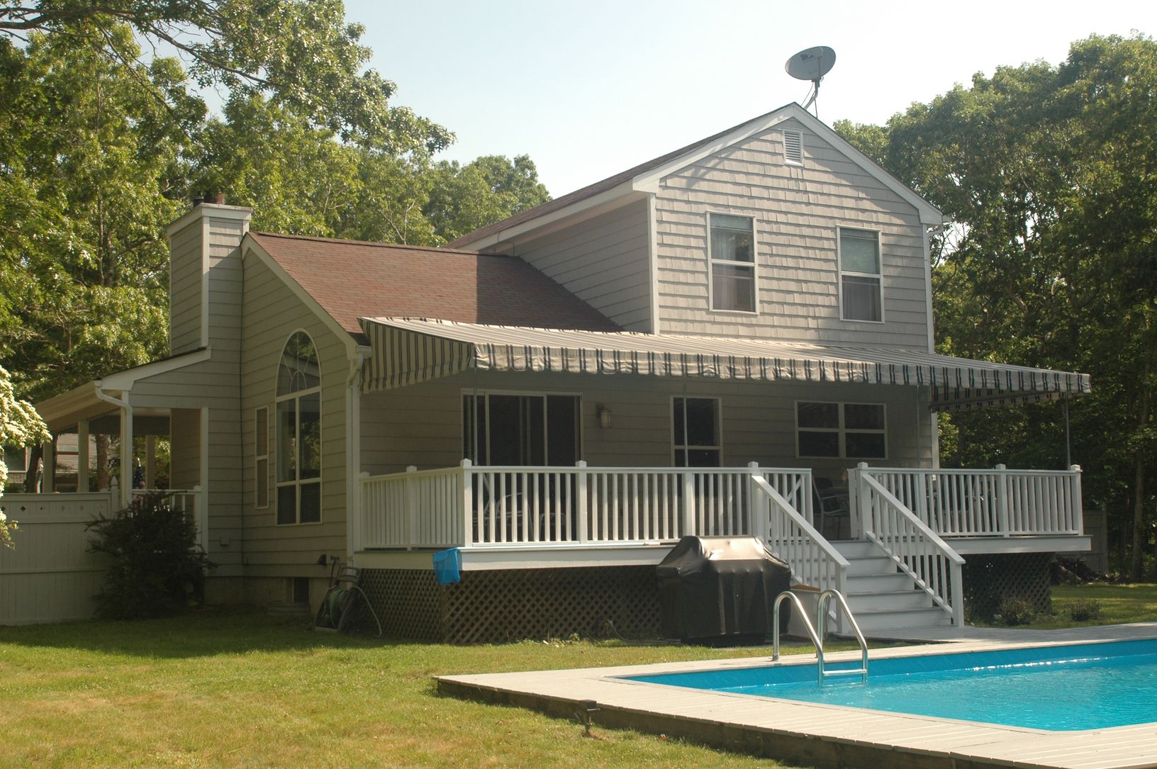 Just outside the village at 32 Atlantic Street, East Hampton is this totally renovated 3 bedroom 2.5 bathroom traditional home with covered front and back porches, heated pool, Trex decking and outside shower. The home is complete with central air conditioning, full finished basement, walk-in cedar closet, and many upgrades. The back porch is 30 ft. long and covered with an awning, perfect for summer entertaining. New boiler and water pump 202