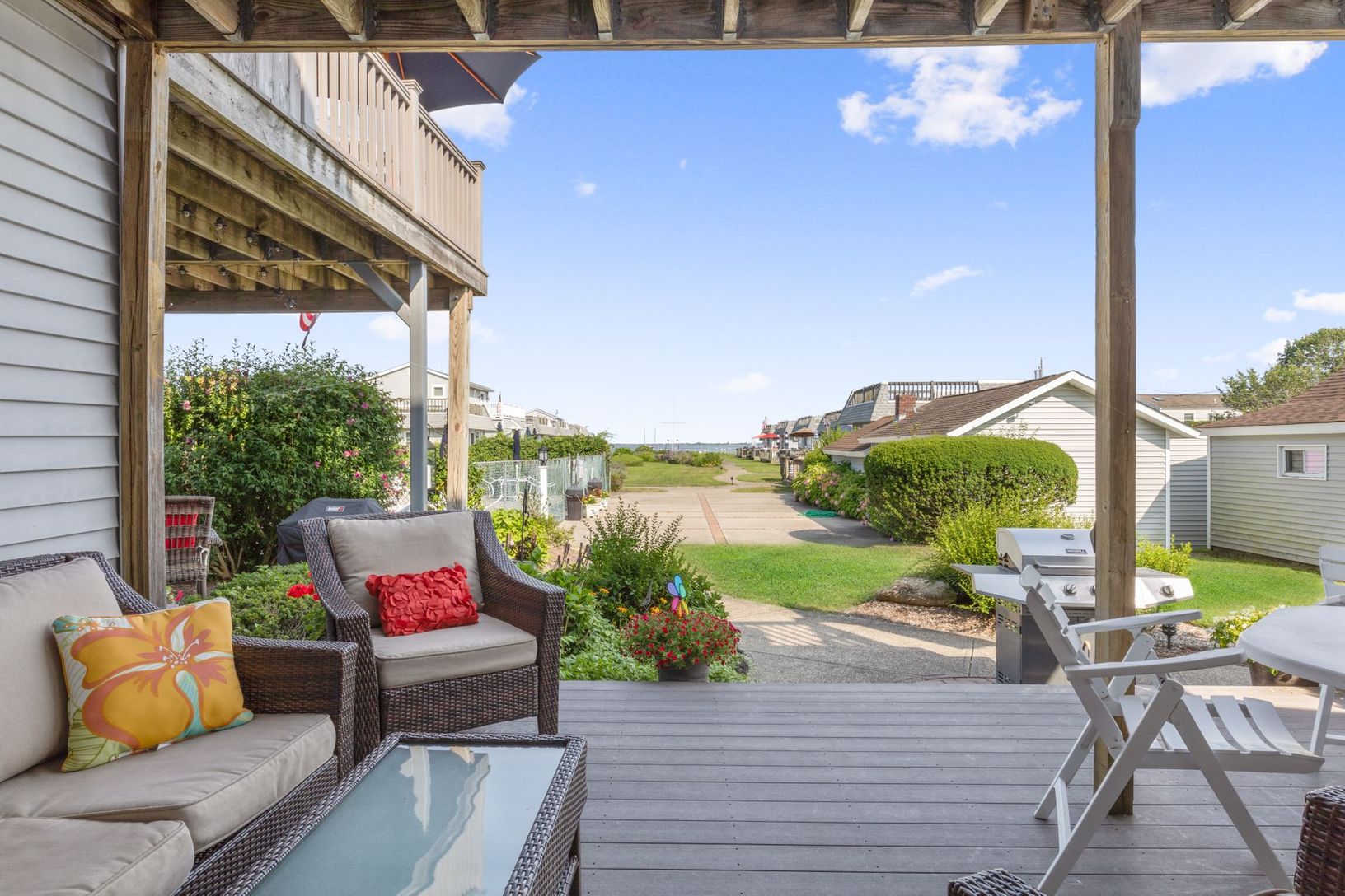 First time on the market in 30 years. Completely renovated Condo in the sought after Bay Point Condo Complex. Featuring 2 over sized bedrooms, 1.5 full baths, a well appointed living area,180 degree water views from the large deck, and tons of storage space. This unit also comes with a boat slip. Enjoy the carefree Hamptons Life. Beautifully maintained grounds, pool, dock, private beach. Just one block from the Jitney and E. Quogue's main str