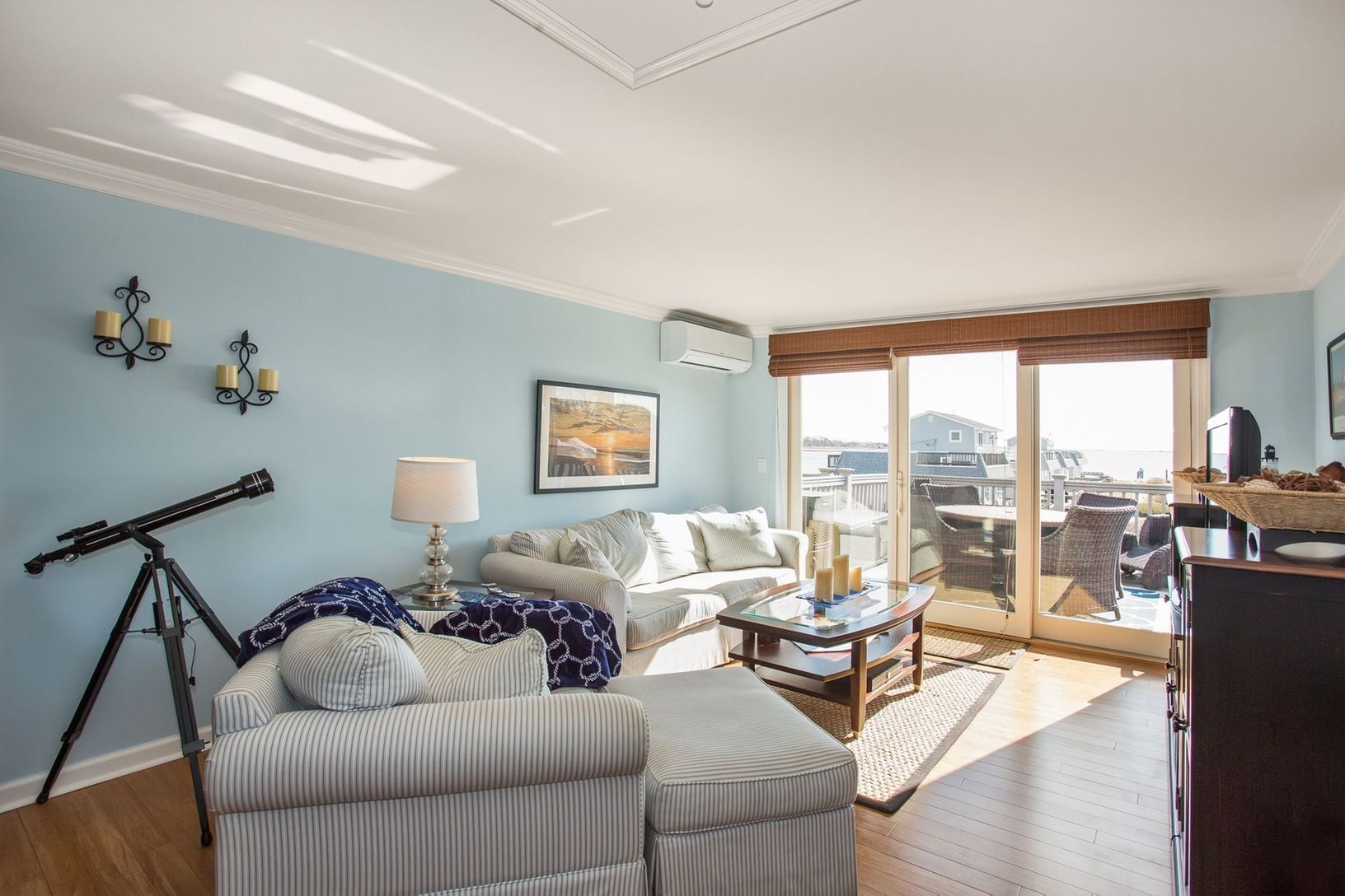 Completely renovated 2 bedroom, 2 bath condo with 180 degree water views. Oversized deck looking out at Dune Rd. First floor patio looking out at the Gunite pool, boat slip, private beach. Close to Jitney and town. Hamptons living at its best.