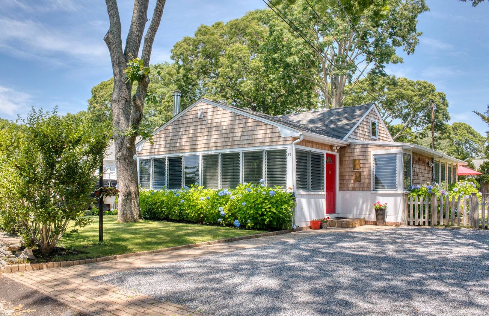 This Pine Neck beach cottage is ideally located moments from Sag Harbor Village. The home offers two bedrooms and two baths, a sun-filled living room with a wood-burning fireplace, and a comfortable patio and outdoor entertaining space. The backyard provides ample lawn space along with an outdoor shower, ideal after a day at the beach or for relaxed evenings dining al fresco. Enjoy convenient access to Circle Beach, Long Beach, and all that th
