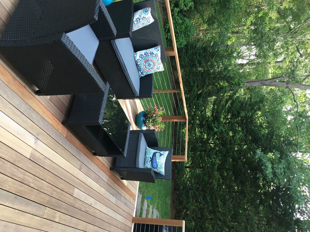 Close to the 2018 US Golf Opening and bay beach, Wonderful, bright comfortable 1,900 square foot traditional built in 2006. Two bedrooms with Queen beds and One with a full bed. Two full modern bathrooms, and one-half bath. Dining area and Den. Rear Deck with an outdoor table for 8 for al Fresco in a private secluded yard. Well stocked cook's kitchen with Stainless steel appliances, central air conditioning, Wi-Fi, beach chairs, bicycles inclu