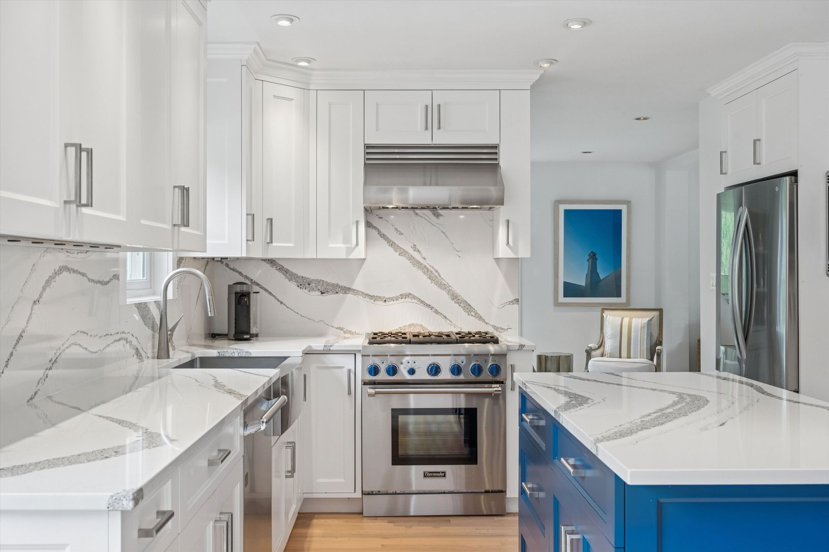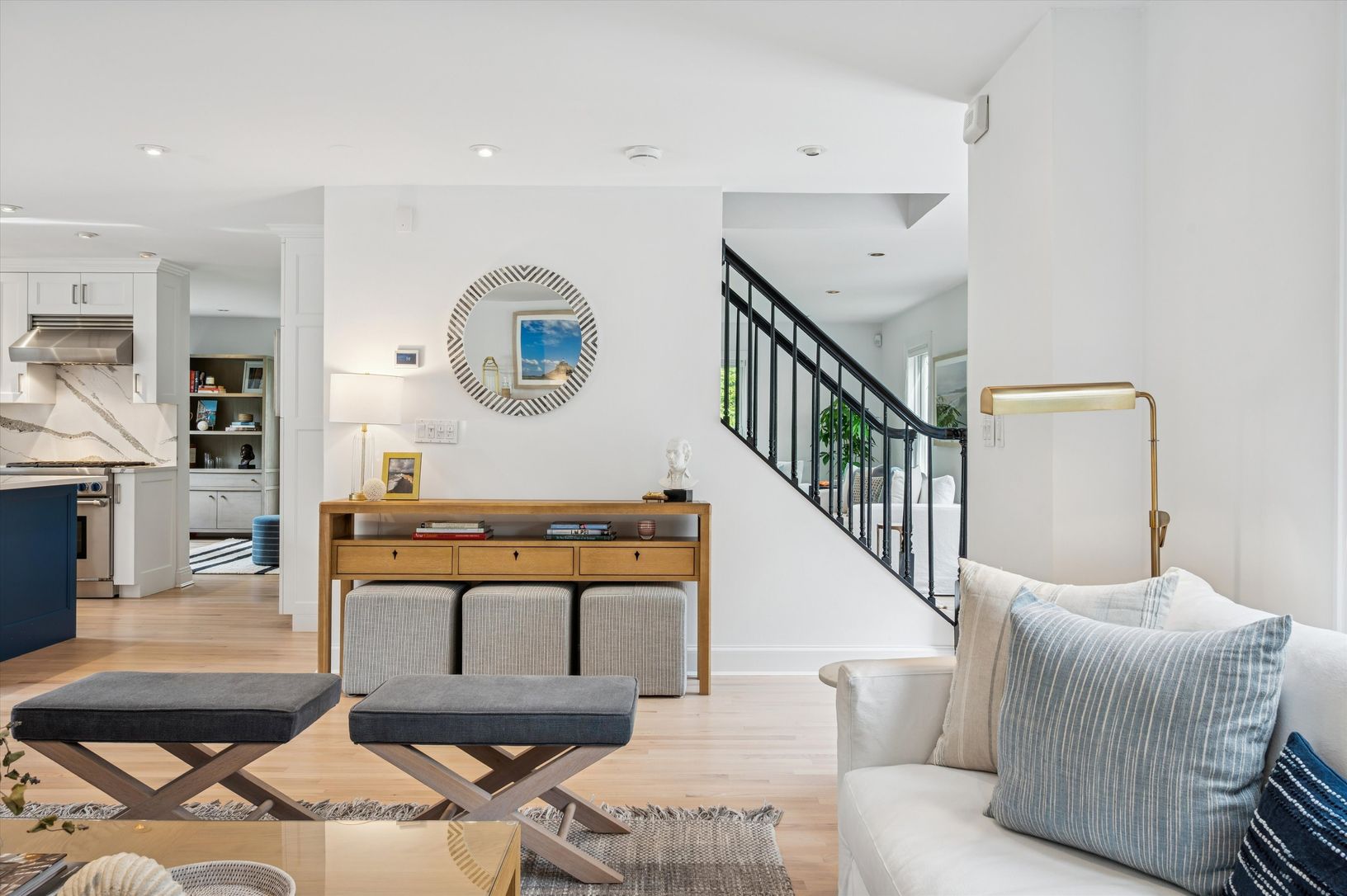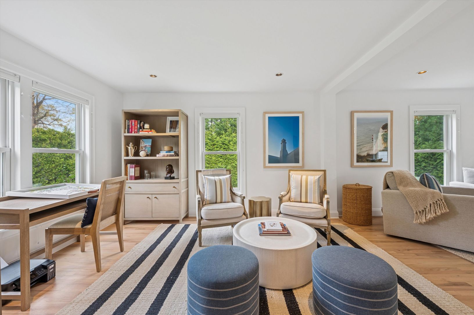 This light-filled home on a secluded half-acre lot in the Village of Sag Harbor has been transformed by a professional, designer-led reimagining. A short walk to town and Havens Beach, the home has newly redesigned interior and exterior spaces, guided by the designer’s focus on high-quality finishes, natural textures, and a calm, cohesive aesthetic that flows throughout the residence. The main level is defined by an expansive, open-concept lay