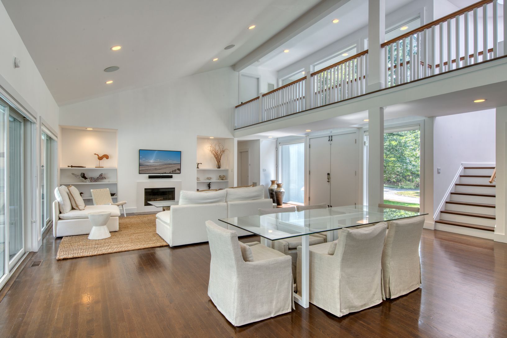 Set high on a hill and located just moments from a sandy beach and the heart of Sag Harbor, this light and bright home has it all. Just 1 mile to Long Beach and 8 minutes to Sag Harbor Village and all of its world-class restaurants, shops and entertainment. The proximity and privacy this home offers is really the best of both worlds. As you enter, you are greeted with cathedral ceilings and a spacious and open living room with fireplace and di