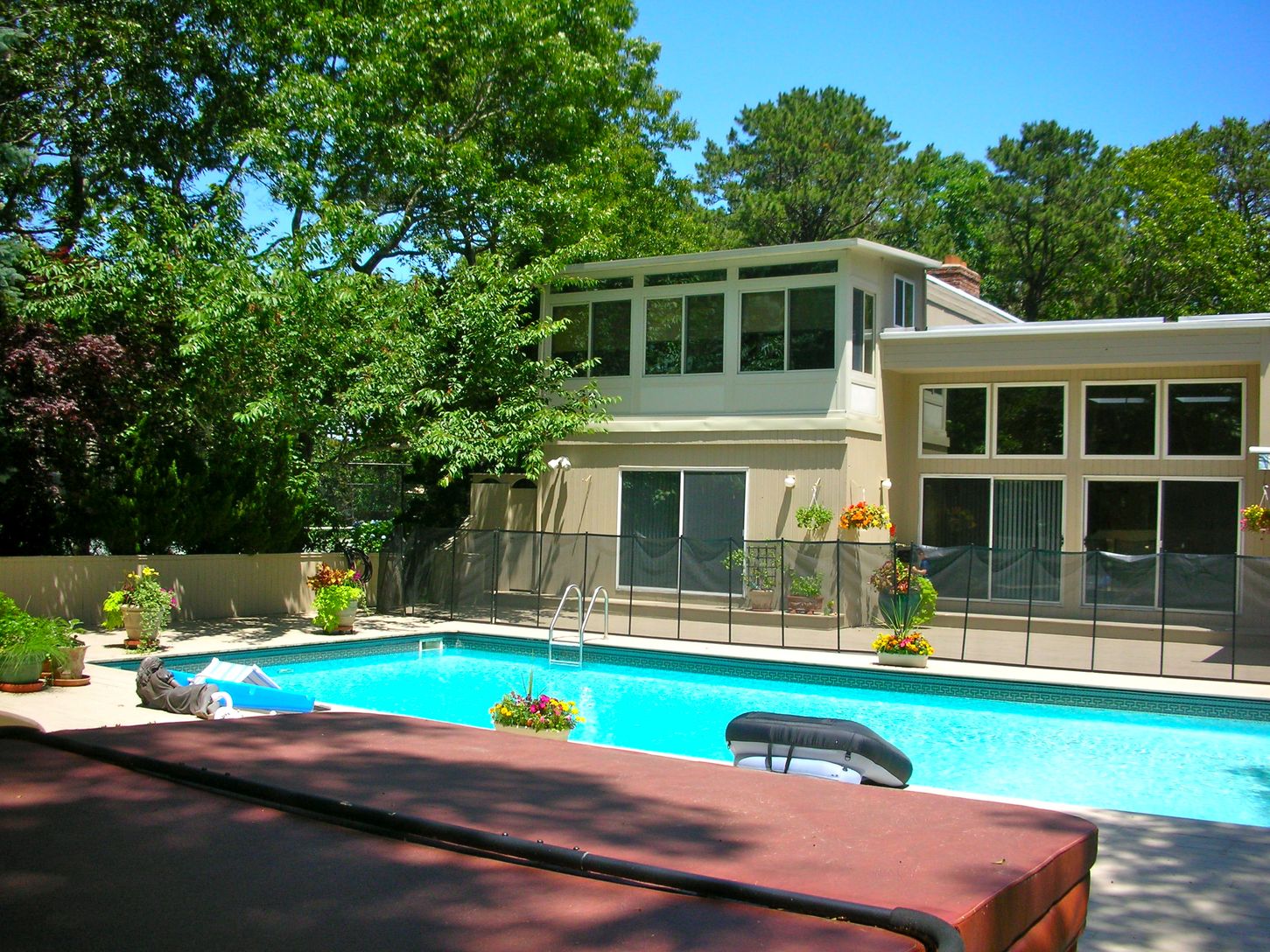 Grand Contemporary Offers 6 Bedroom/ 5-1/2 Baths. Lavish Open Floorplan Including Sunroom Overlooking and full finished downstairs. Large private Master Suite wing. A Lush And Private Backyard. Huge Deck Surrounds A Beautiful Pool, Har-Tru Tennis Ct. and A Separate Basketball Ct. All Set On Two Quiet And Tranquil Acres. This Is Hamptons Living At Its Best!