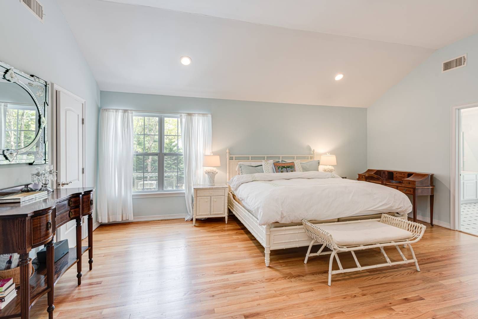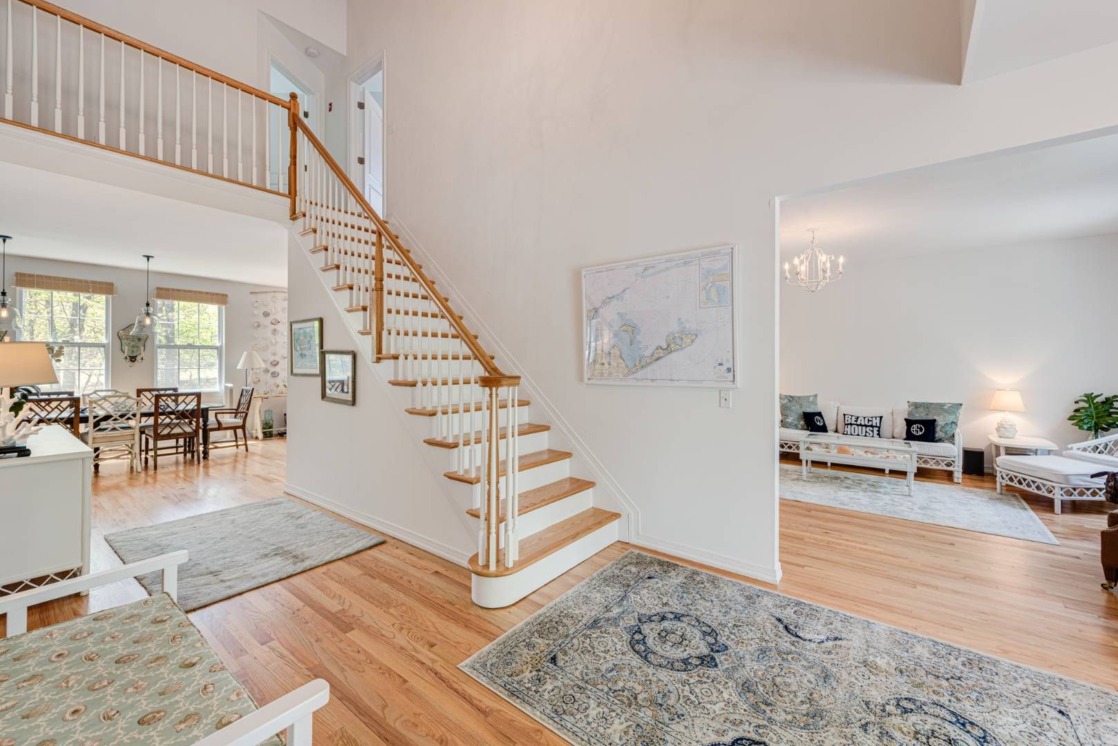 Located on half an acre on a quiet street just a few minutes to bay beaches and waterfront restaurants, this light-filled and impeccably maintained four bedroom, three bath home has it all. Enter a double height foyer to bright, immaculate living areas flowing from the living room to a family room with a wood-burning fireplace and glass doors to the backyard, a dining area and eat-in kitchen with stainless steel appliances including a wine co