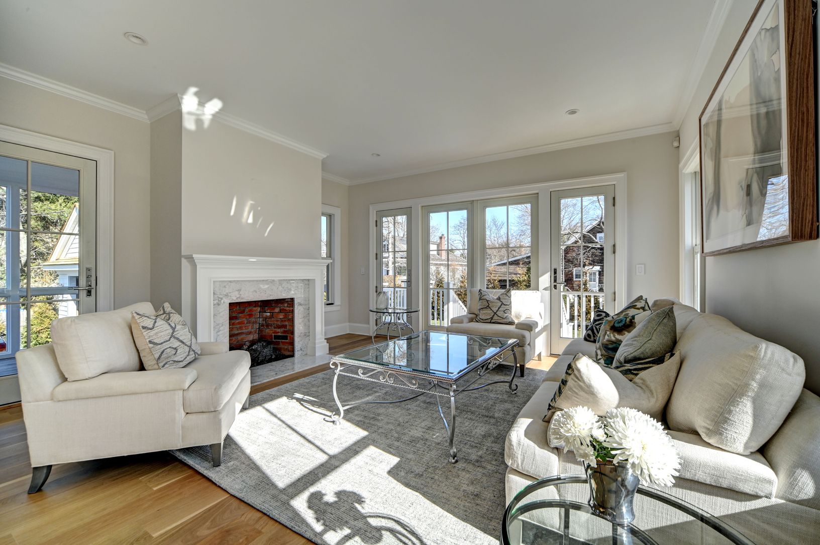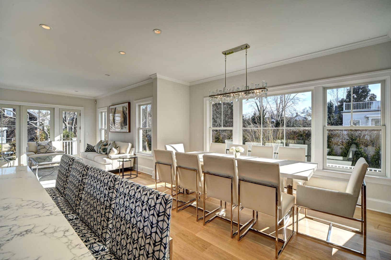 Summer 2023 will be your most memorable yet if you are nimble enough to rent this newly built home on highly desired Glover Street in Sag Harbor Village. With water views of Upper Sag Harbor Cove, this sundrenched retreat welcomes all over beautifully finished white oak floors to both intimate and open spaces that include a formal living room with fireplace that opens to the chef's kitchen with European appliances. A dining area with wine refr