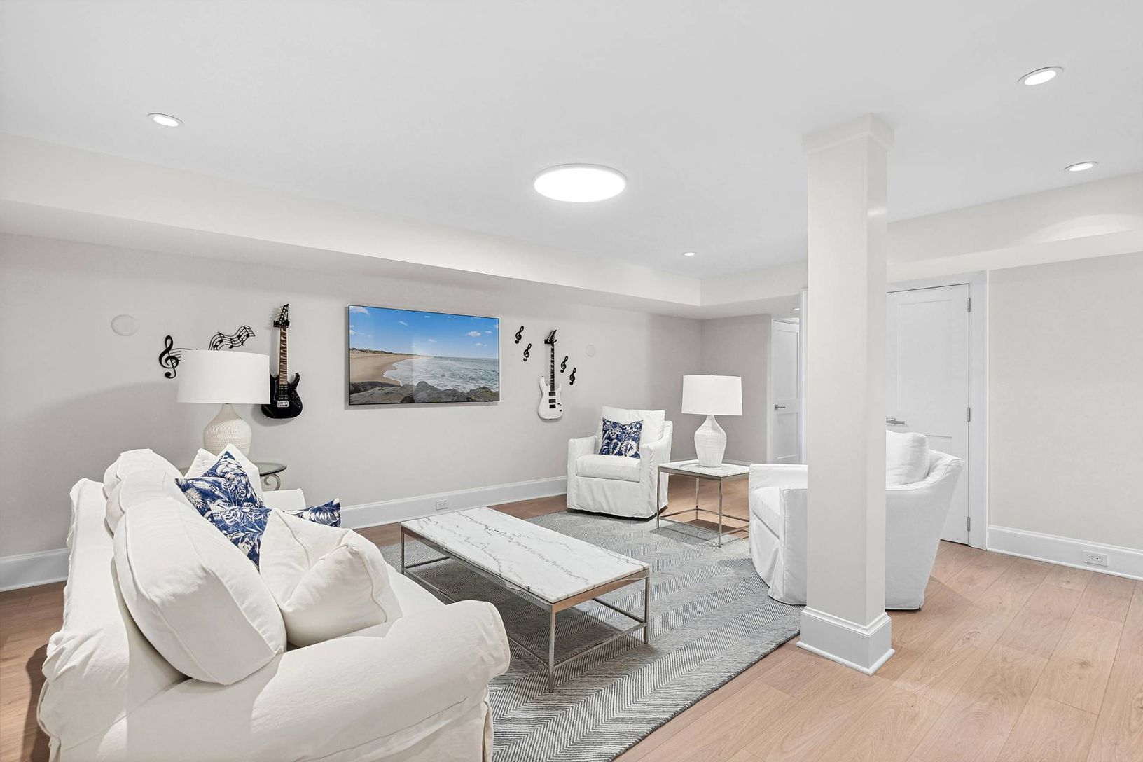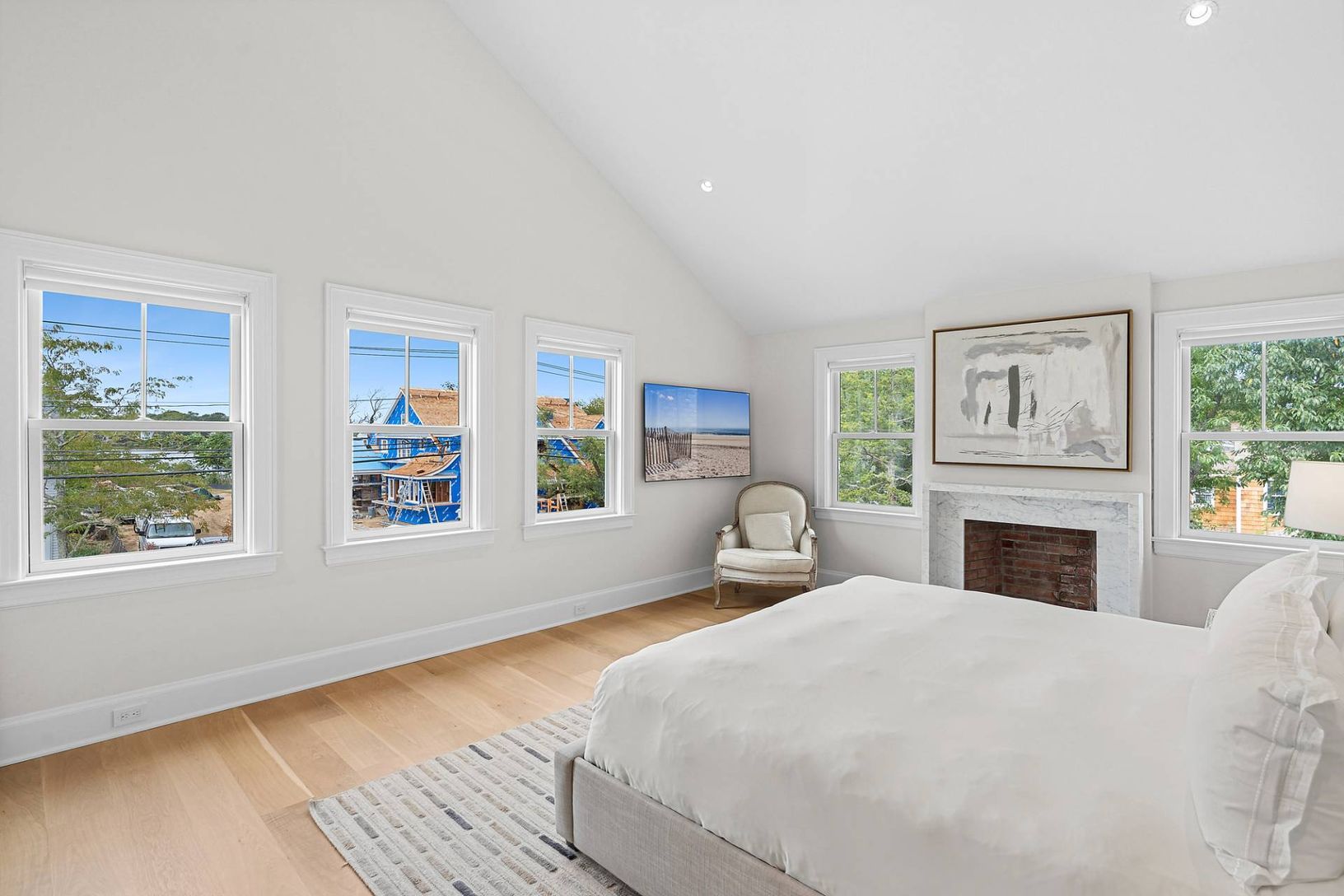 New construction, sited on .3 acres in Sag Harbor Village offers an attached guest cottage, 5 bedrooms, 5 full and 2 half baths, finished lower level, a detached garage, 4 fireplaces, and a heated gunite pool. Renovations include wide plank white oak hardwood floors, built-ins and recessed lighting. Premium appliances and marble center island with a formal dining room. There is a fireplace in the living room which has French door egress to the