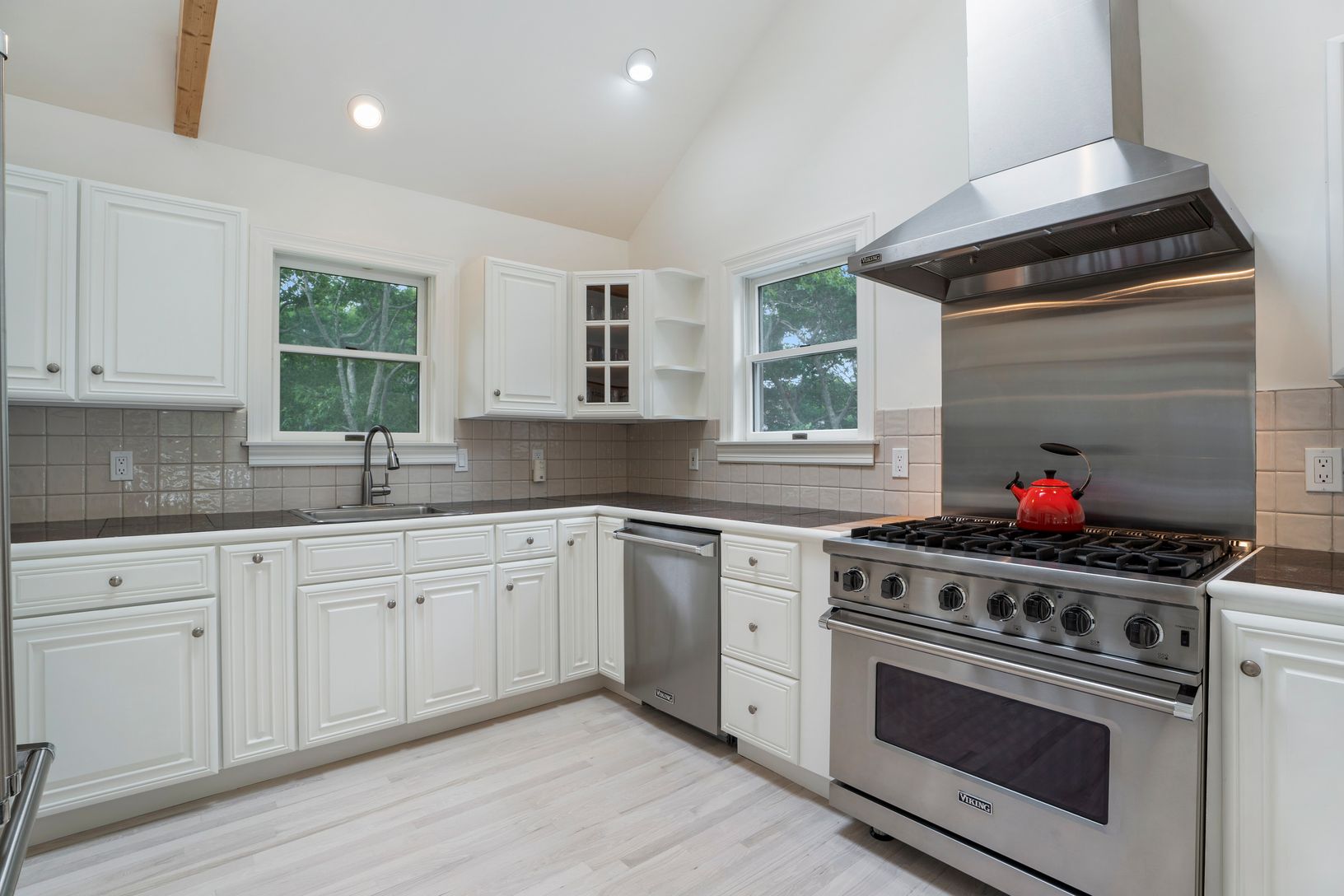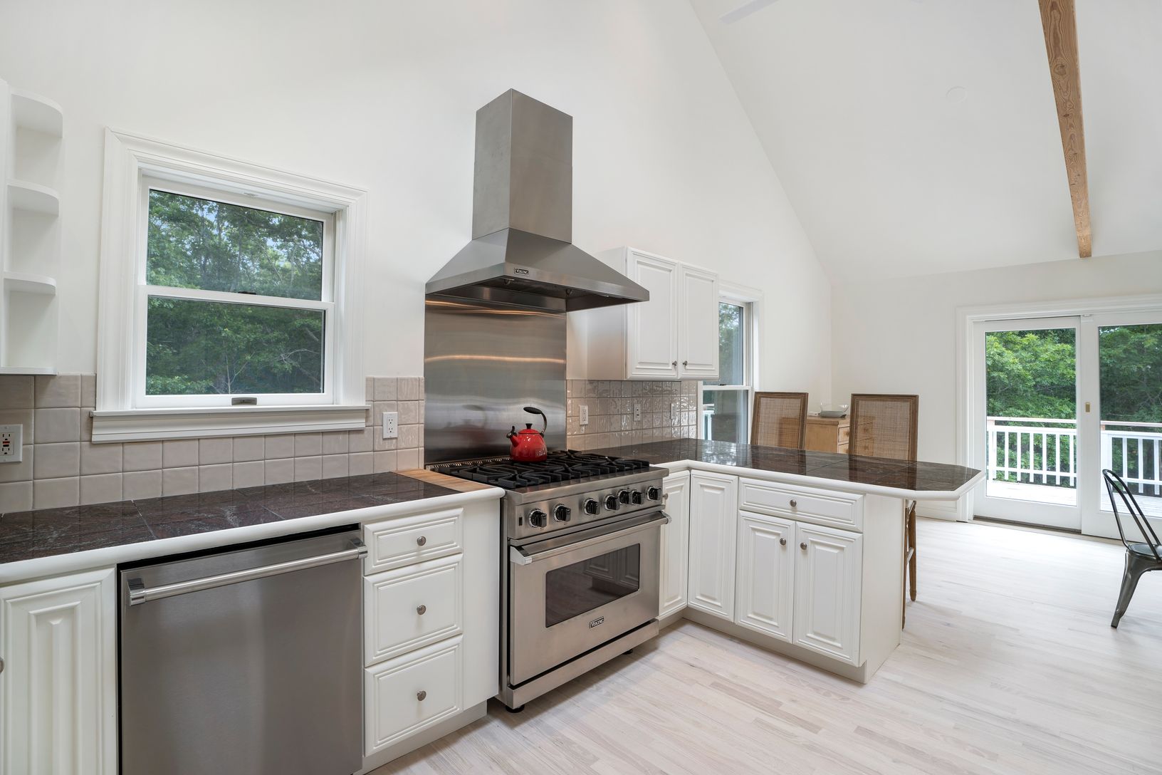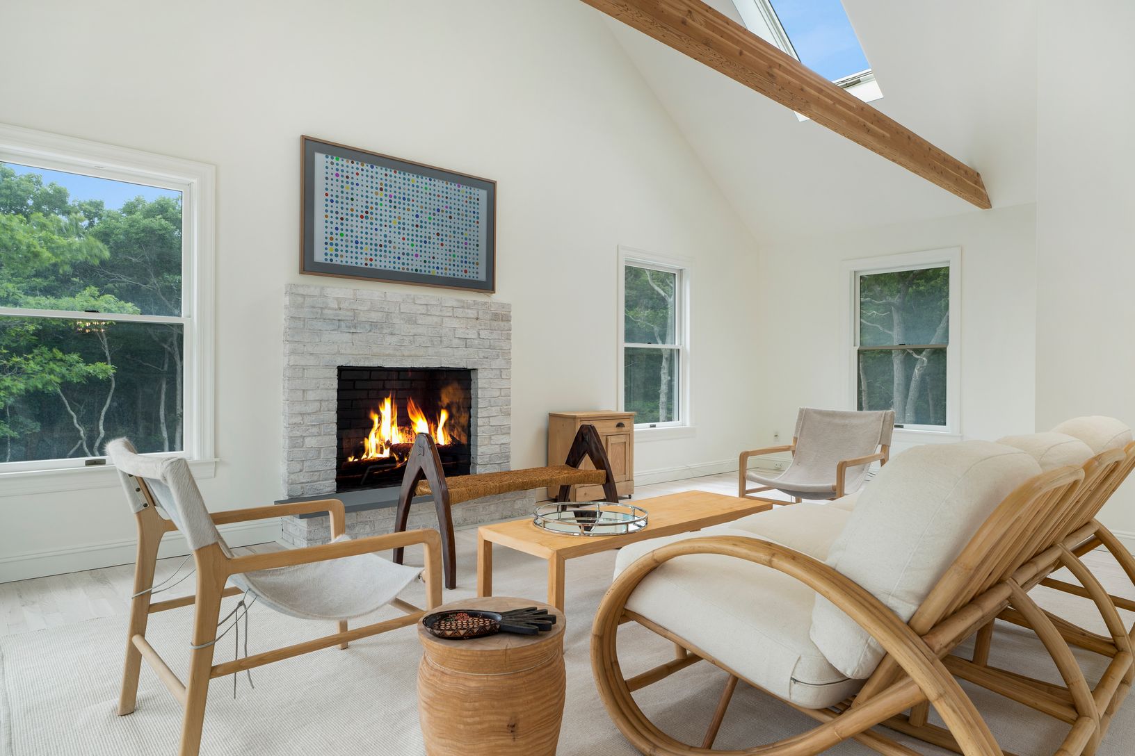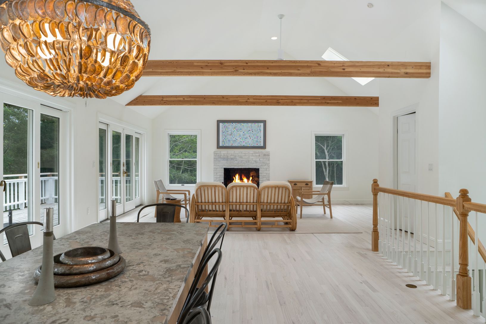 Now available for 2024! Just a short distance to Amagansett Main Street and both bay & ocean beaches, this newly renovated beach house is ready for summer occupants! This bright, freshly painted upside down house offers a vaulted second floor loft-like living room complete w/ fireplace, dining area and an adjacent open kitchen with stainless steel Viking appliances. This upper level opens on to a rear porch, perfect for outdoor entertaini