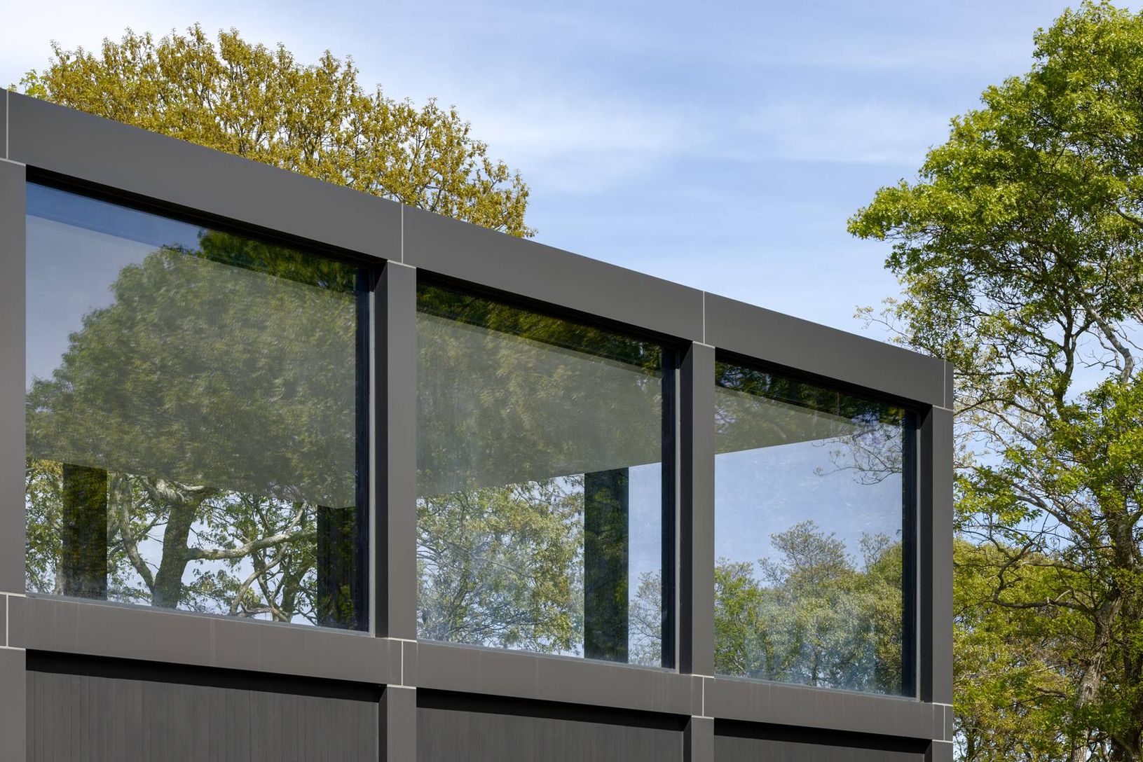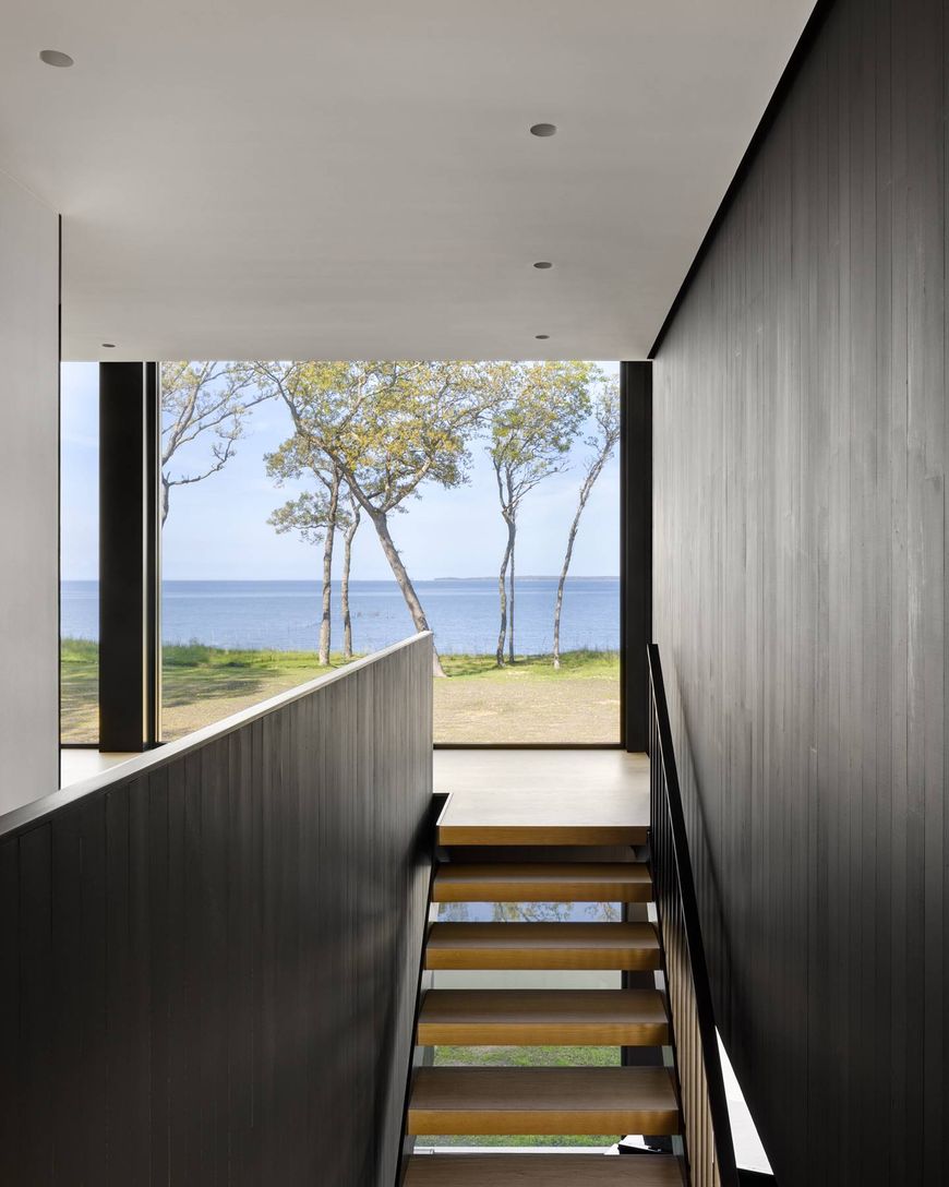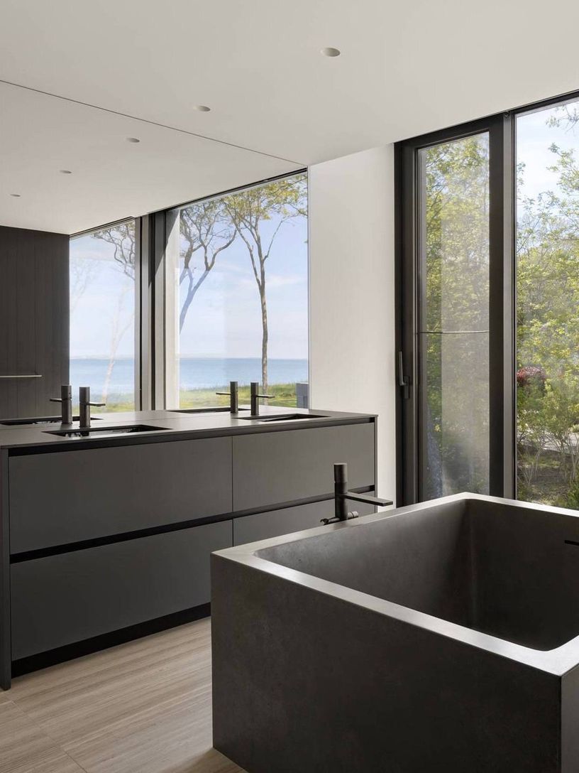 Perched dramatically above the bay on a private bluff, this 4500 sq. ft. glass-wrapped modern masterpiece designed by award-winning Worrell Yeung offers one of the most unforgettable vantage points in the Hamptons. With walls of floor-to-ceiling glass reflecting the surrounding trees and water, the home feels sculptural, iconic, and completely immersed in nature. Set on a rare 1.3 acre parcel overlooking Gardiner's Bay and with views to the No