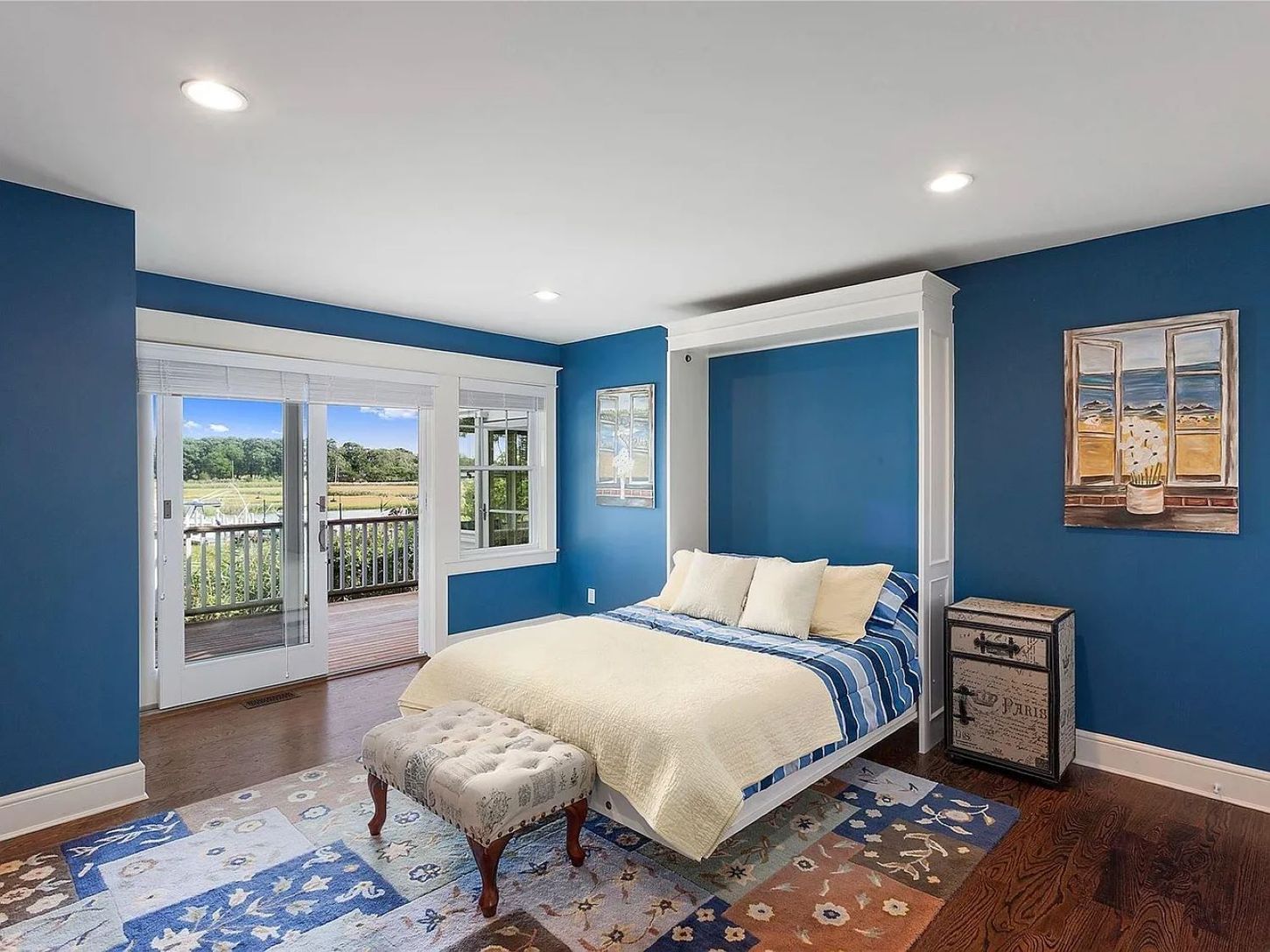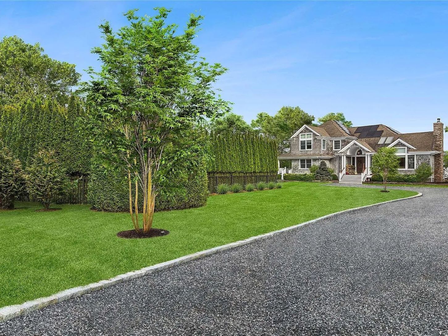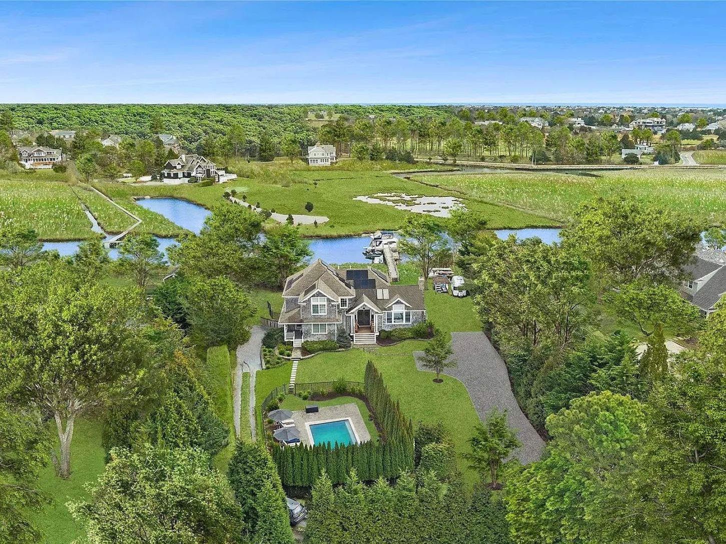 This exceptional 4-bedroom, 4-bath Post Modern residence offers the perfect blend of luxury, efficiency, and waterfront living—an ideal Hamptons escape. Completed in 2012, the home is equipped with geothermal heating and cooling, solar panels, and four Tesla Powerwalls, delivering both comfort and sustainability. Nearly every room enjoys serene water views, complemented by refined interior finishes throughout.