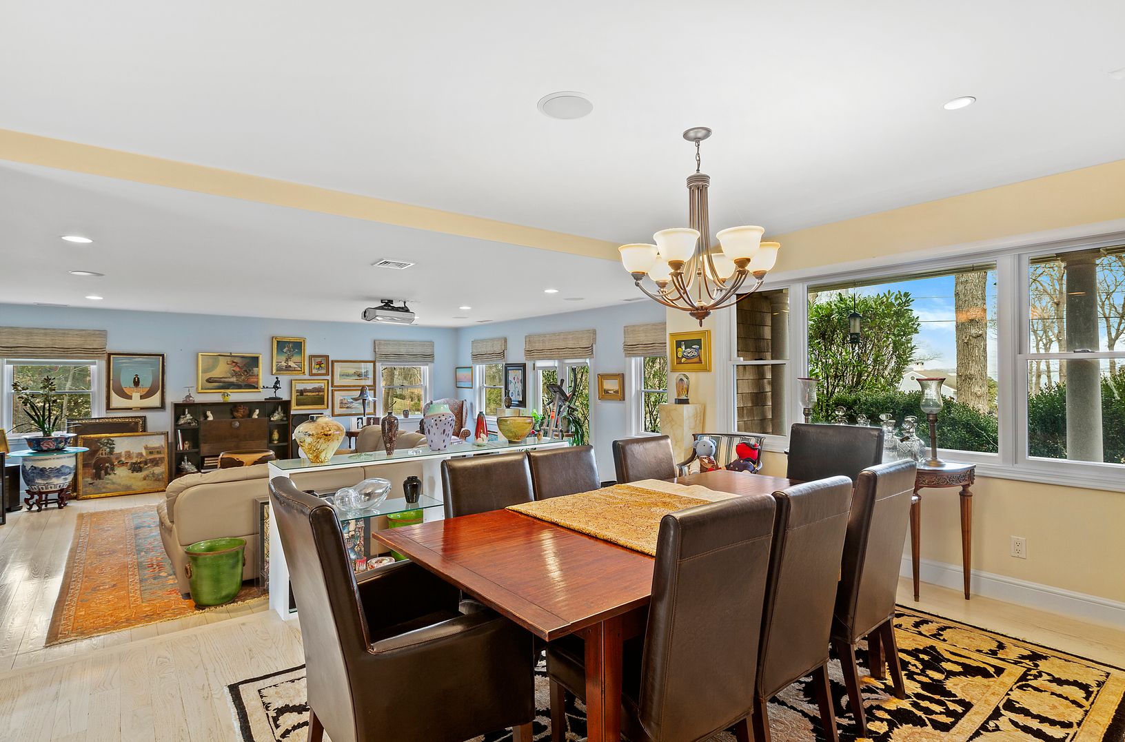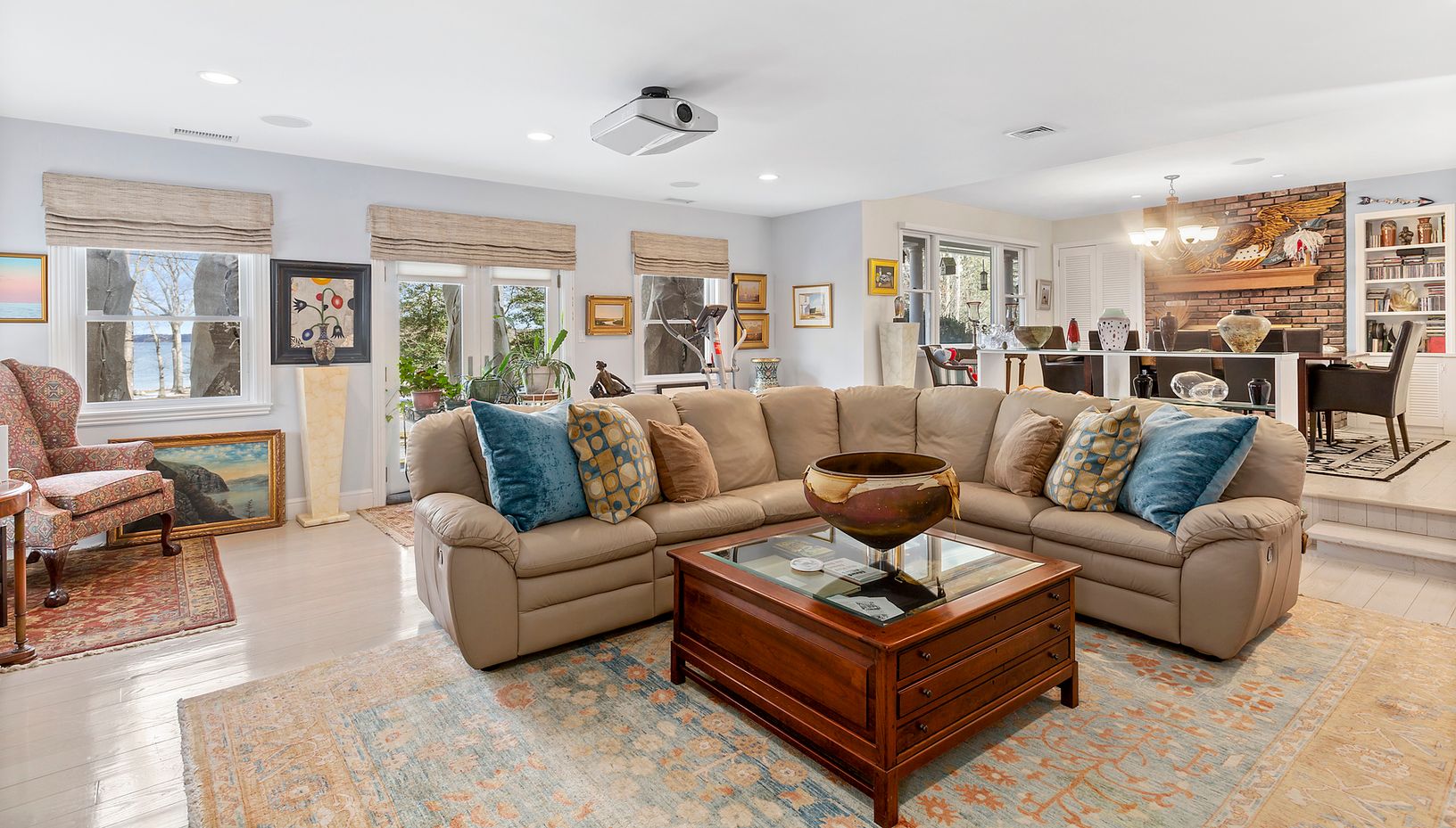 Located in the private waterfront community of North Haven Manor, this beautiful home offers 4,320 sq. ft. of living space. The first floor includes a formal living room, a dining room with a fireplace and a spacious open family room, a powder room and a sunny eat-in-kitchen that leads to the deck. There is access to the attached four car garage with second floor art studio. On the second floor you’ll find three guest bedrooms with a full b