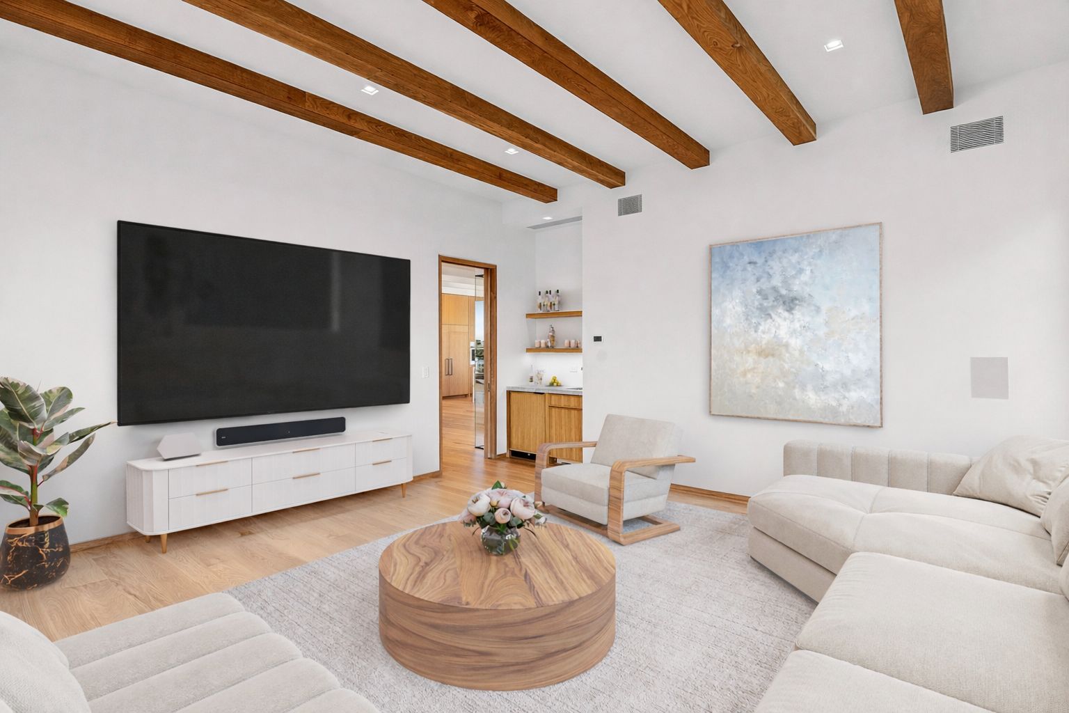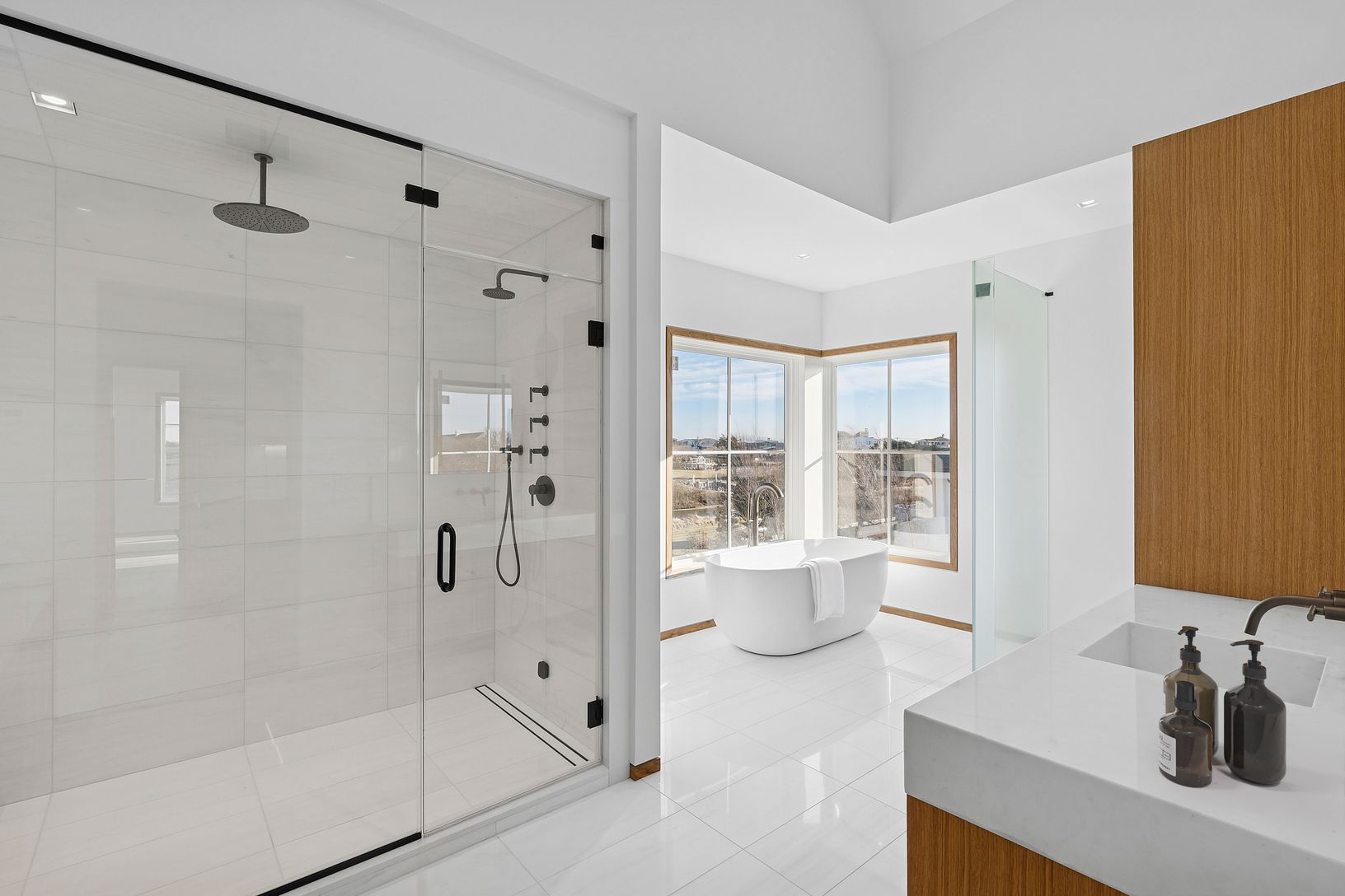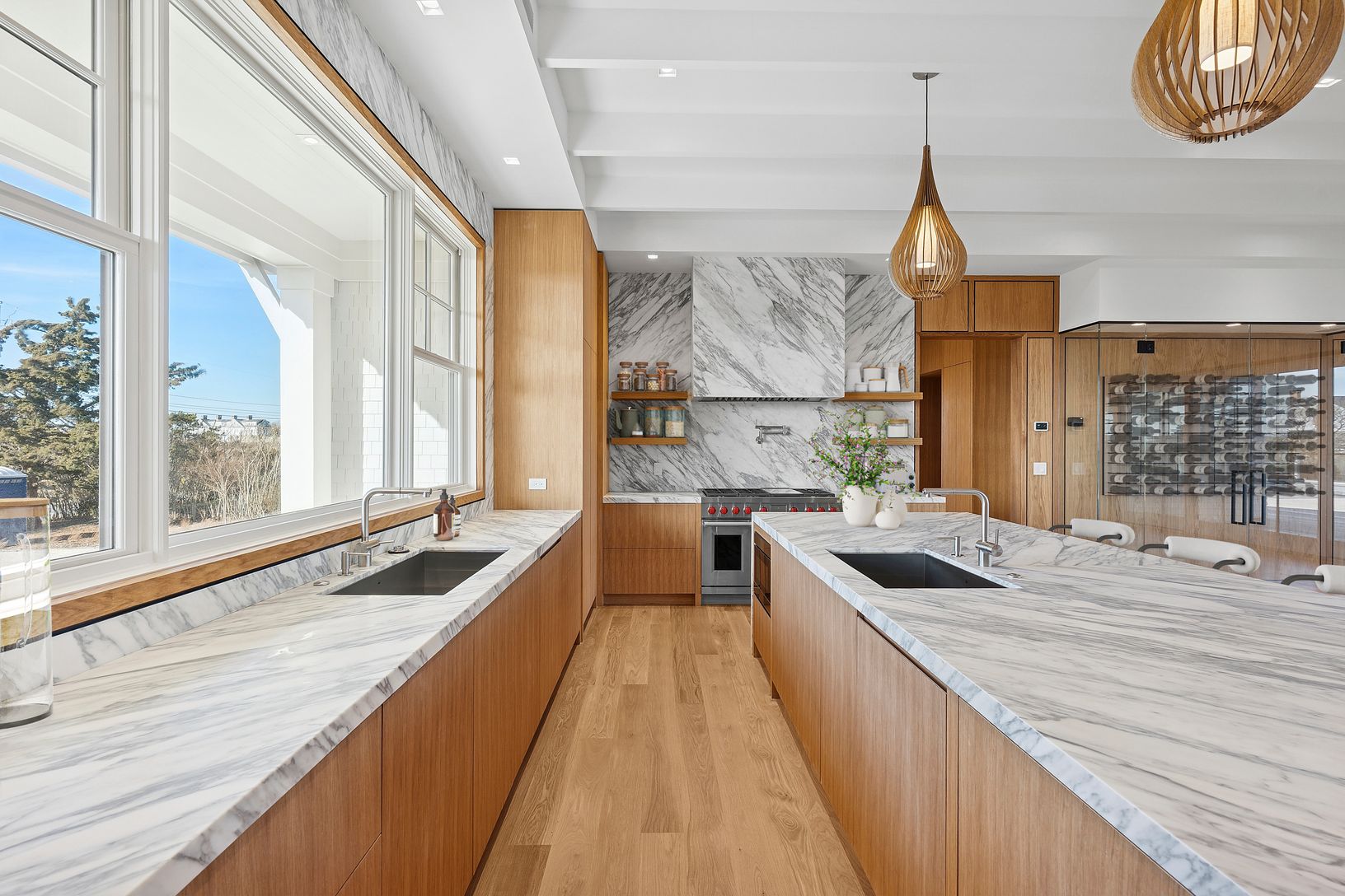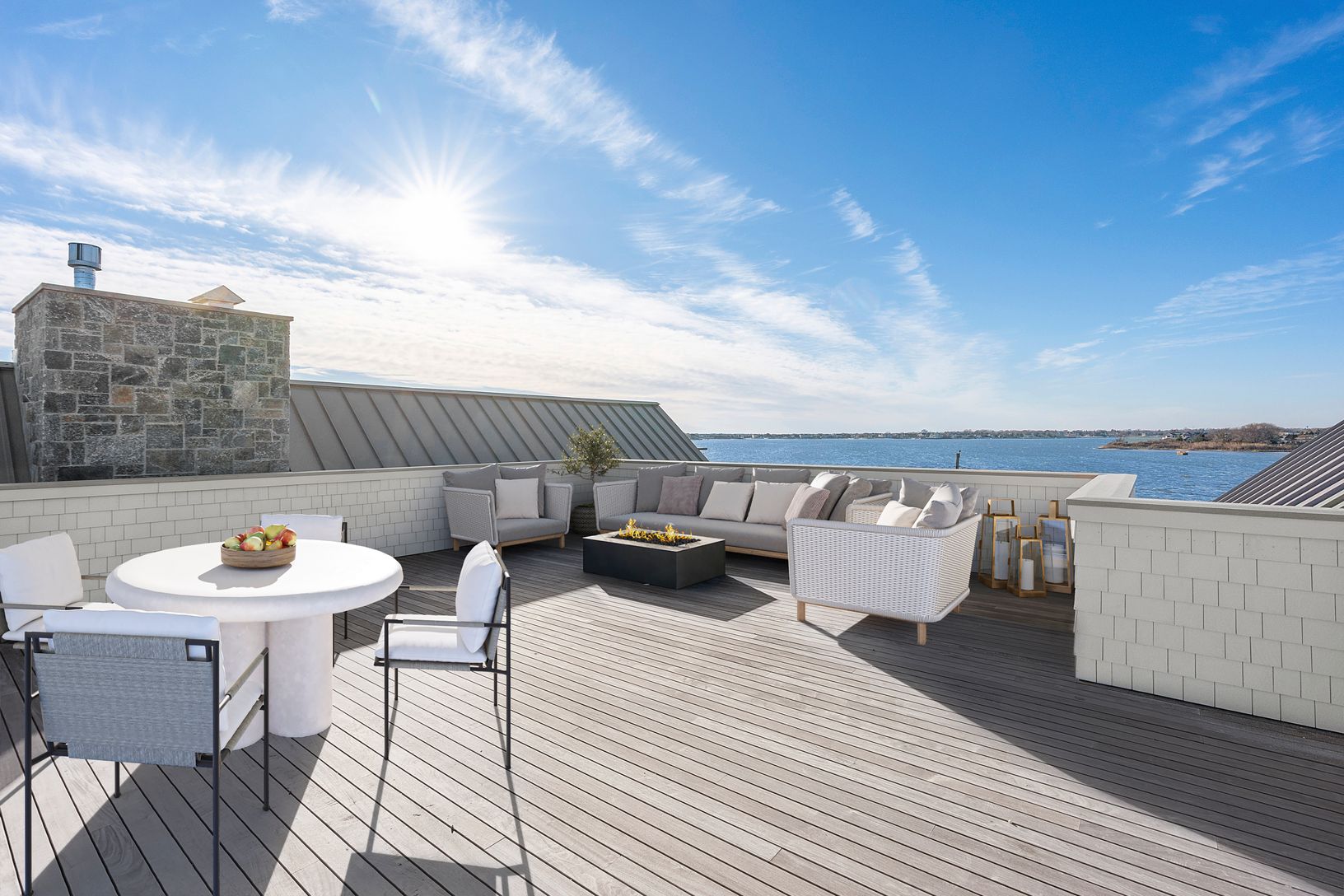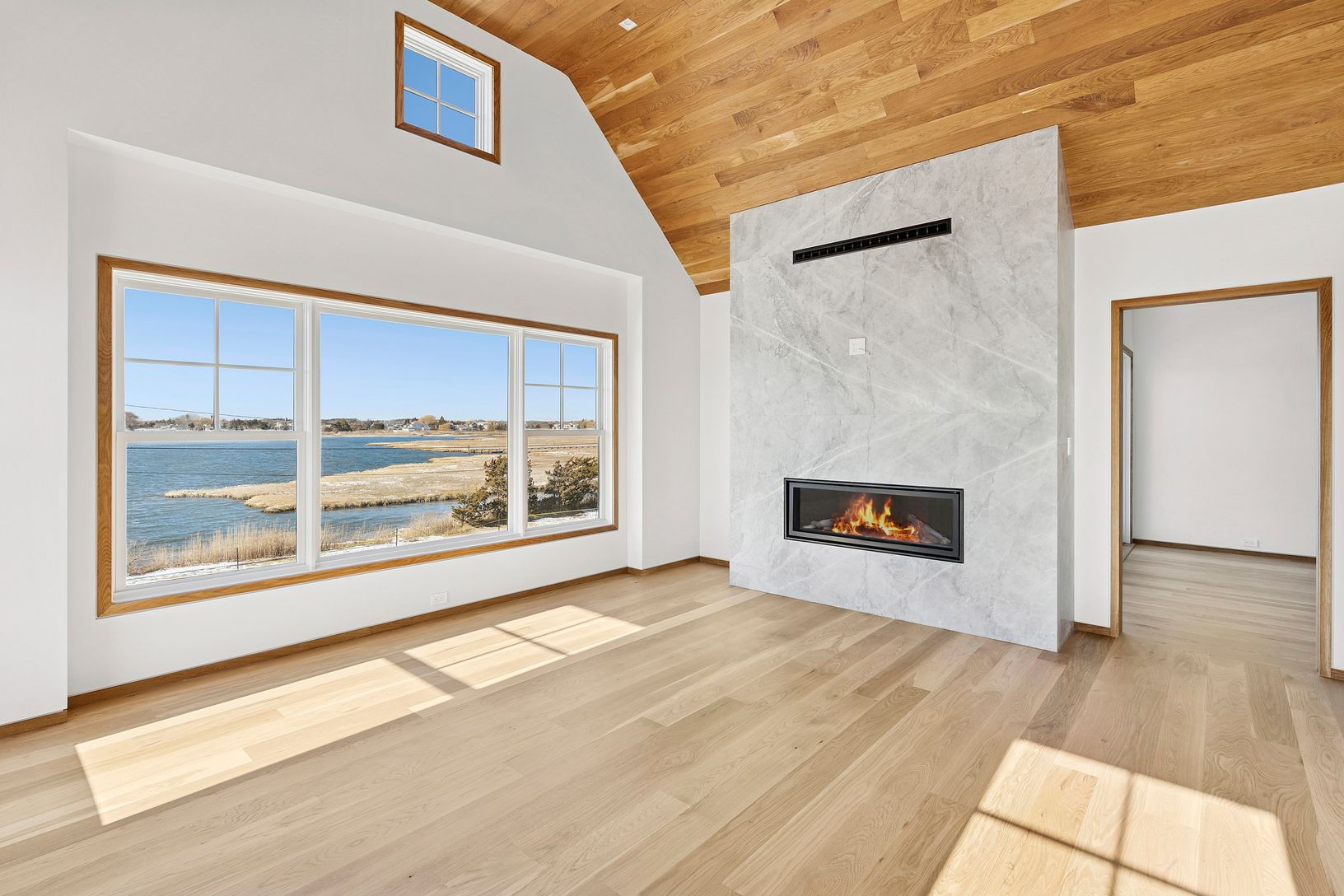 A rare deep water dock estate in Quogue’s Estate Section, this newly constructed waterfront residence is designed for serious boating and refined coastal living. With commanding canal frontage, deep water dockage, and sweeping open bay and ocean views, the setting alone places this property among the most coveted offerings in the Hamptons. Spanning over 7,000+ square feet across three refined levels, the home offers a total of six en-suite bed