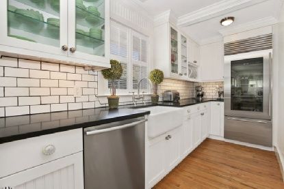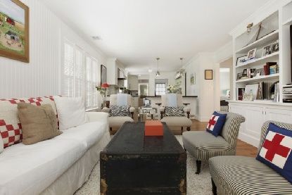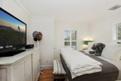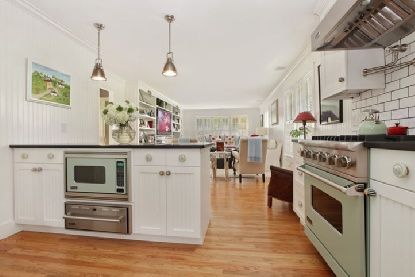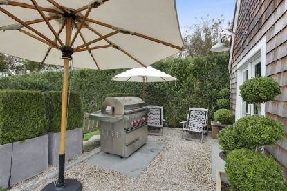 Great East Hampton Village Location. This blue shuttered gem is steps from the center of East Hampton Village and recently had a brand new high-end renovation and designer touches. The house is pristine with 2 bedrooms, wood floors, white wainscoting, and custom built-ins throughout to provide the utmost in organization. The new gourmet kitchen has top of the line appliances (Sub Zero refrigerator, Viking gas stove, microwave and warming dra