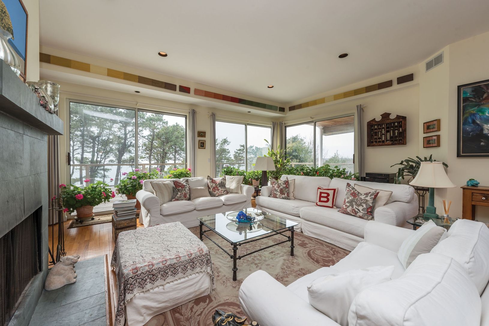 Southampton South. Bay views and breezes combined with stunning sunsets create the perfect Hampton's getaway. With six bedrooms and six and a half baths a gourmet kitchen large dining room and sun filled living room with fireplace there is plenty of room to entertain. Dine el fresco under a covered porch or lounge on the deck surrounding the waterside pool and overlooking the tennis court. This relaxed atmosphere offers something for everyone.