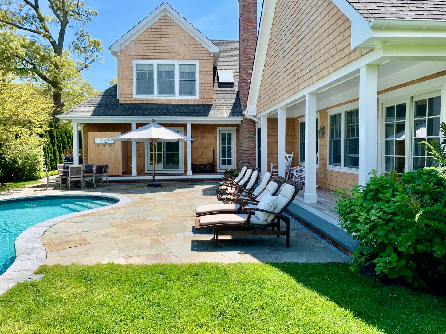 Beautiful bay views, beautiful backyard, beautiful home! What more could you need? This home has 4 bedrooms and 5 baths, a gorgeous gourmet kitchen, and plenty of space for entertaining. Lounge in the backyard around the heated pool, bask in the sunlight on the lounge chairs, then zip into town for dinner. The perfect Hamptons getaway!